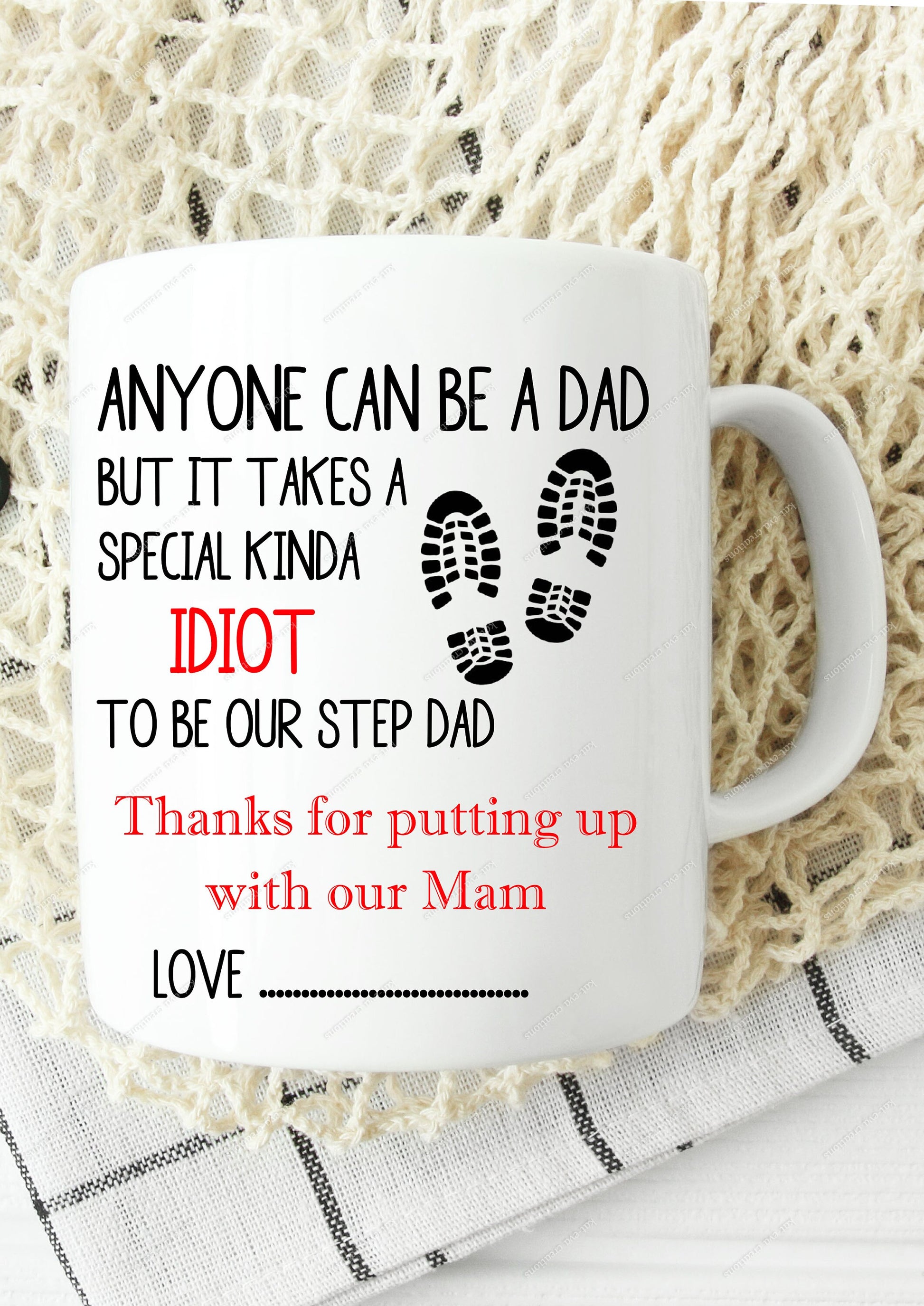 Anyone can be a dad, but it takes special kinda idiot to be my/our stepdad Mug. can be personalised