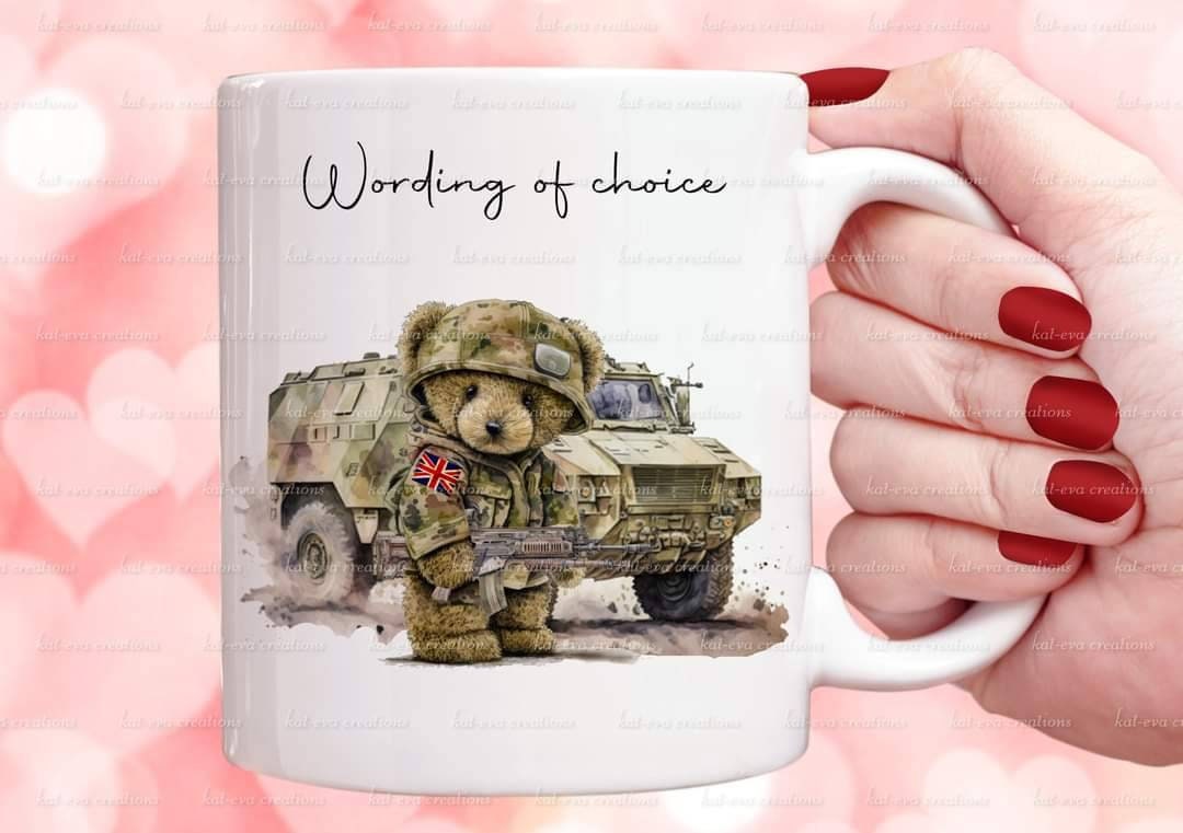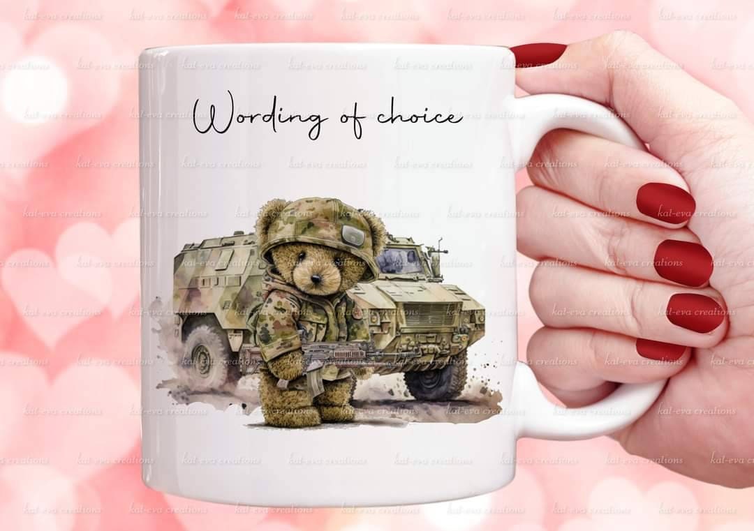 Army mug. Personalised teddy cup. Ideal passing out gift.