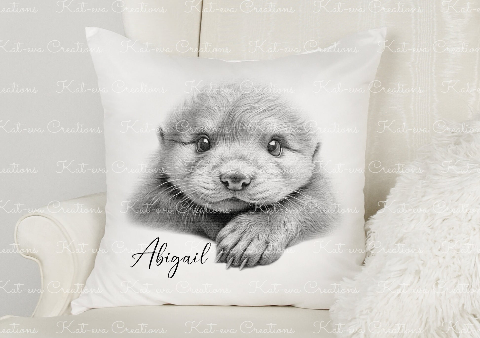 baby otter cushion. personalised otter pillow. ideal christmas, secret santa, stocking filler, or birthday gift