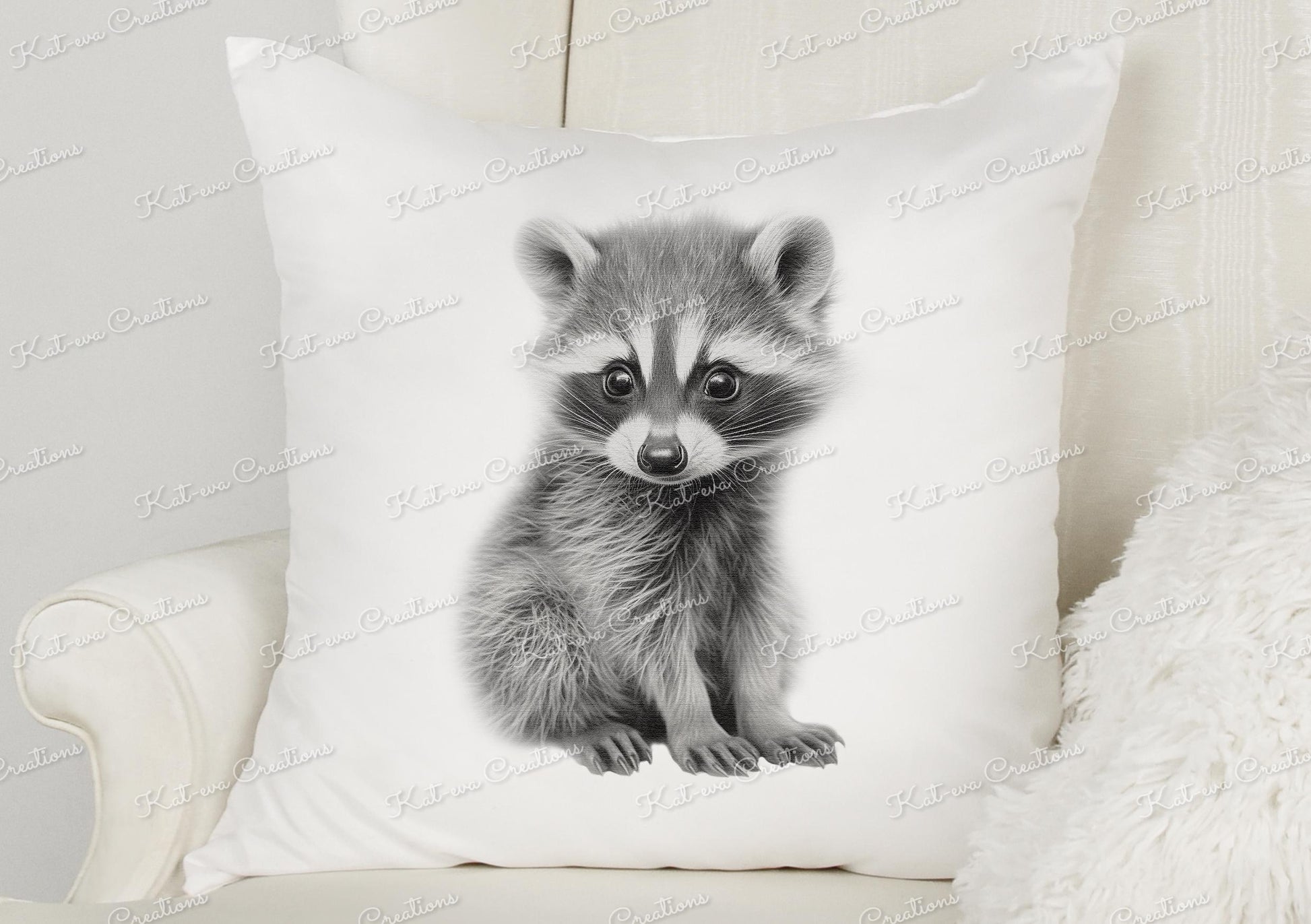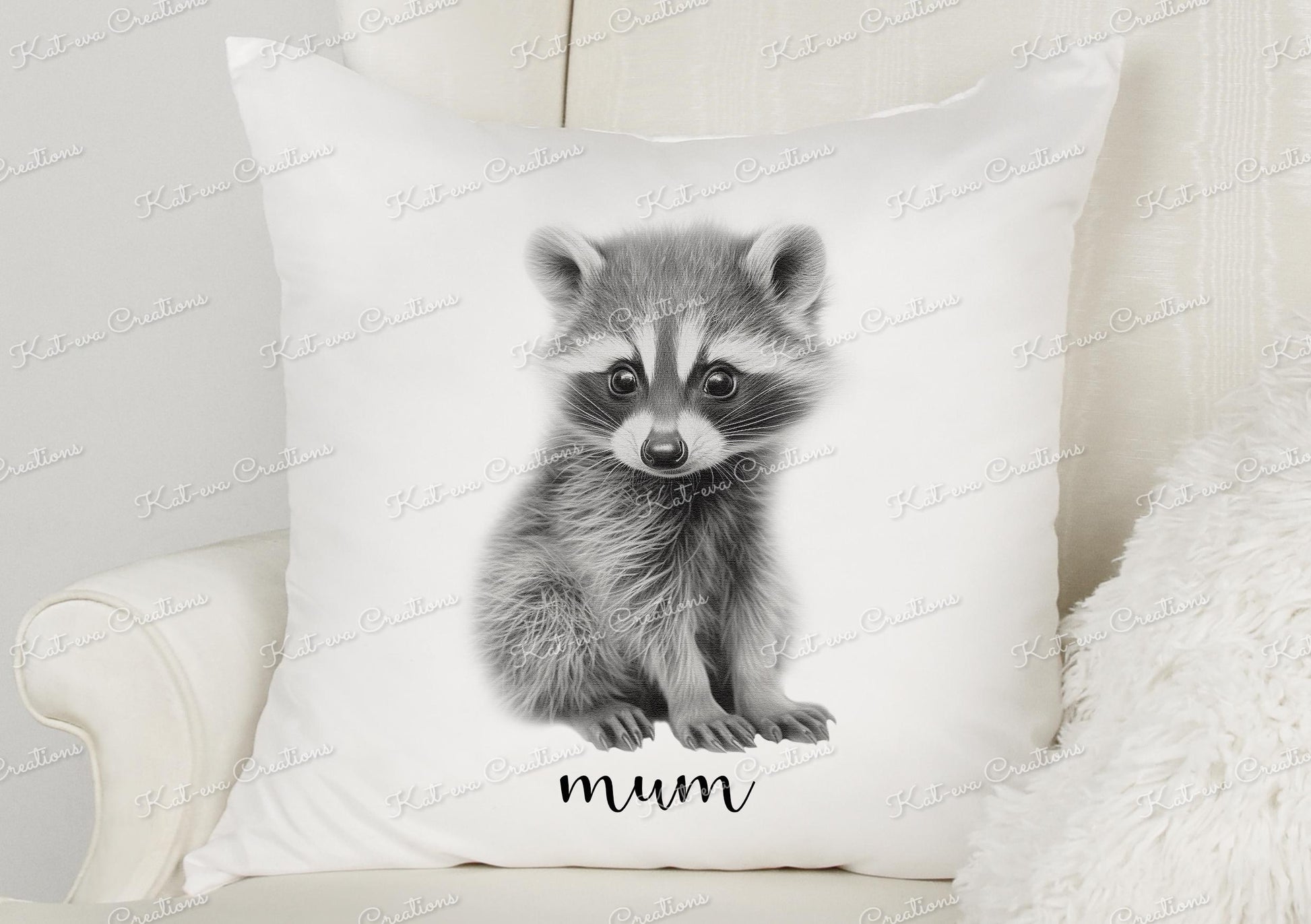 baby raccoon cushion. personalised cute raccoon pillow. ideal christmas, secret santa, stocking filler, or birthday gift