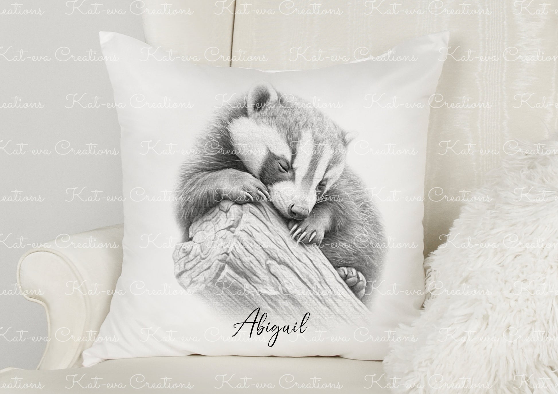 badger cushion. personalised sleeping badger pillow. ideal christmas, secret santa, stocking filler, or birthday gift