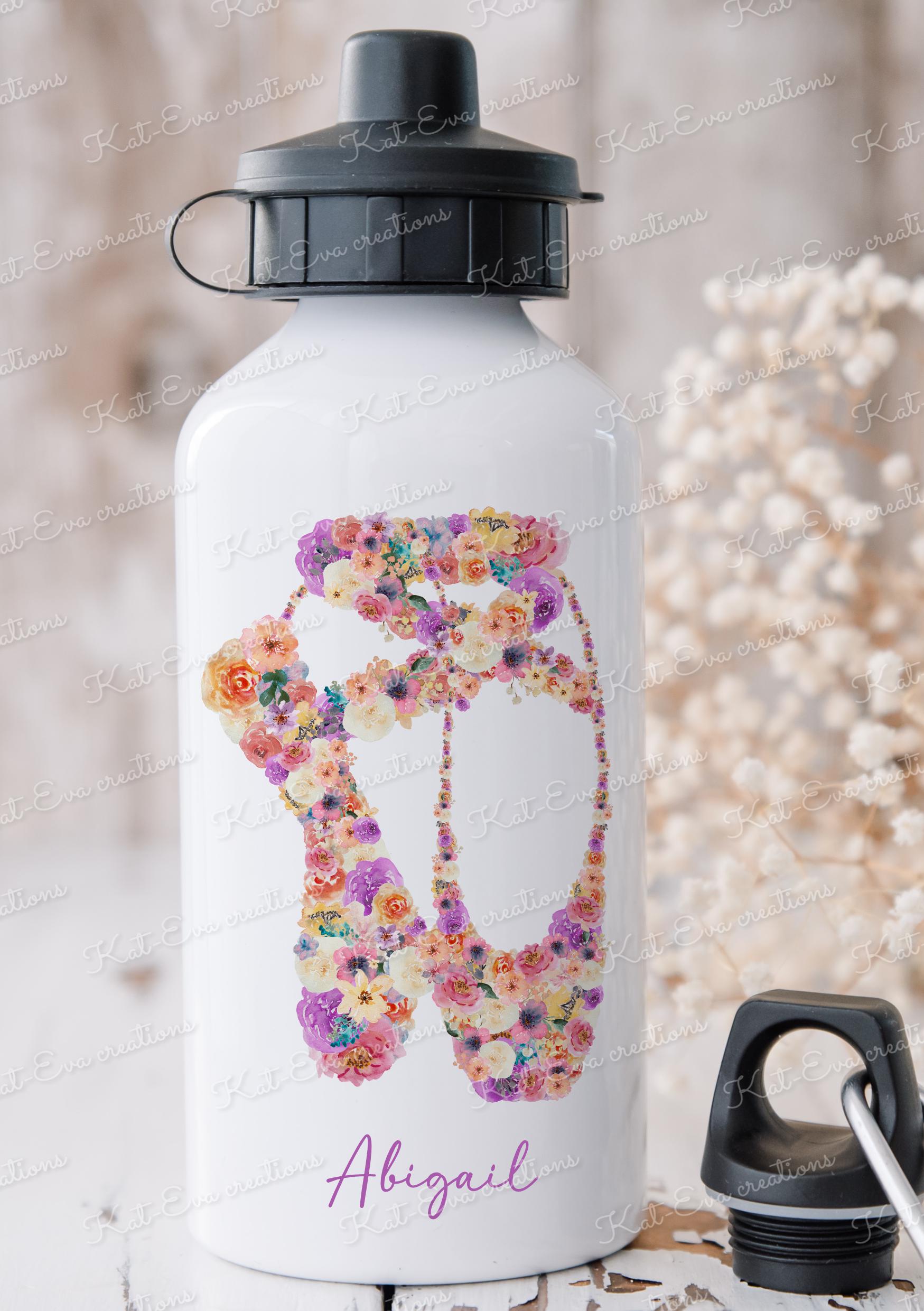 Ballerina bottle, Personalised ballet bottle. Floral ballerina bottle Choice of ballerina and name or wording ideal for school, dance class