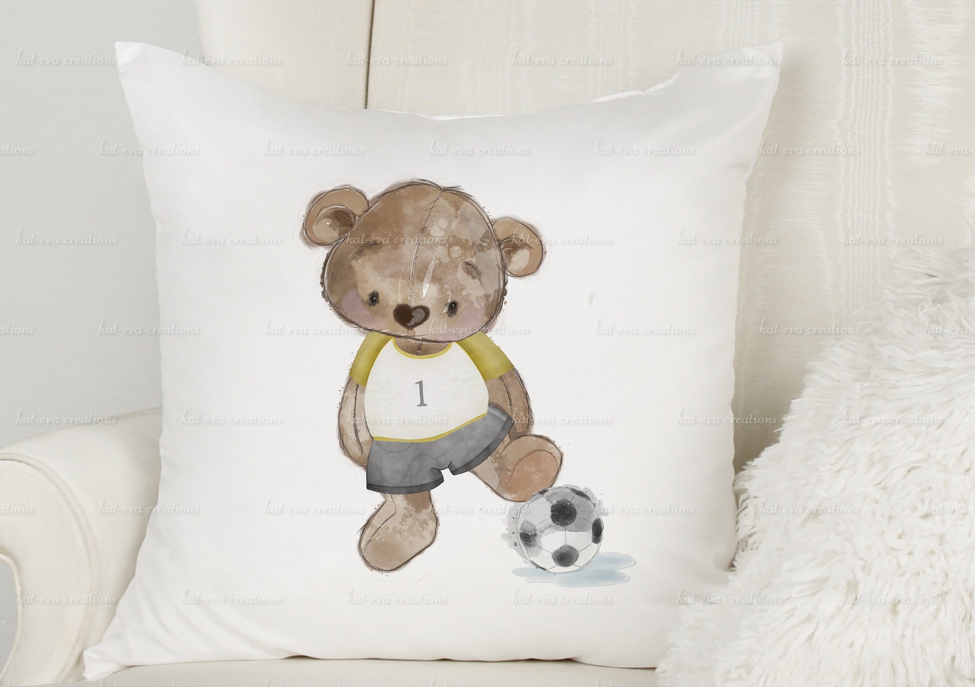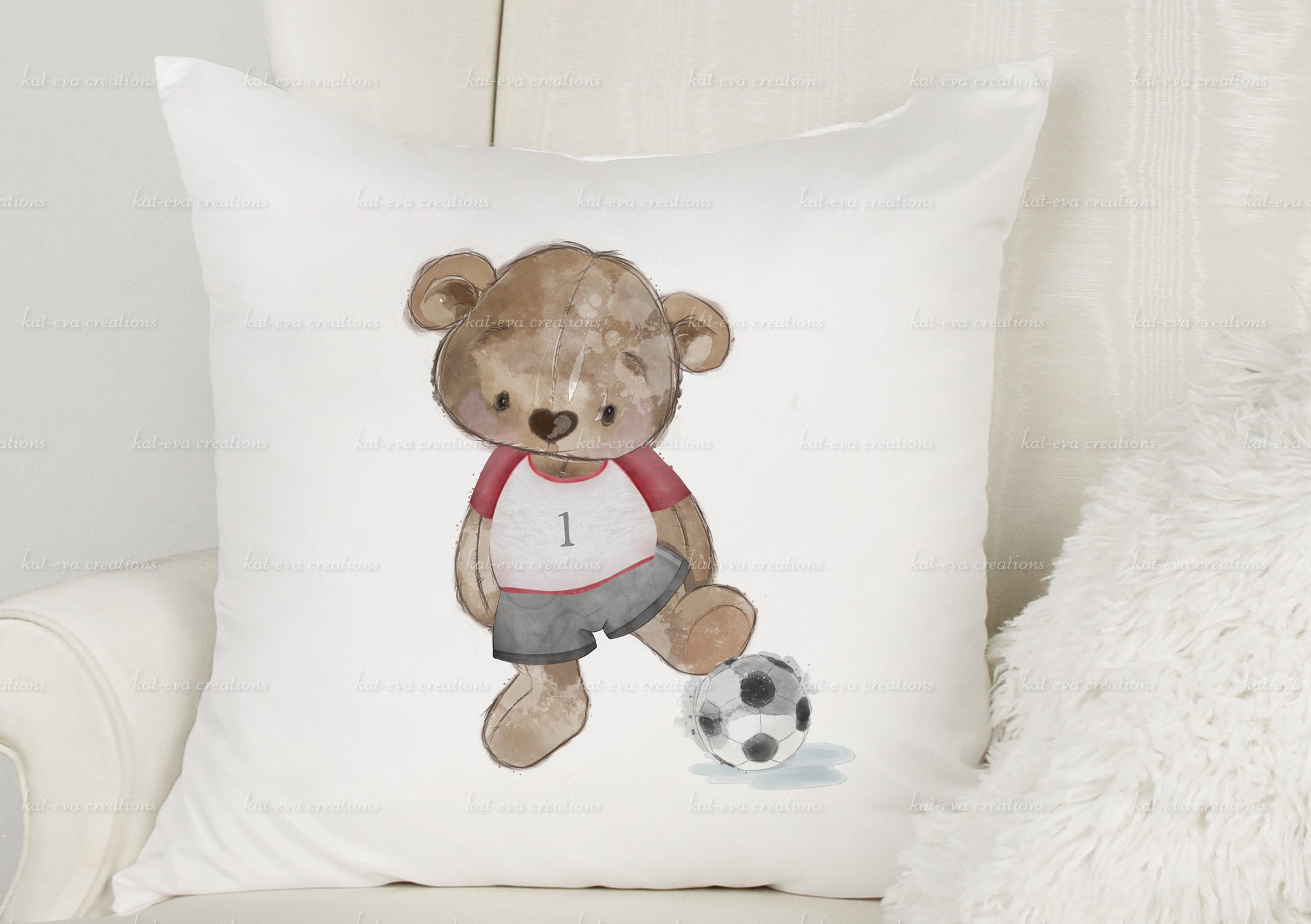 personalised bear football cushion