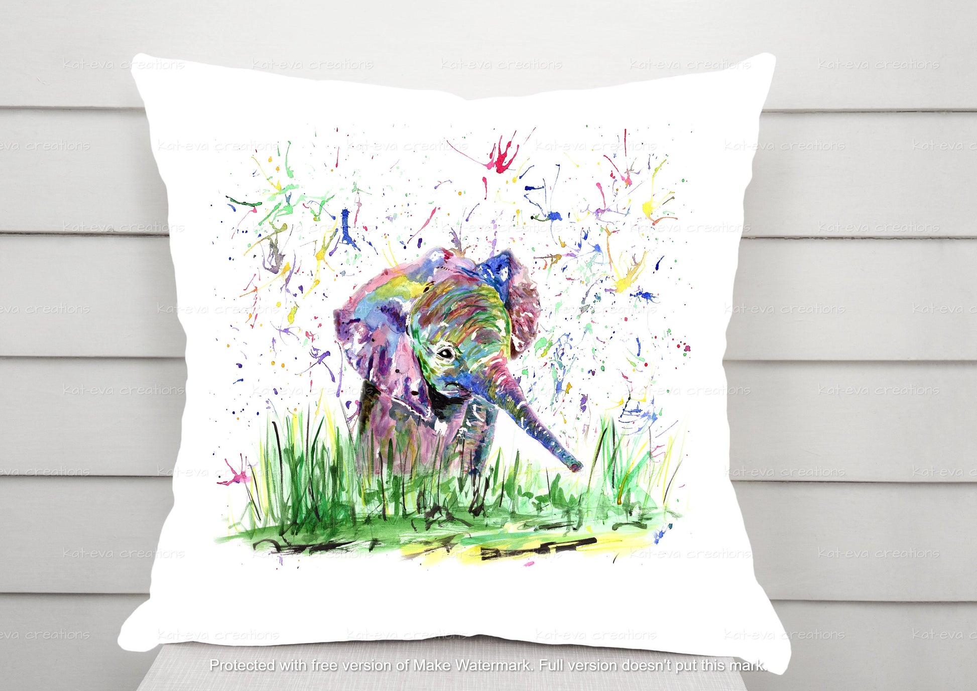 Beautiful elephant cushion. can be personalised. watgercolour baby elephant
