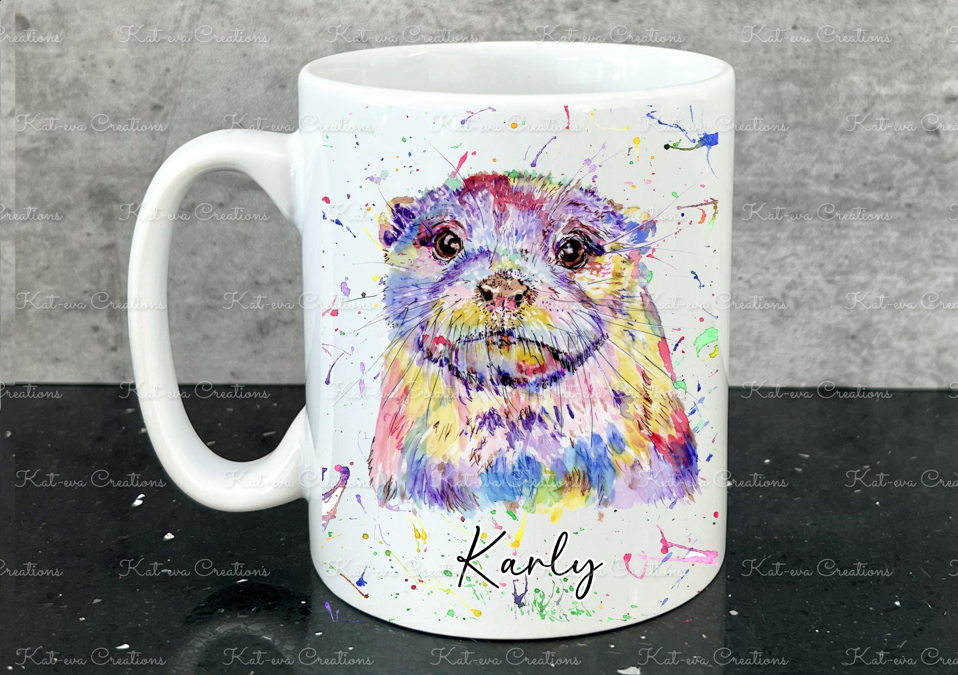 Beautiful otter mug. personalised otter cup. ideal birthday or christmas gift. secret santa present. xmas eve mug or stocking filler