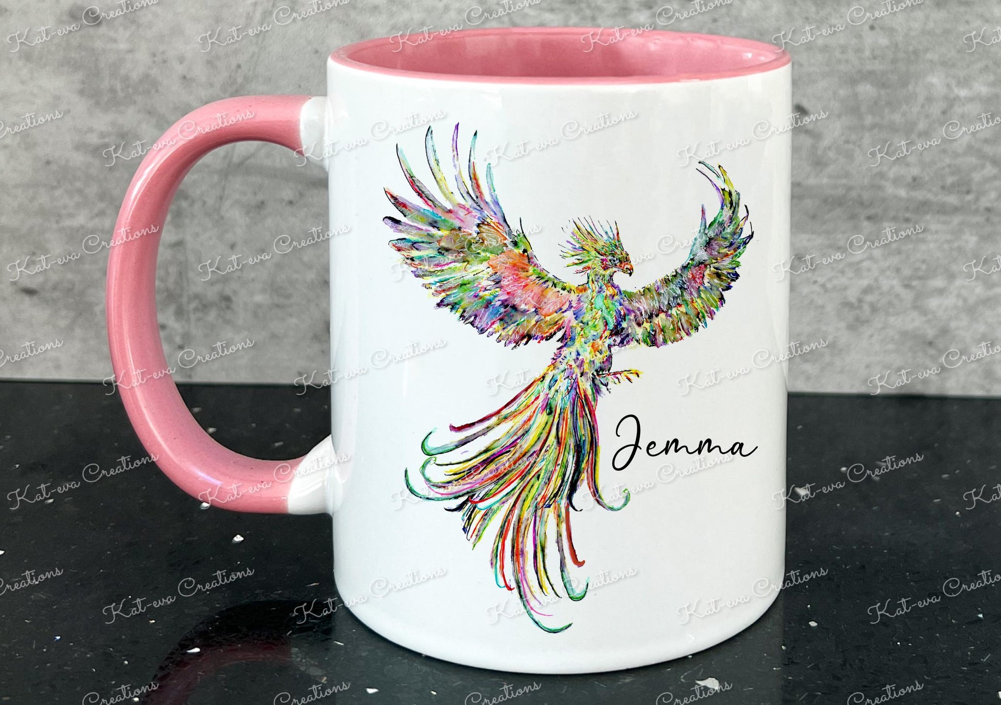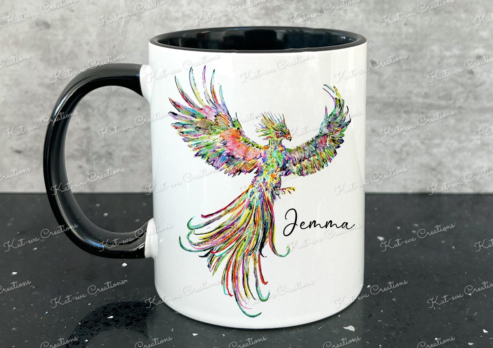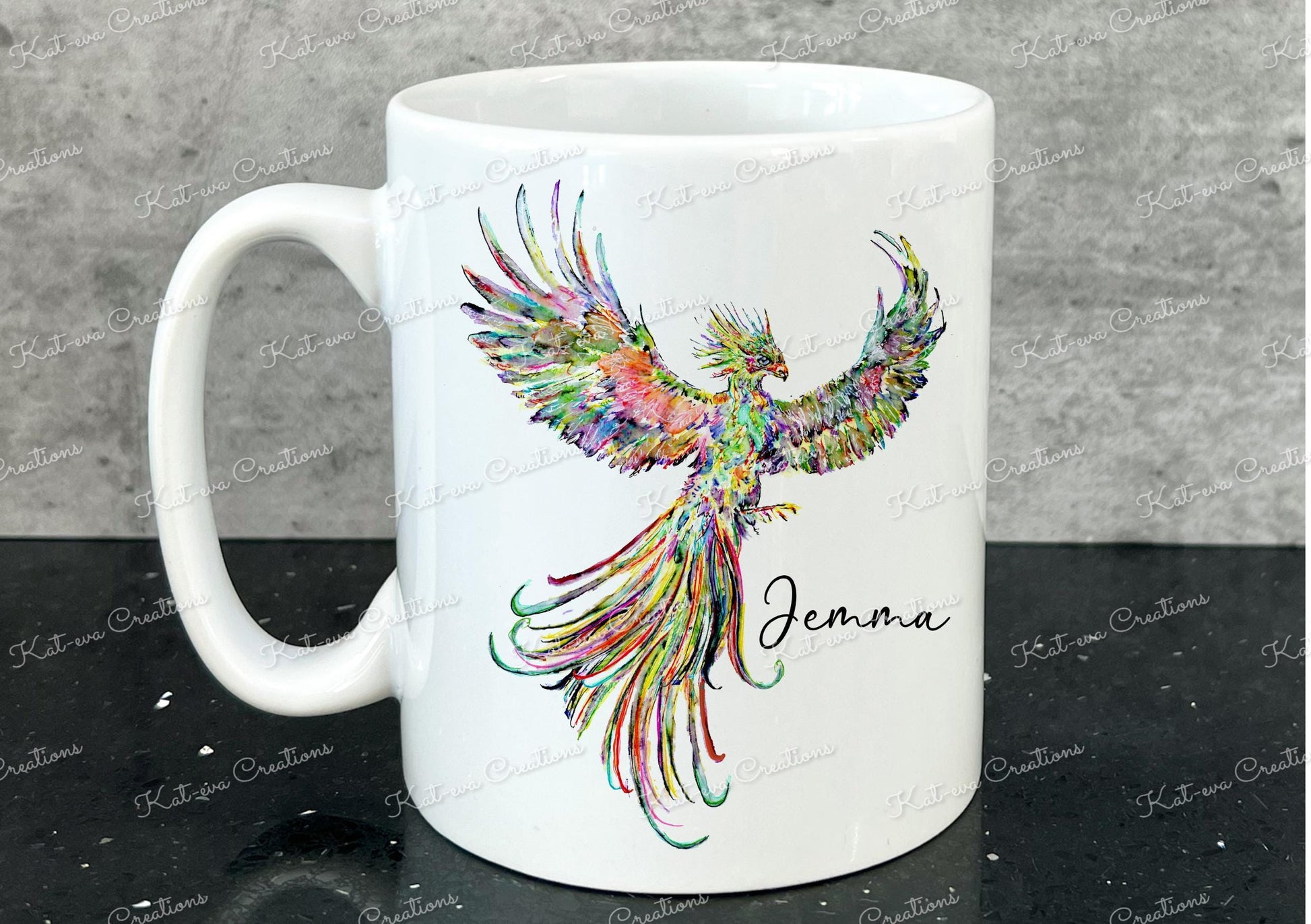 Beautiful phoenix mug. Personalised phoenix cup. ideal christmas or birthday gift. Secret santa present idea