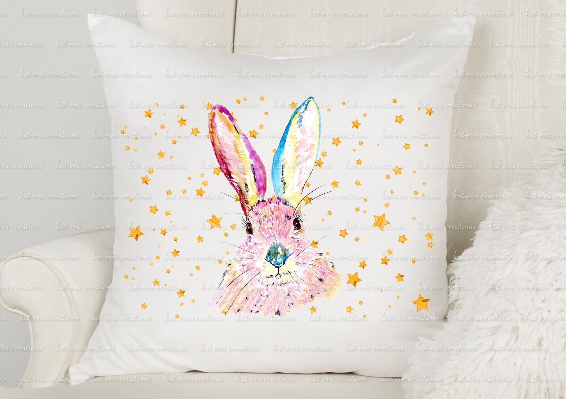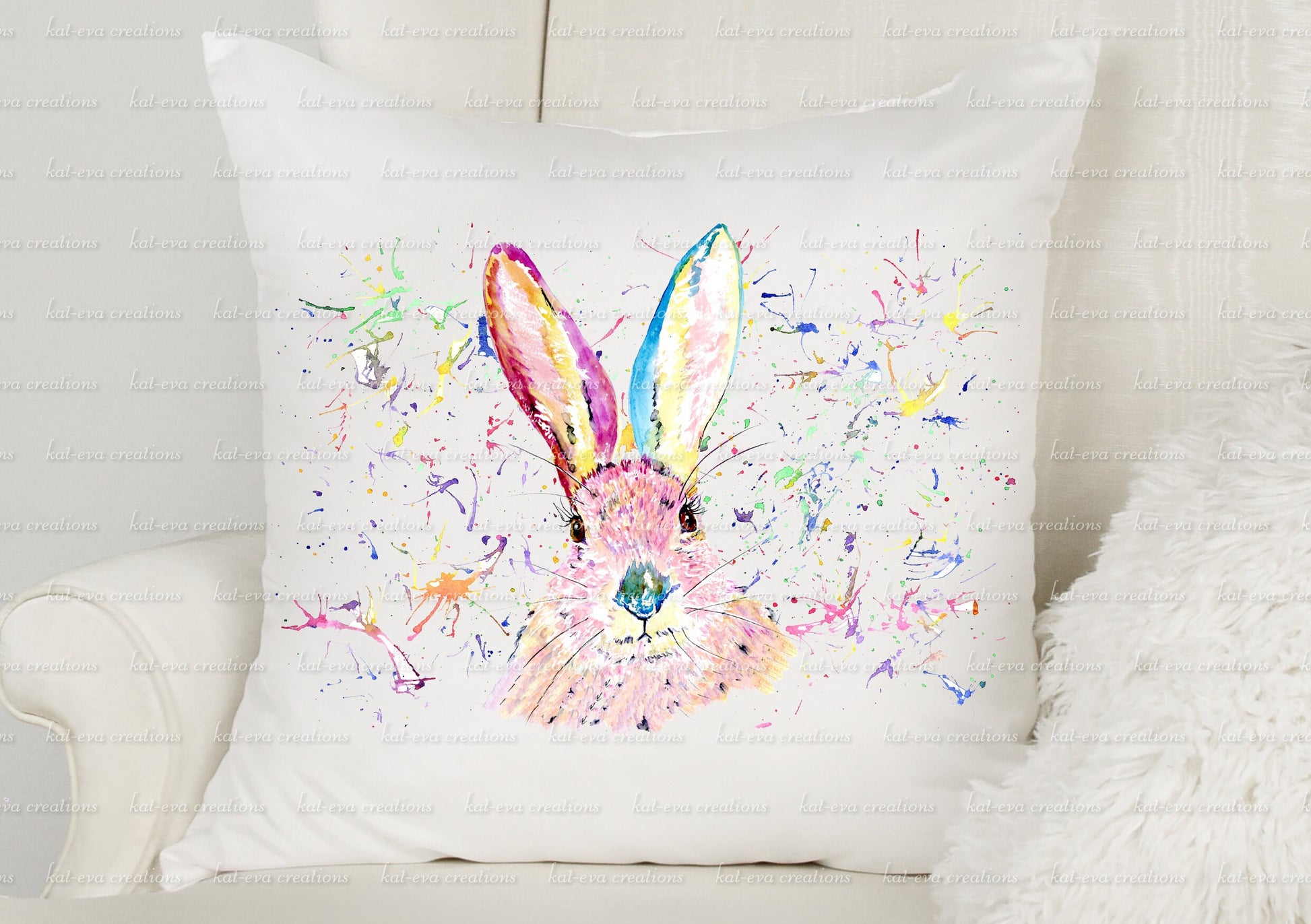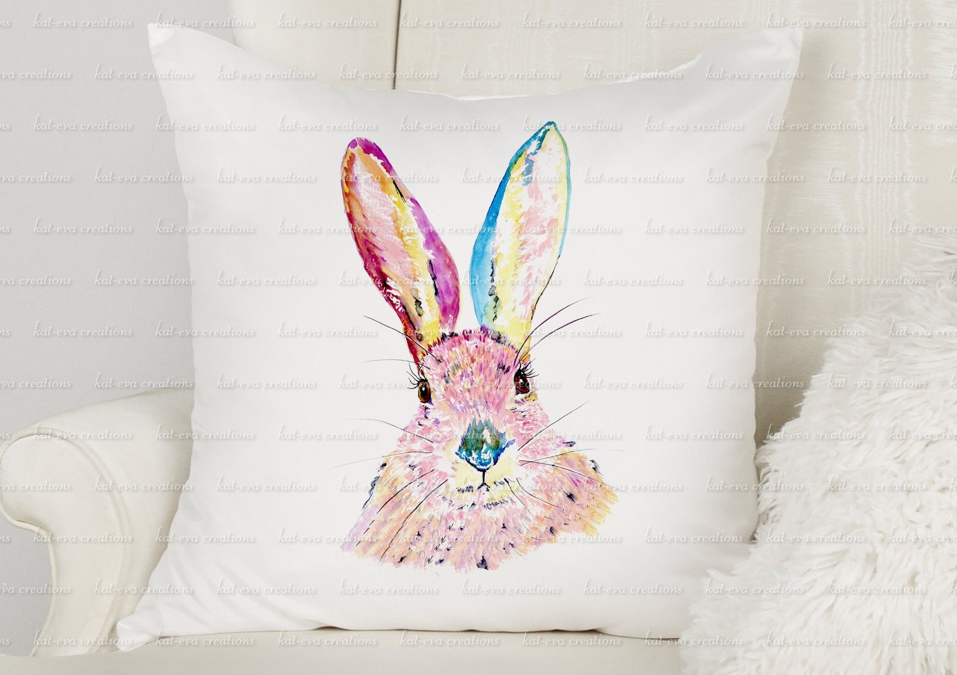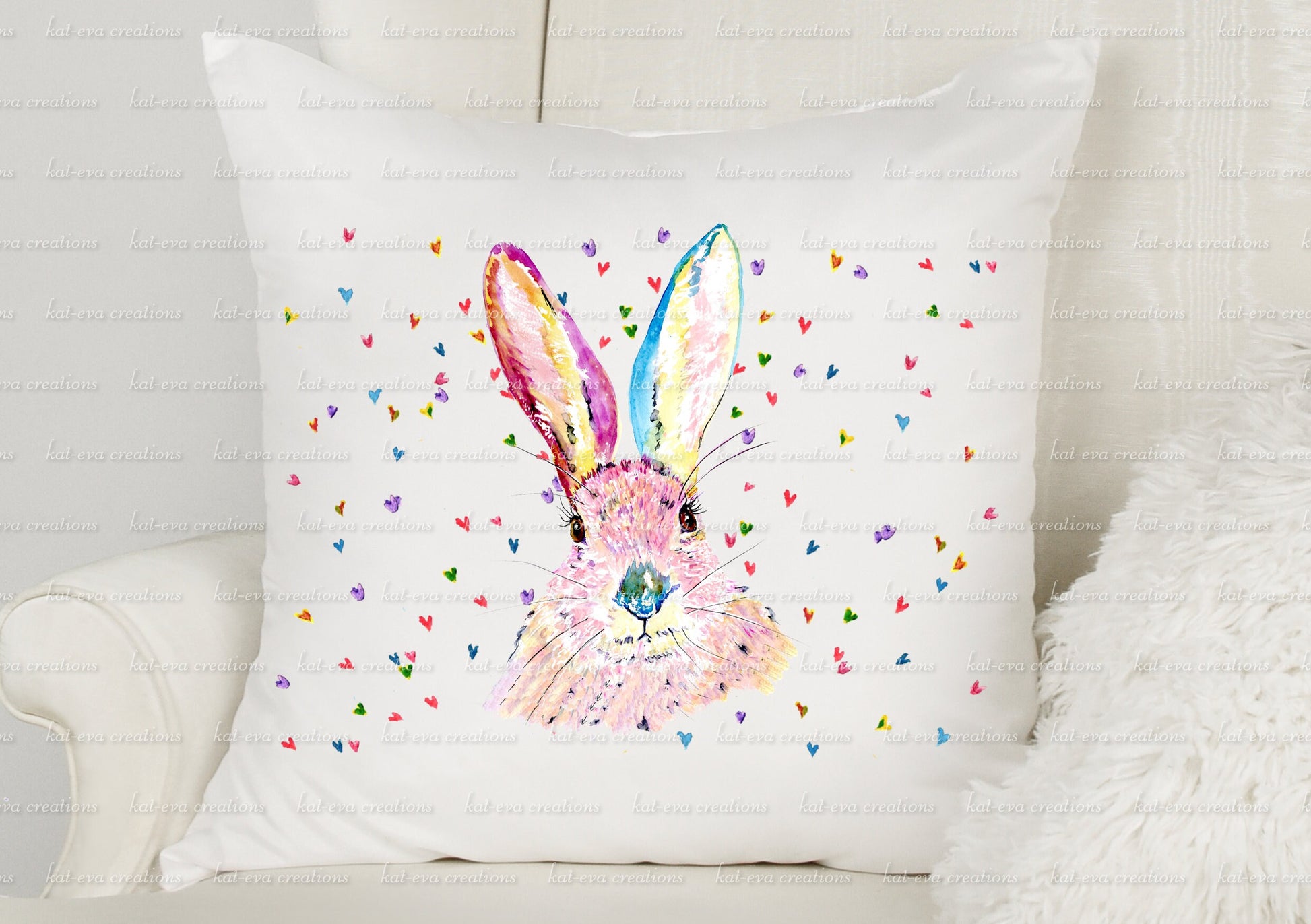 Beautiful rabbit cushion. personalised bunny pillow. watercolour hare/ bunny / rabbit cushion. ideal birthday or easter gift