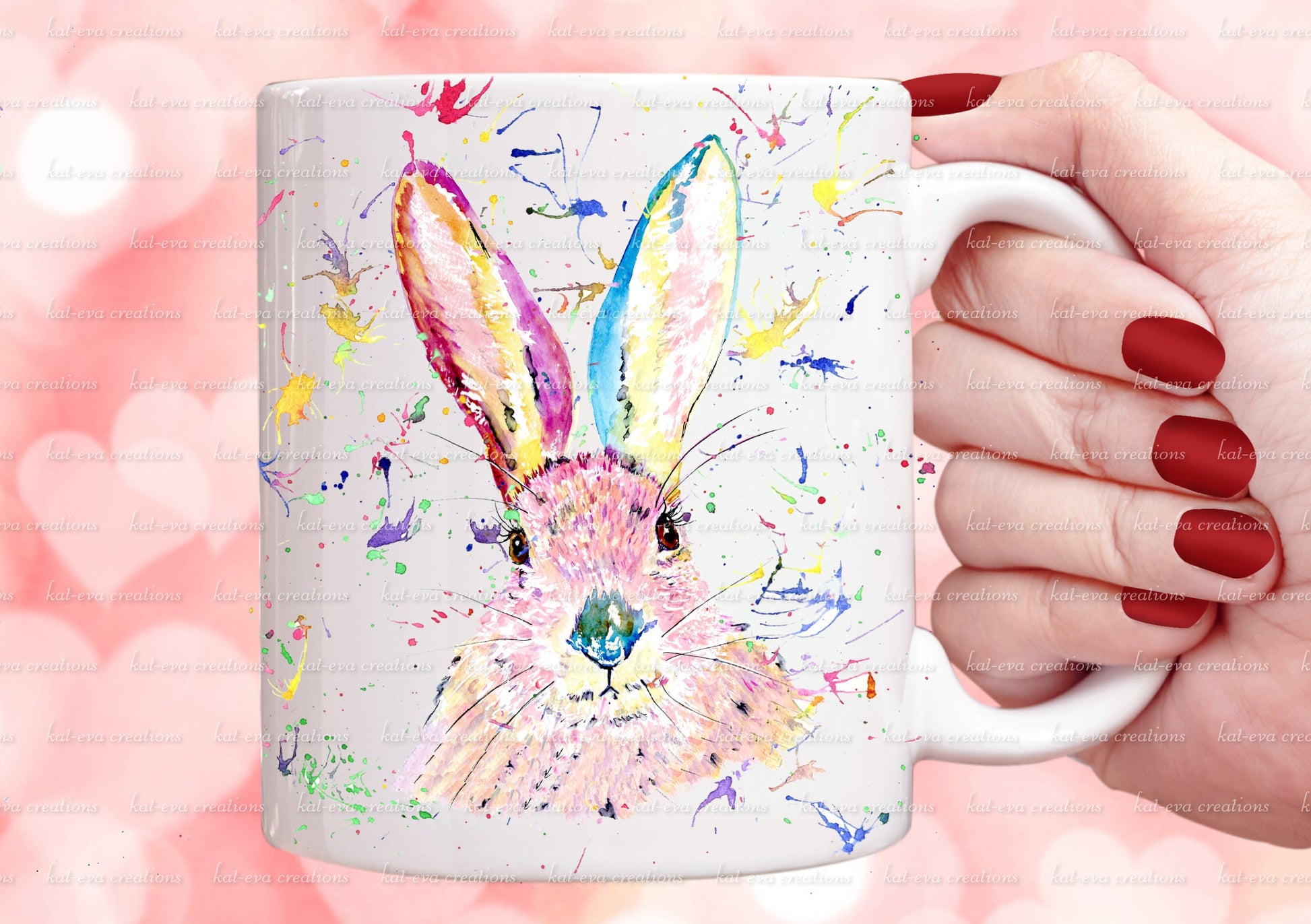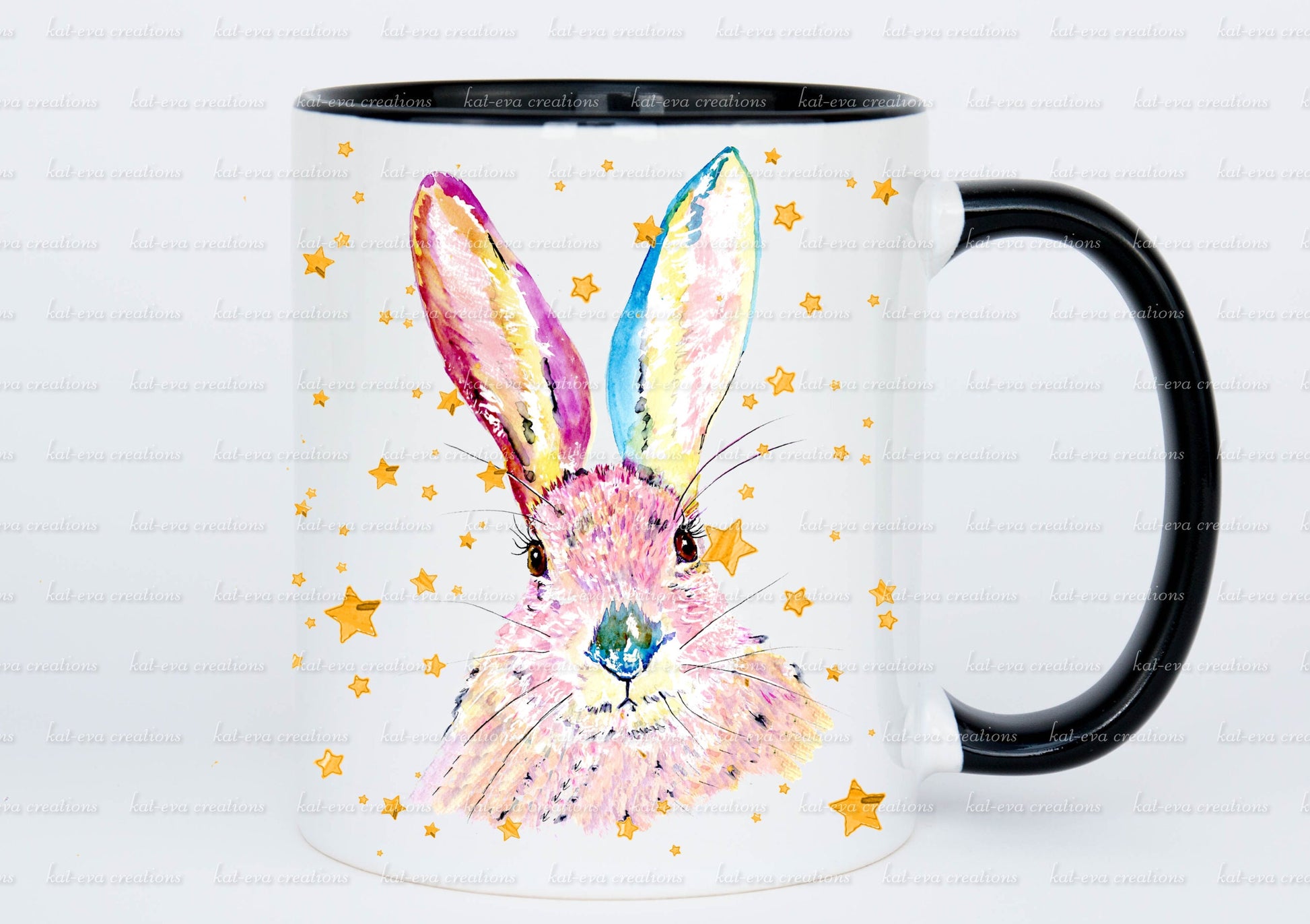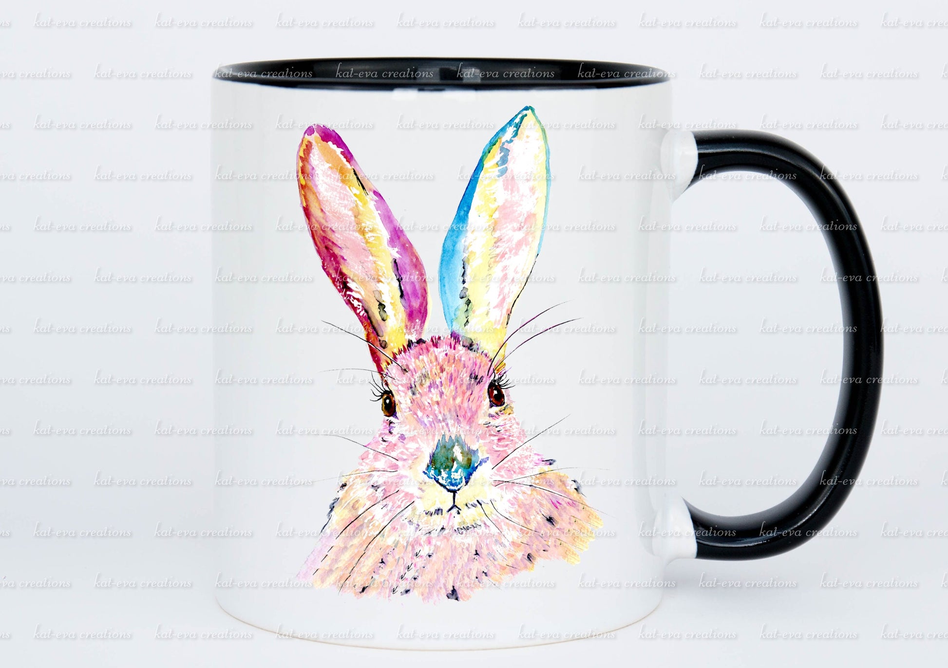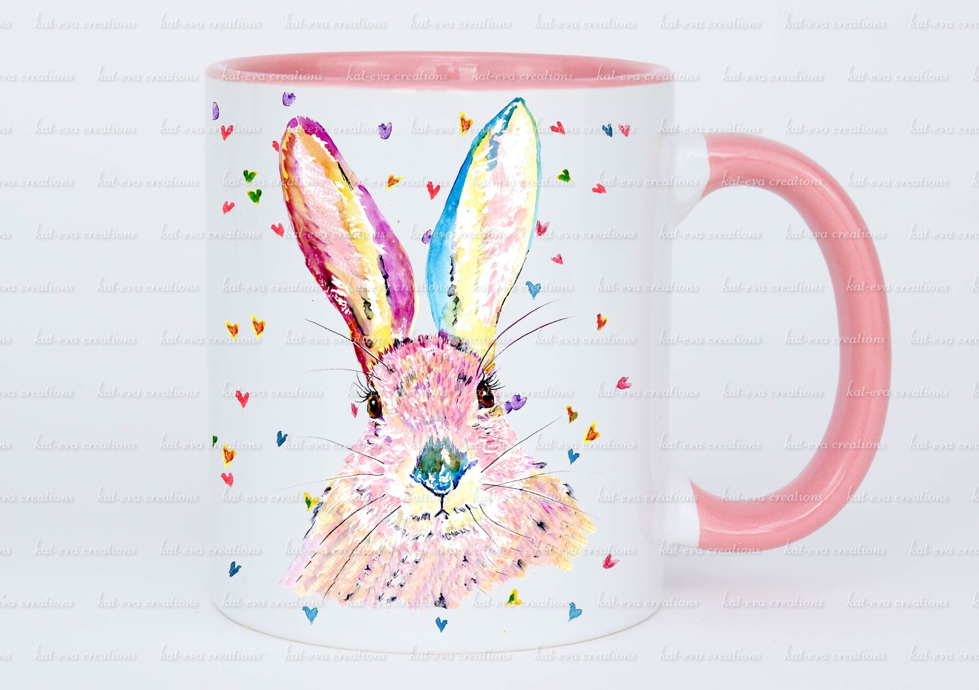 Beautiful rabbit mug. personalised bunny cup. watercolour hare/ bunny / rabbit mug. ideal birthday or easter gift