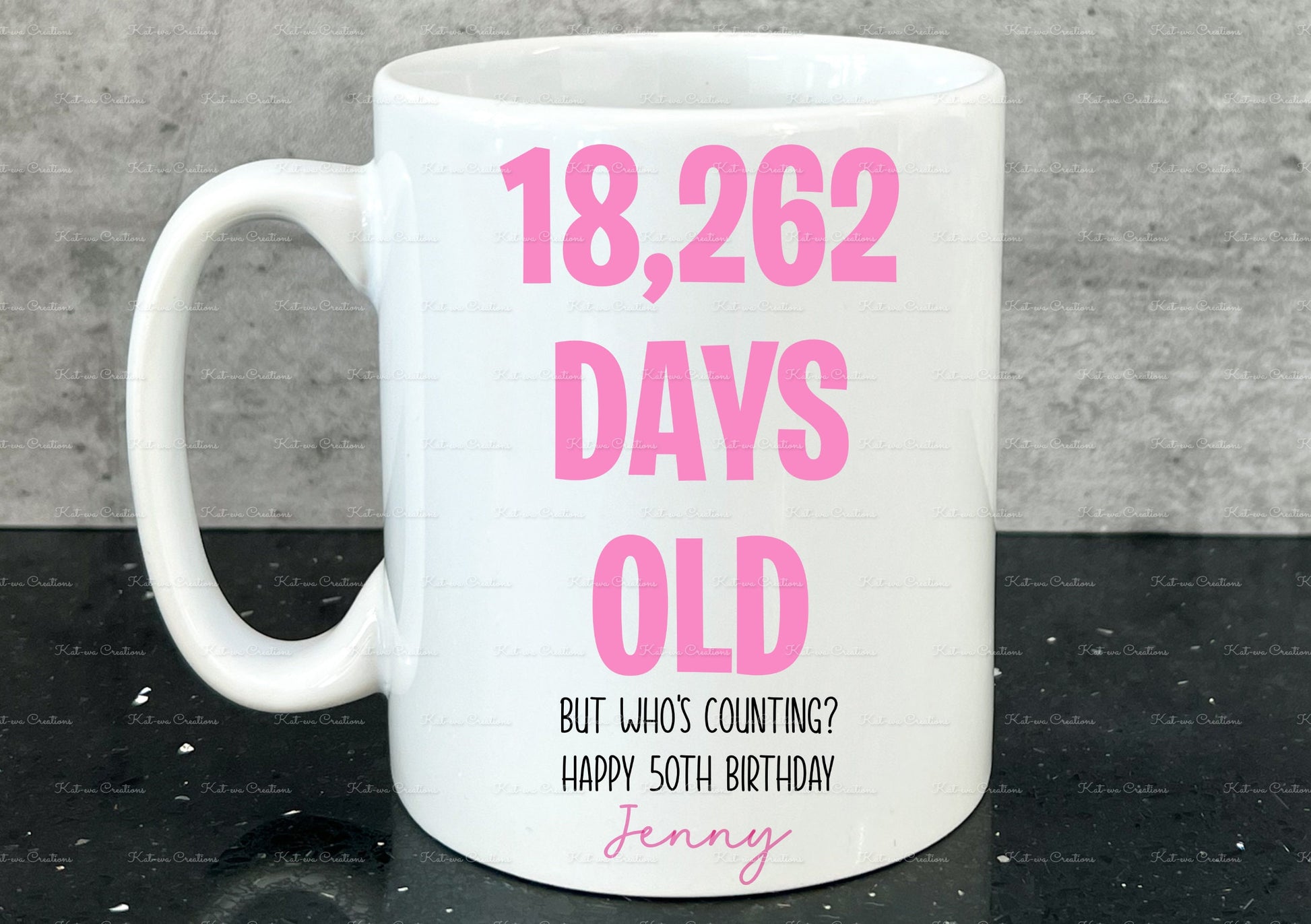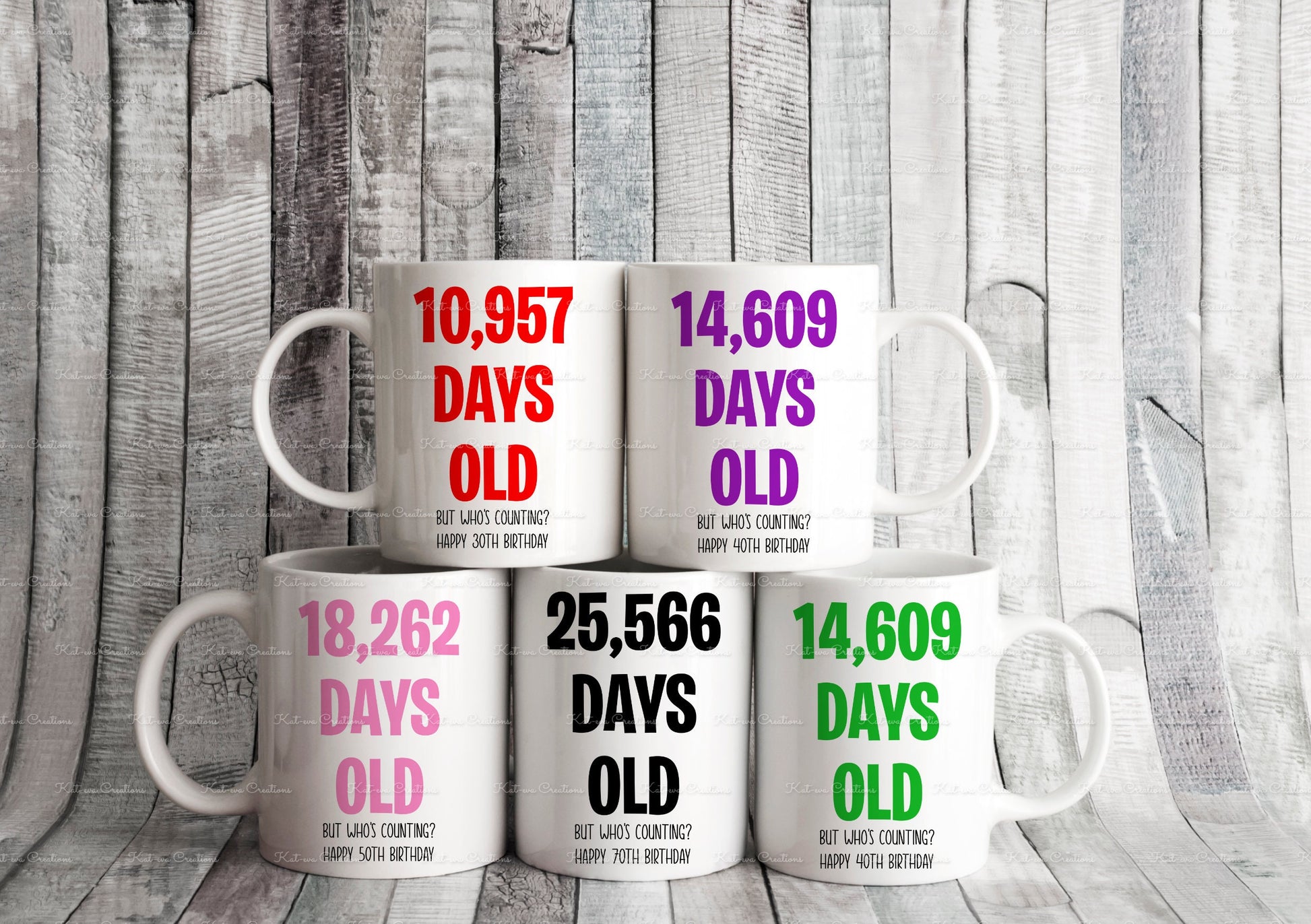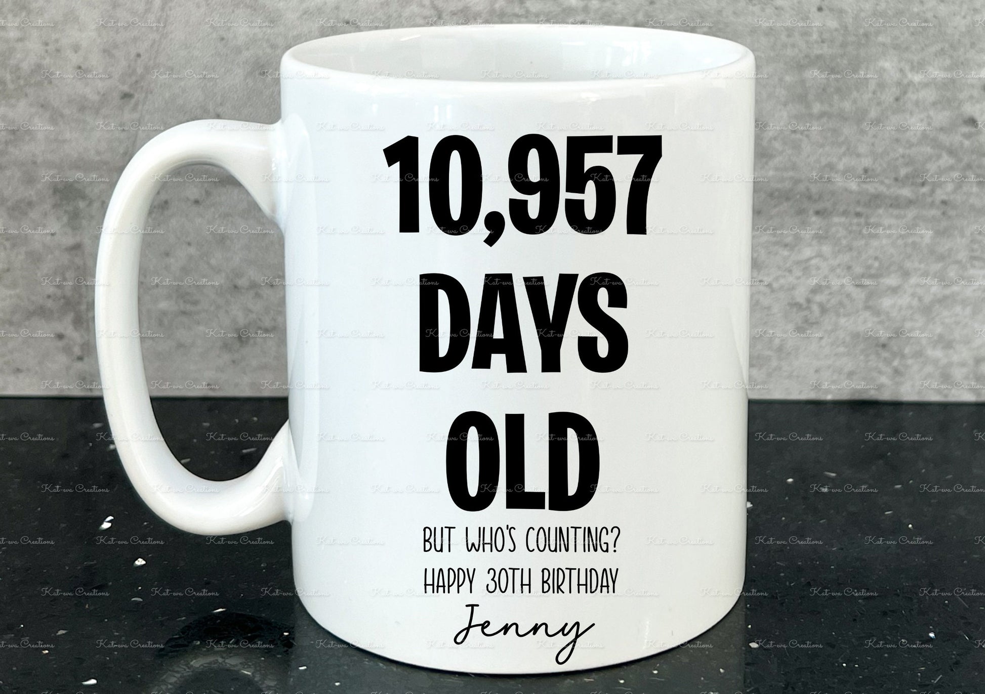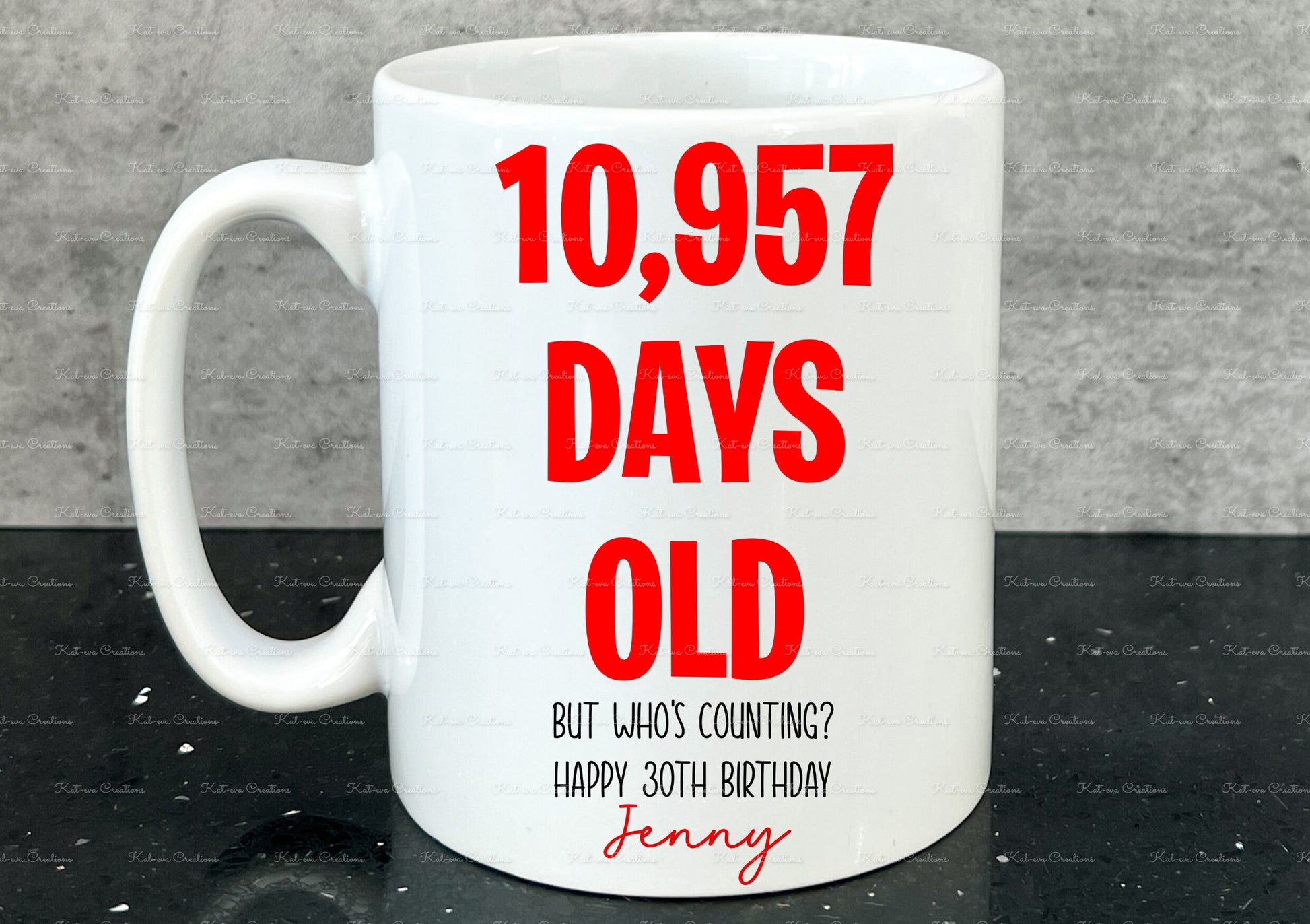Birthday Mug, age in days cup. Personalised age mug. 30th, 40th, 50th, 60th, 70th, 80th, 90th, 100th. custom age