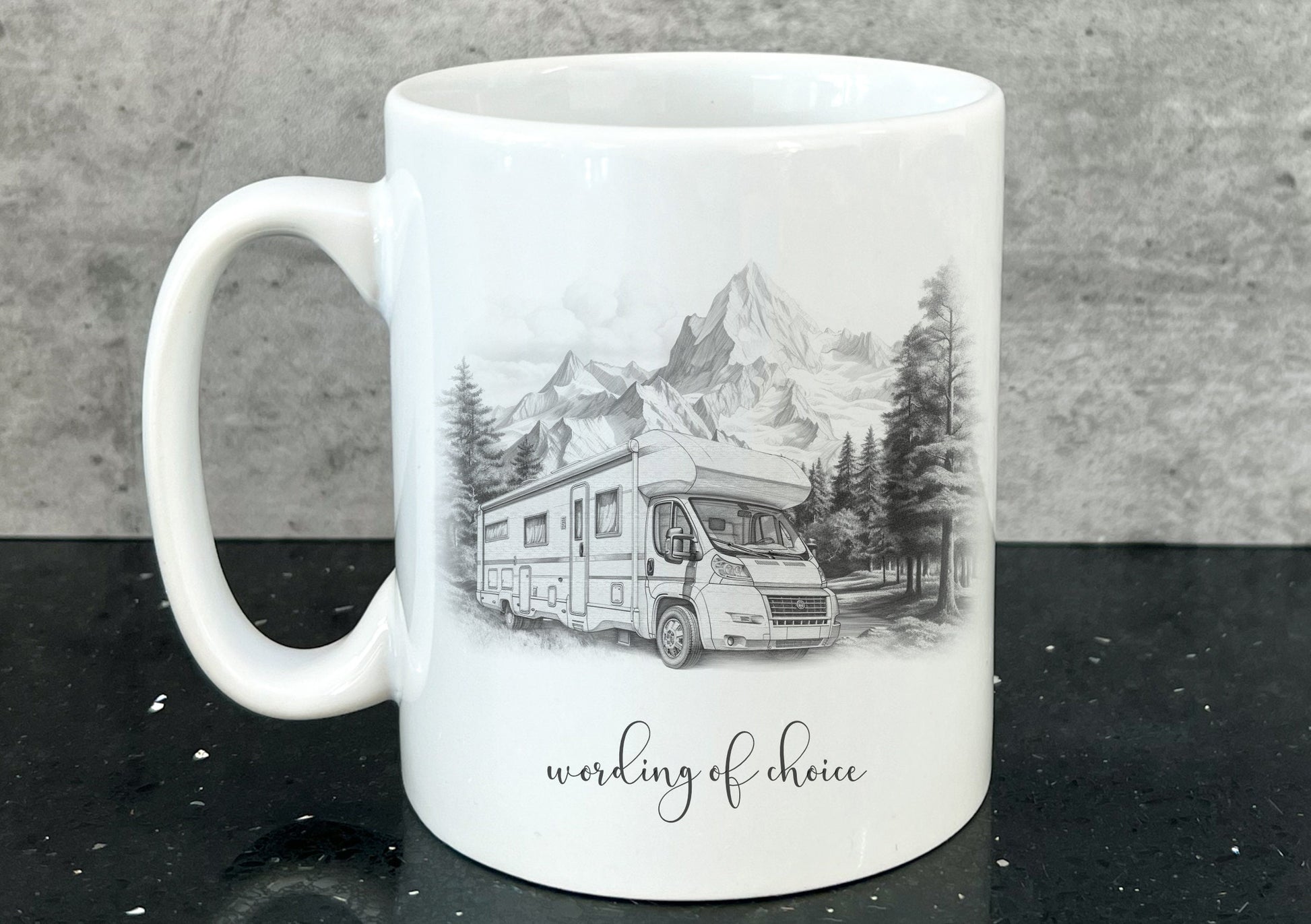 Campervan mug. personalised motorhome cup. Camping and caravanning gift. summer holiday present
