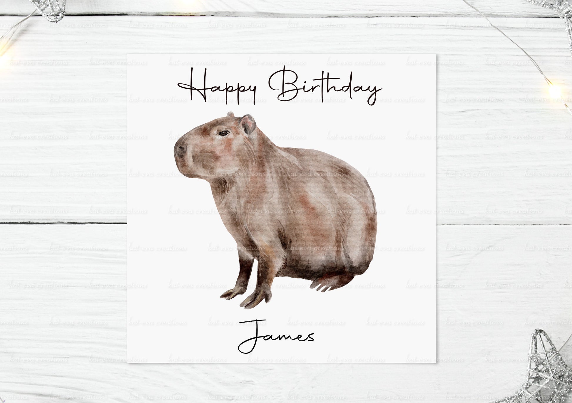 Capybara Card or card and badge. Can be personalised Ideal birthday or good luck card