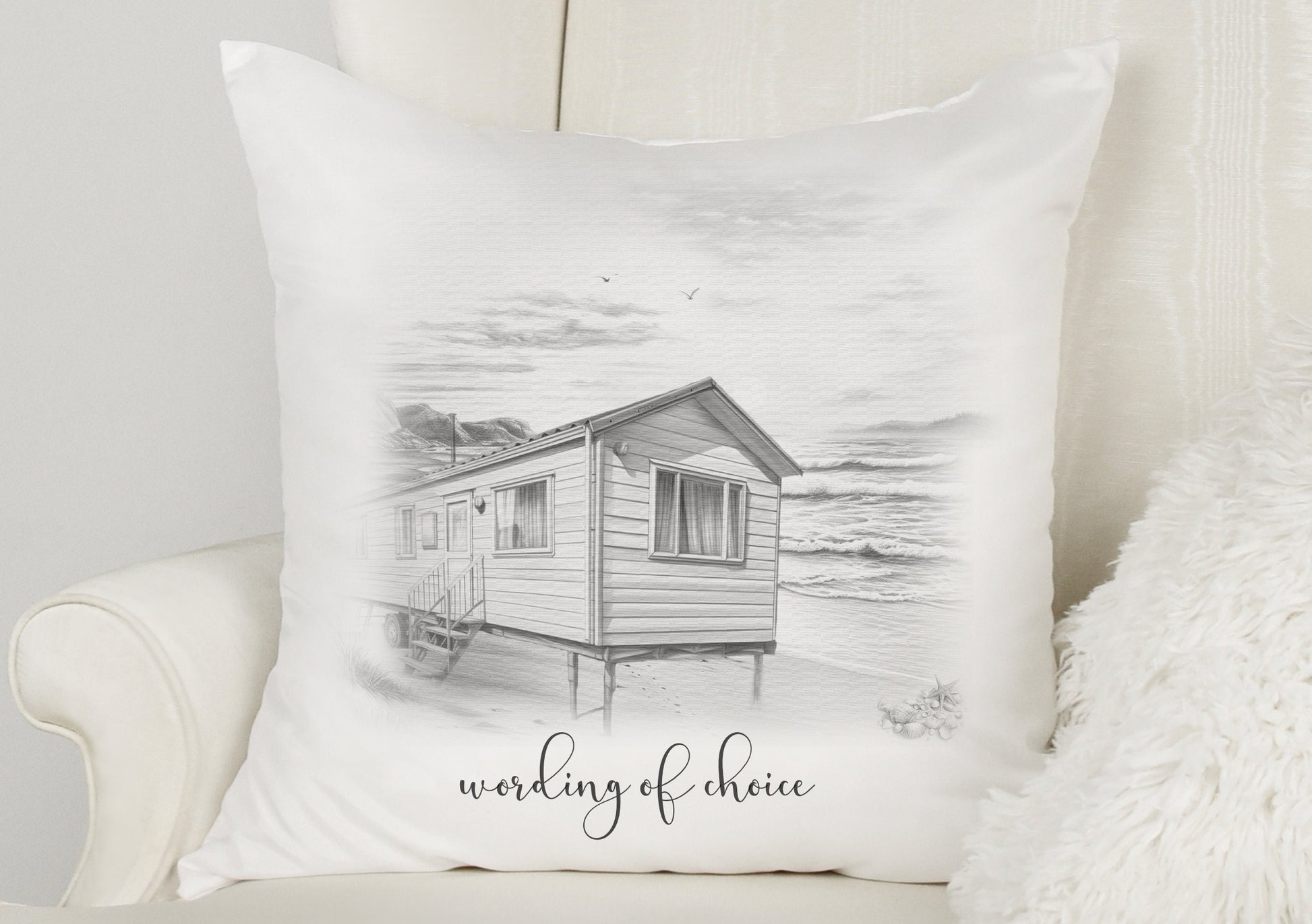 caravan cushion. personalised static caravan pillow. Camping and caravanning gift. Birthday present. Mothers or fathers day gift