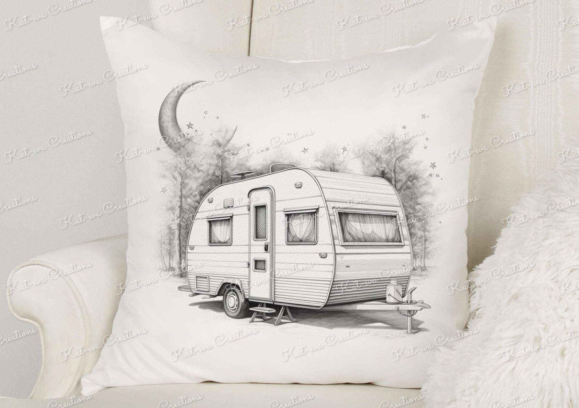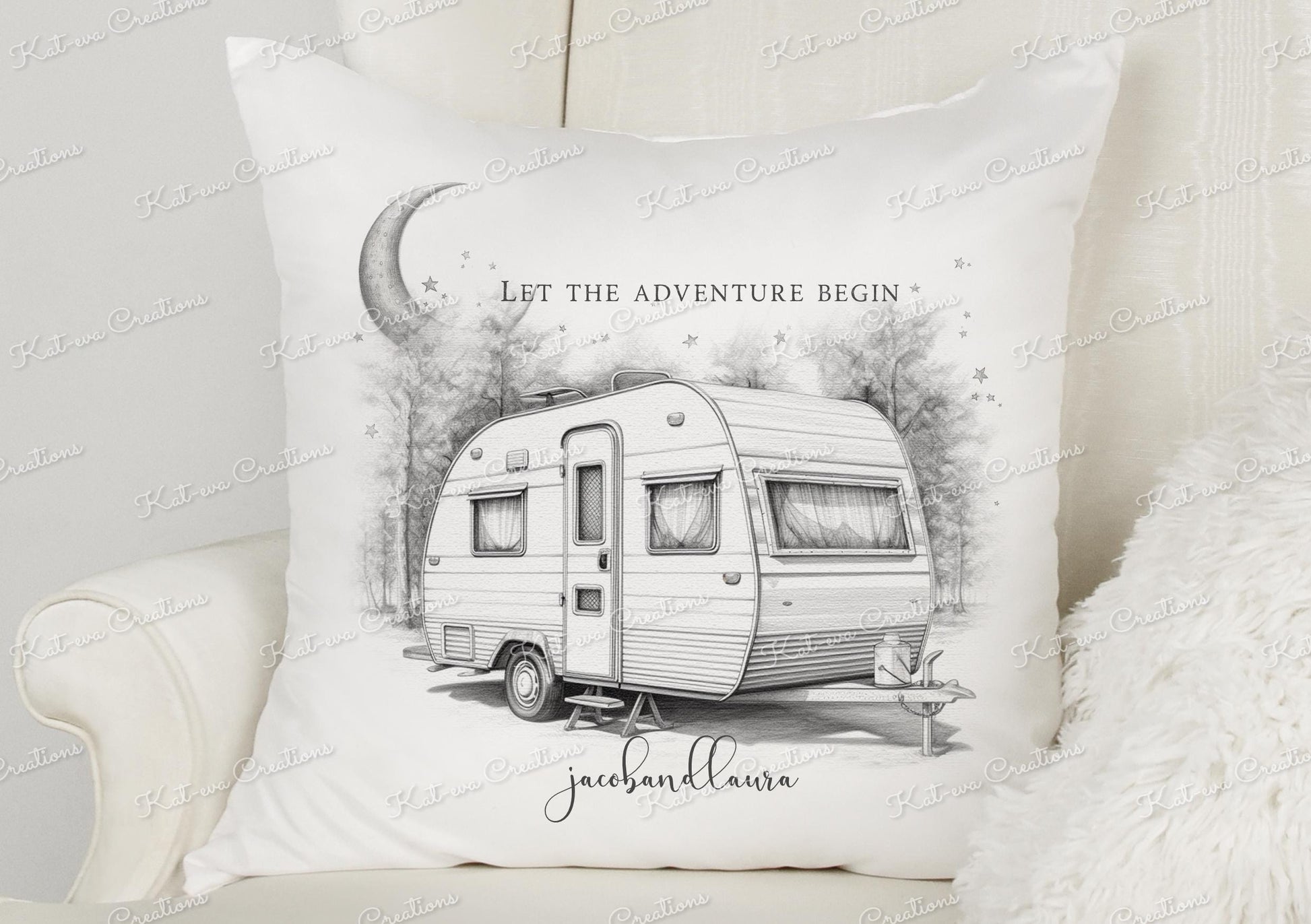 caravan cushion. personalised vintage caravan pillow. Camping and caravanning gift. Summer holiday present christmas or birthday gift