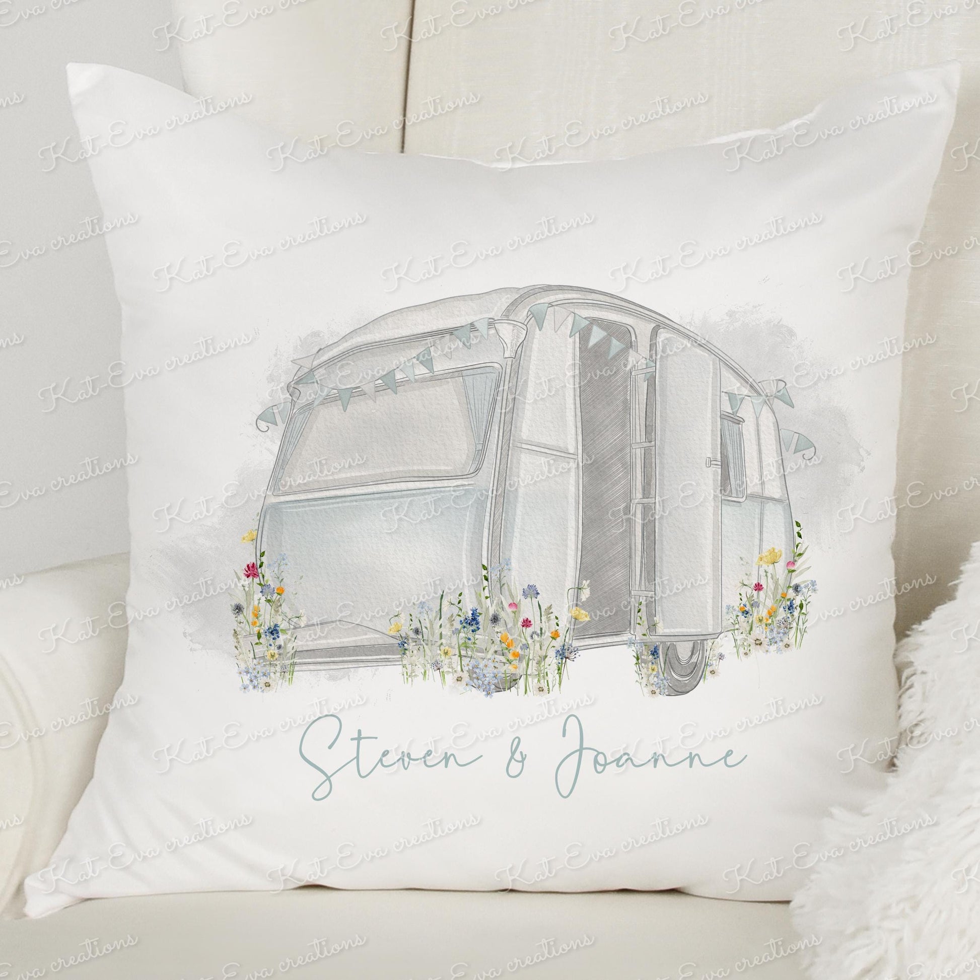 caravan cushion. personalised vintage caravan pillow. ideal reirement or birthday gift. Mothers day, fathers day or birthday present