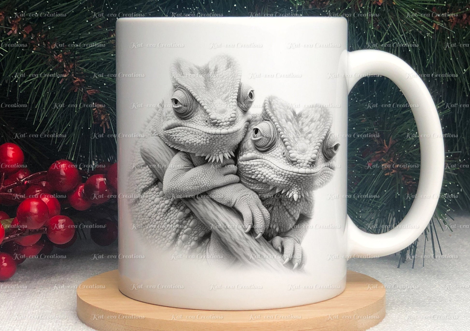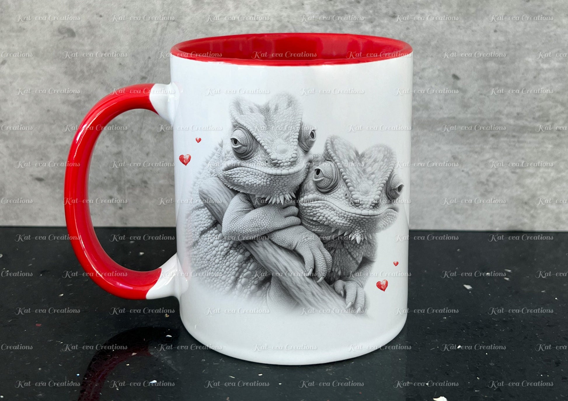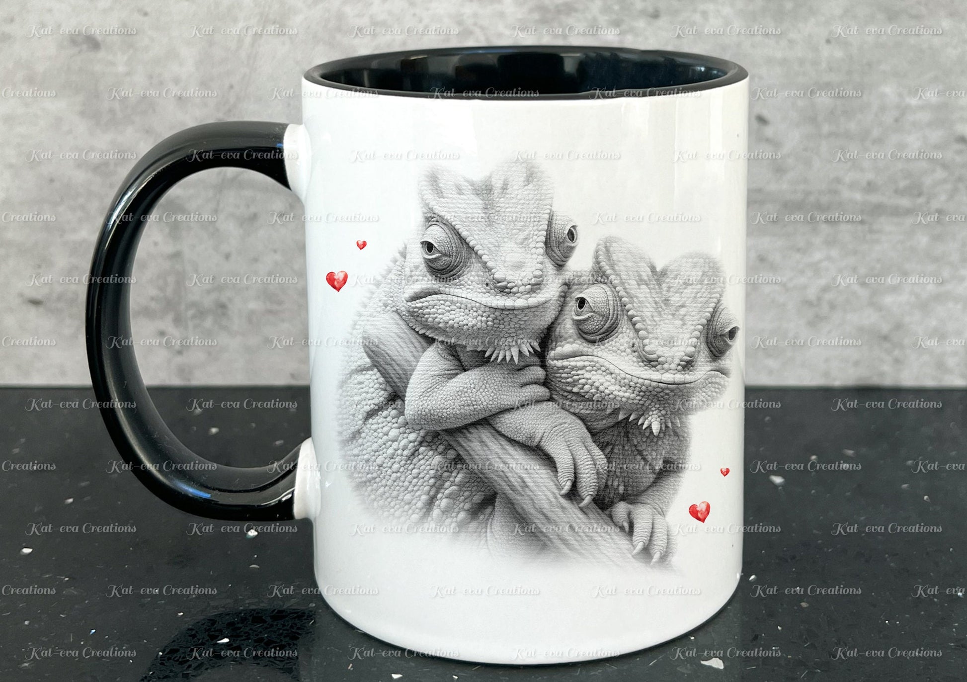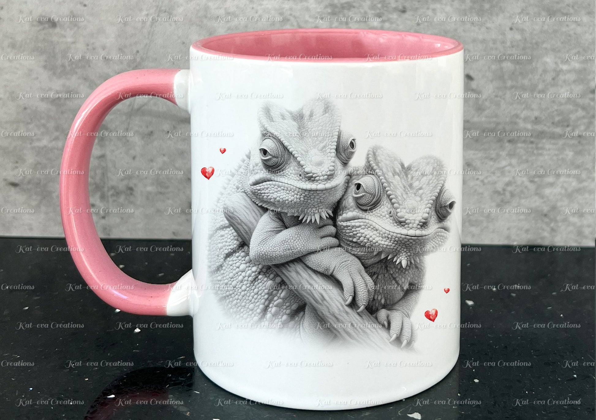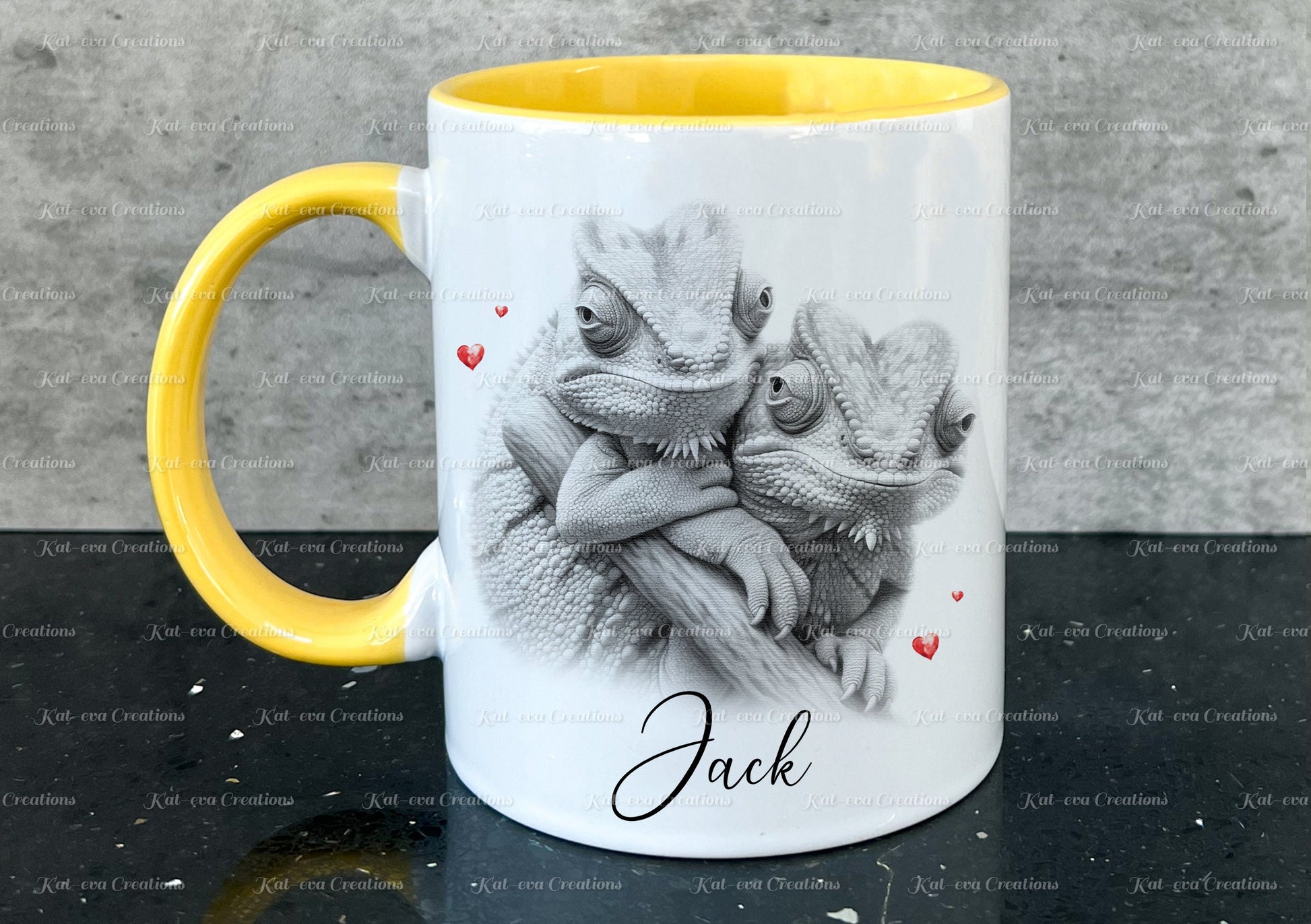 chameleon mug. Personalised chameleon couple cup. Ideal gift for Christmas. Birthday, secret santa or stocking filler. wildlife collection