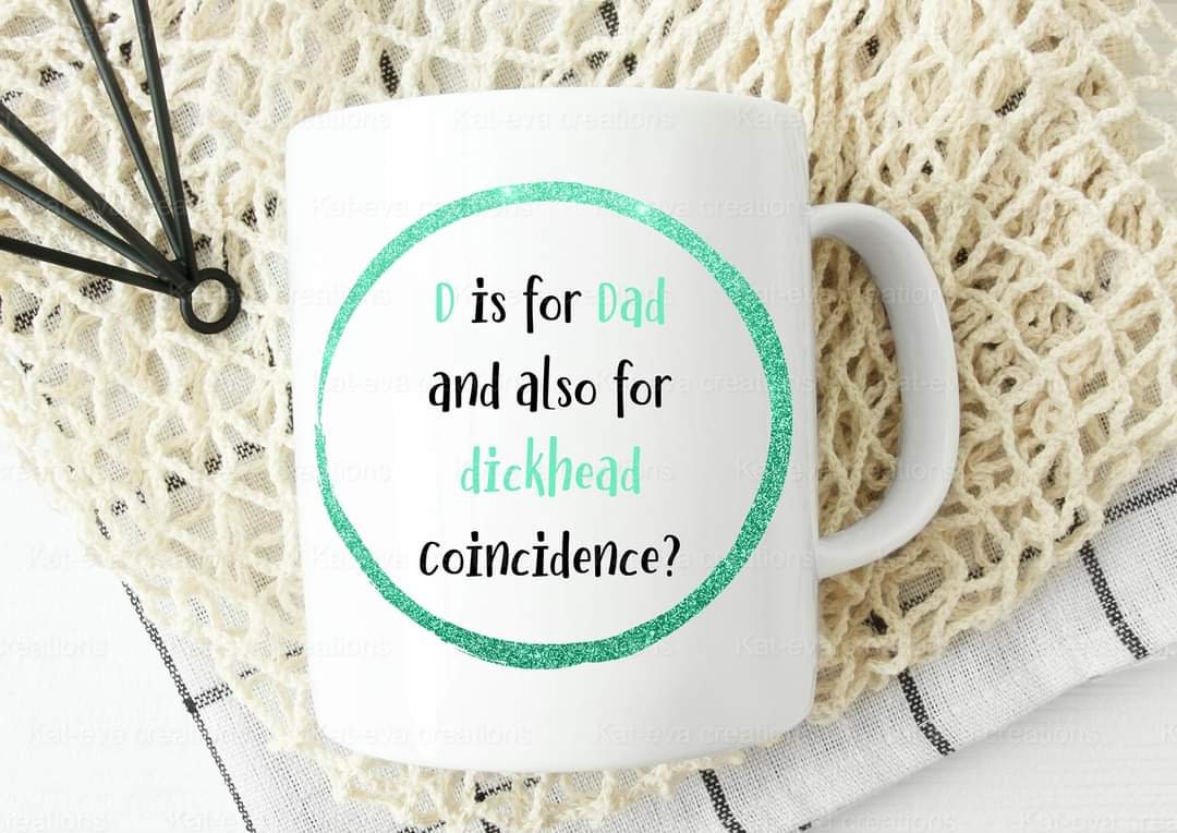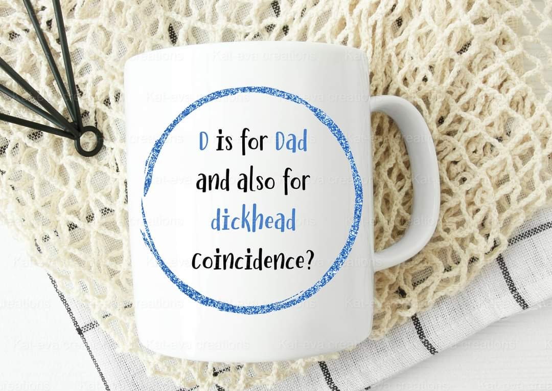 D is for Dad, and also for dickhead coincidence 11oz mug. Can be personalised. Fathers day gift or birthday present