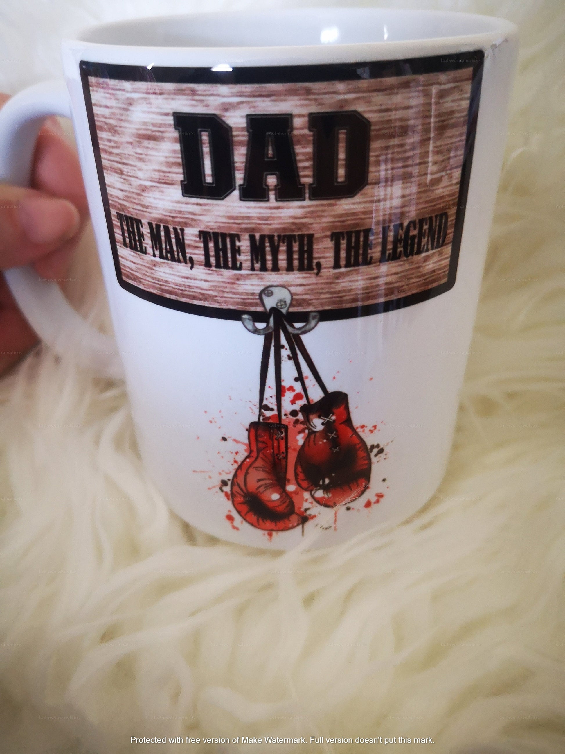Dad / grandad the man, the myth the legend boxing glove 11oz mug can be personalised