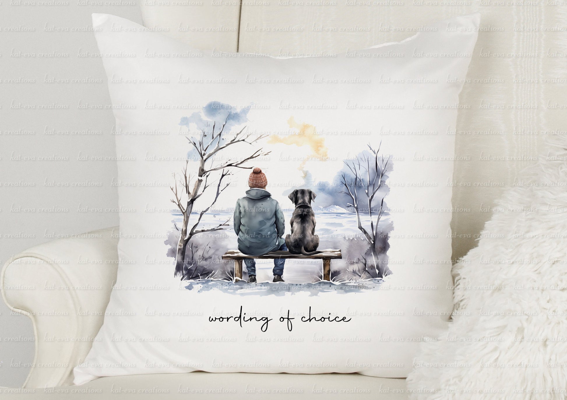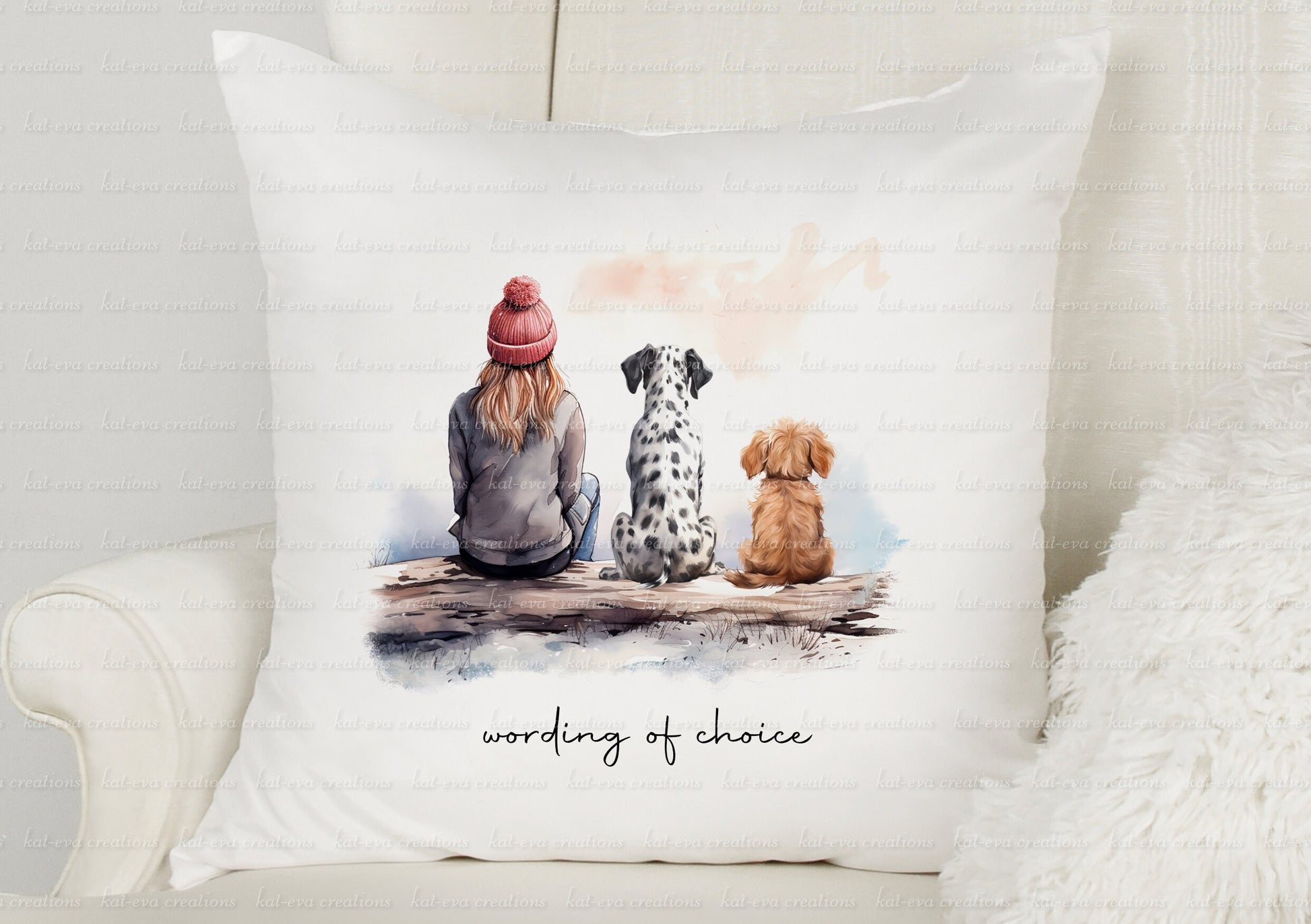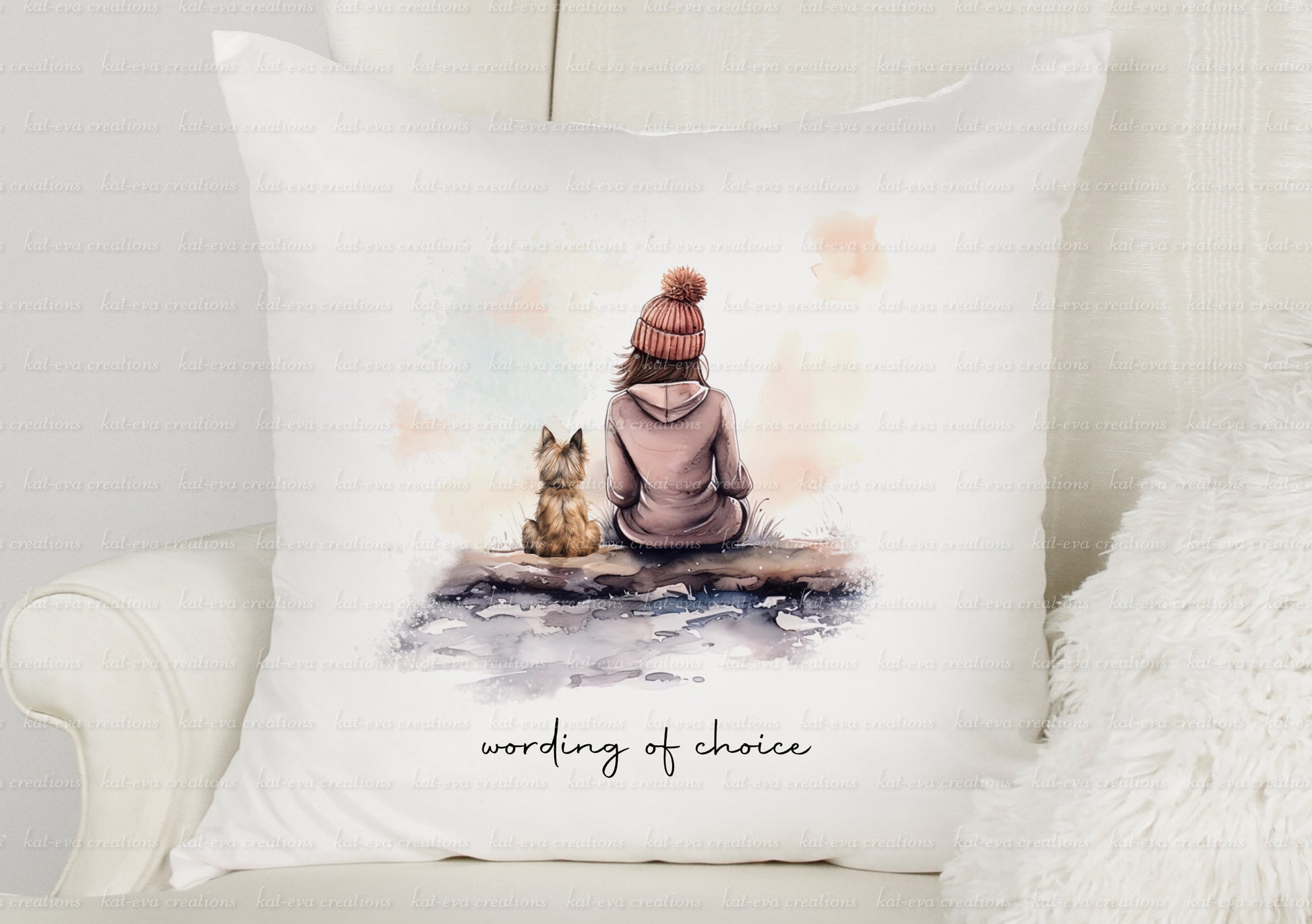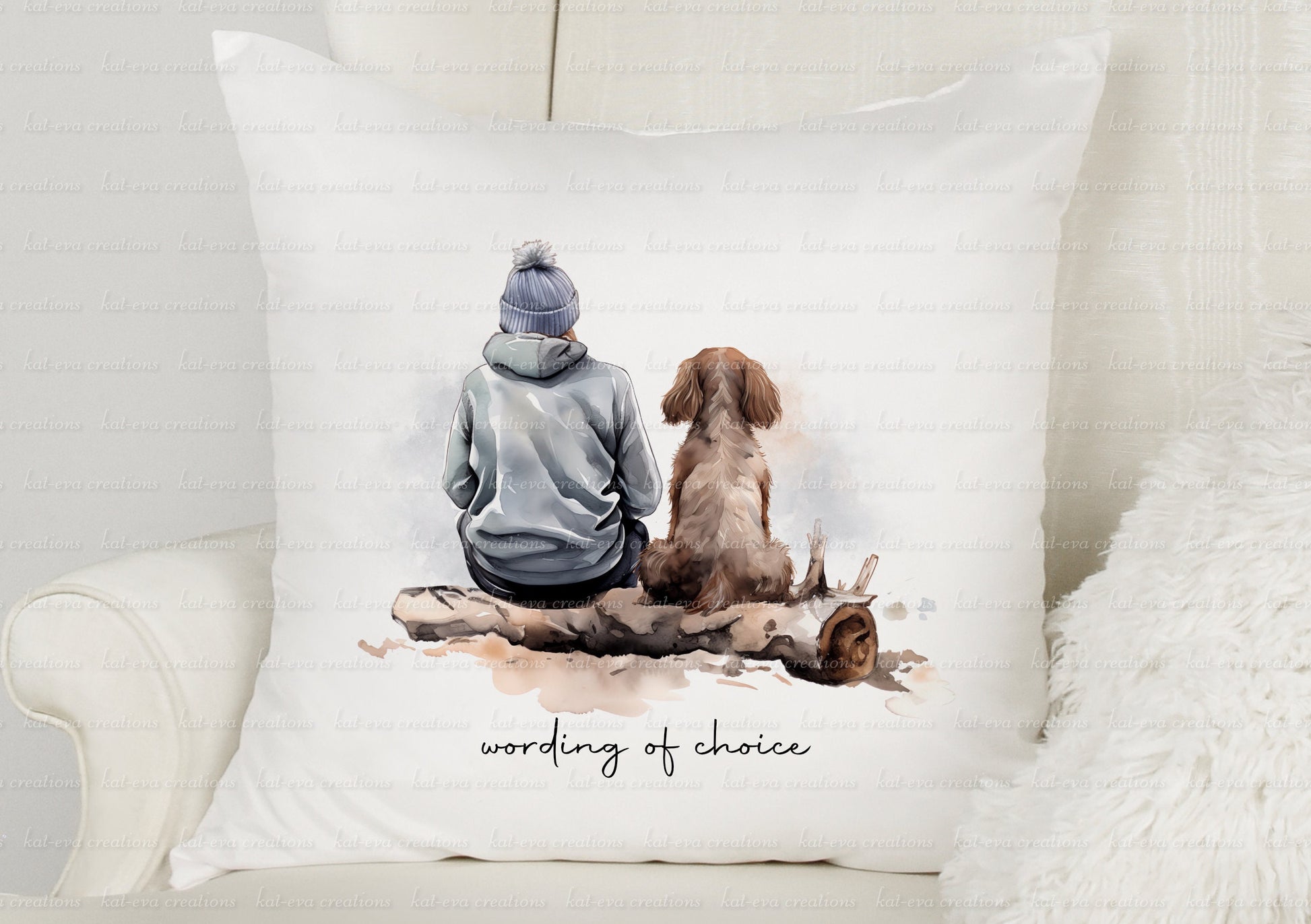 Dog and owner cushion. personalised dog cushion. Lots of different dogs available
