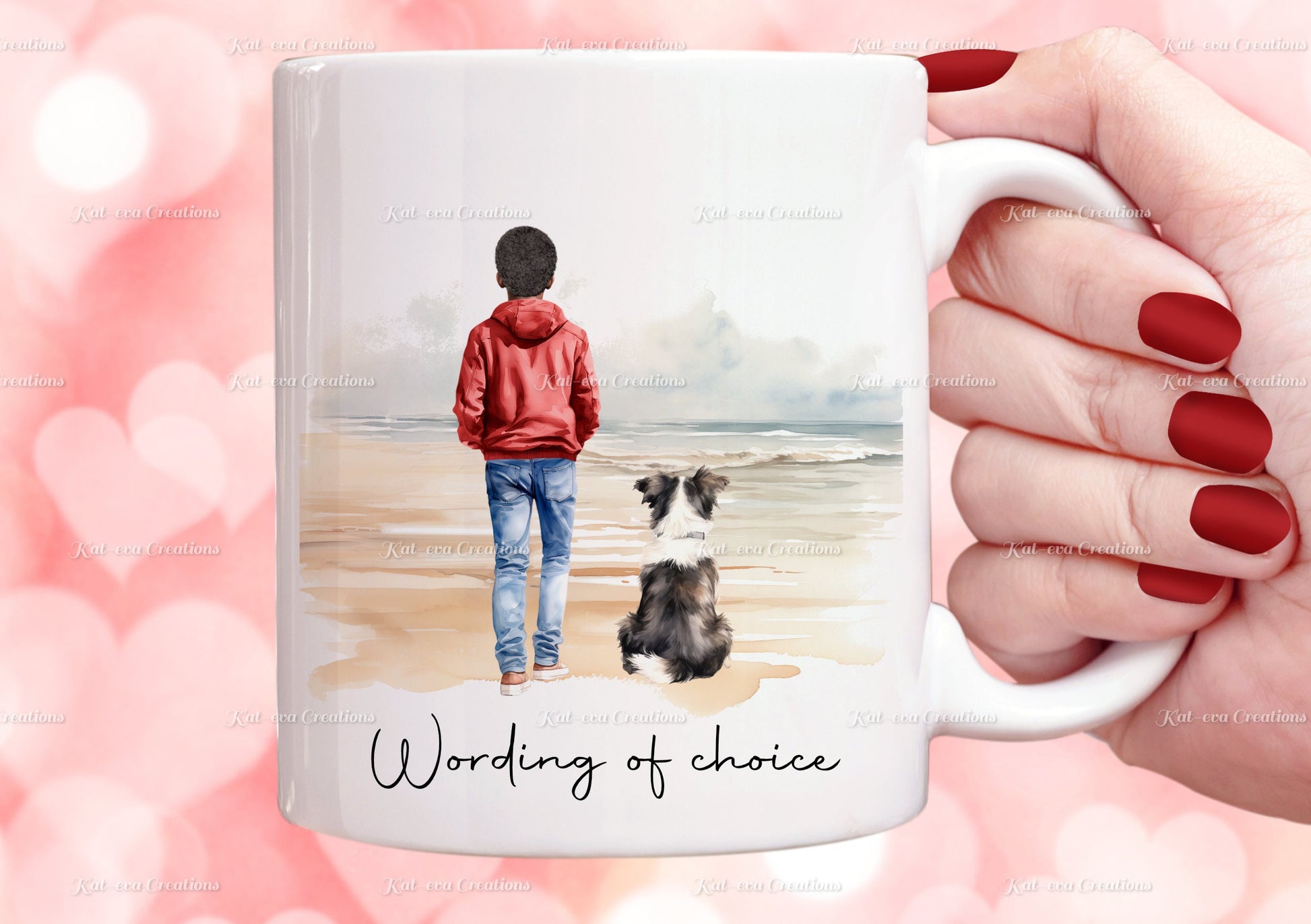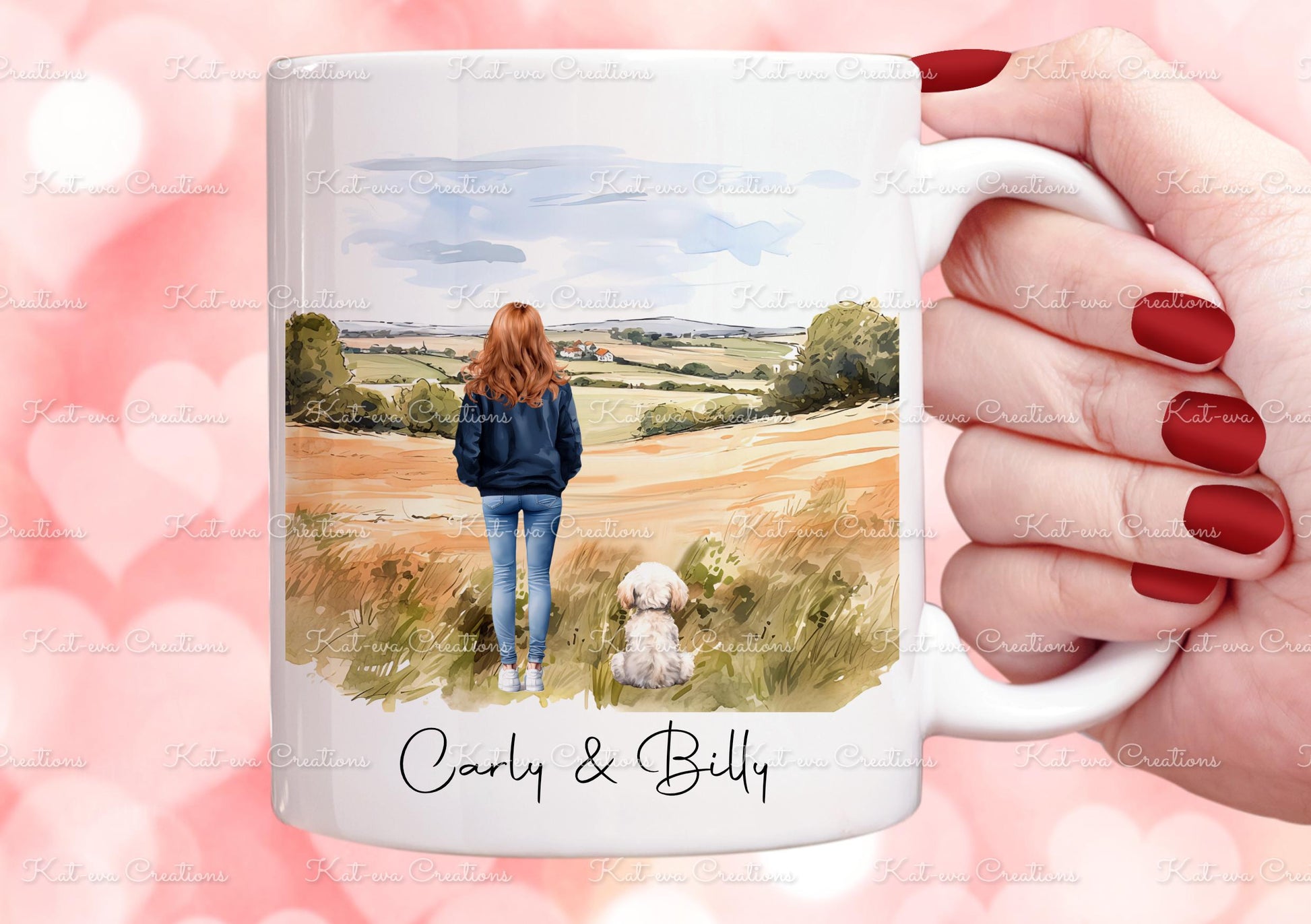 Dog and owner mug. personalised dog mug. Lots of different people and dogs available, Ideal Birthday or Mothers day gift