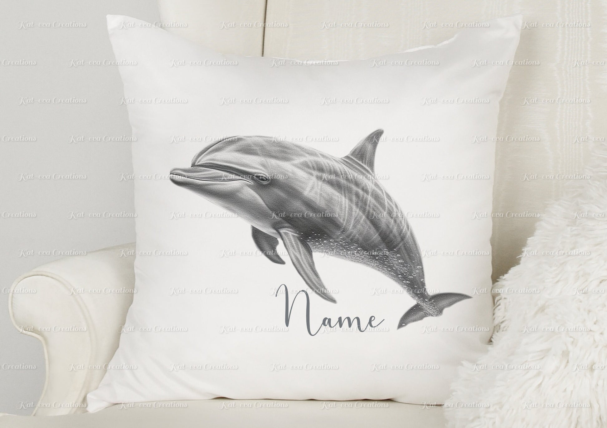Dolphin cushion. personalised sketch dolphin pillow. ideal christmas, secret santa, stocking filler, or birthday gift