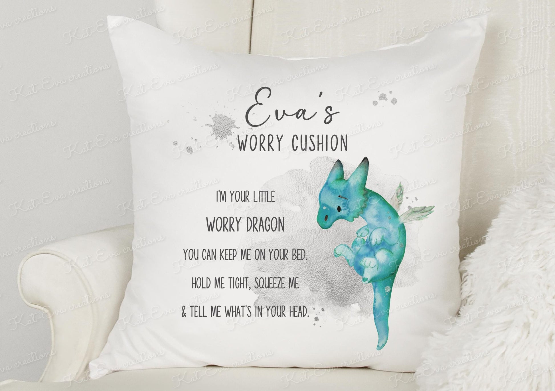 dragon cushion. Personalised Dragon worry cushion. gift for children, Dragon present