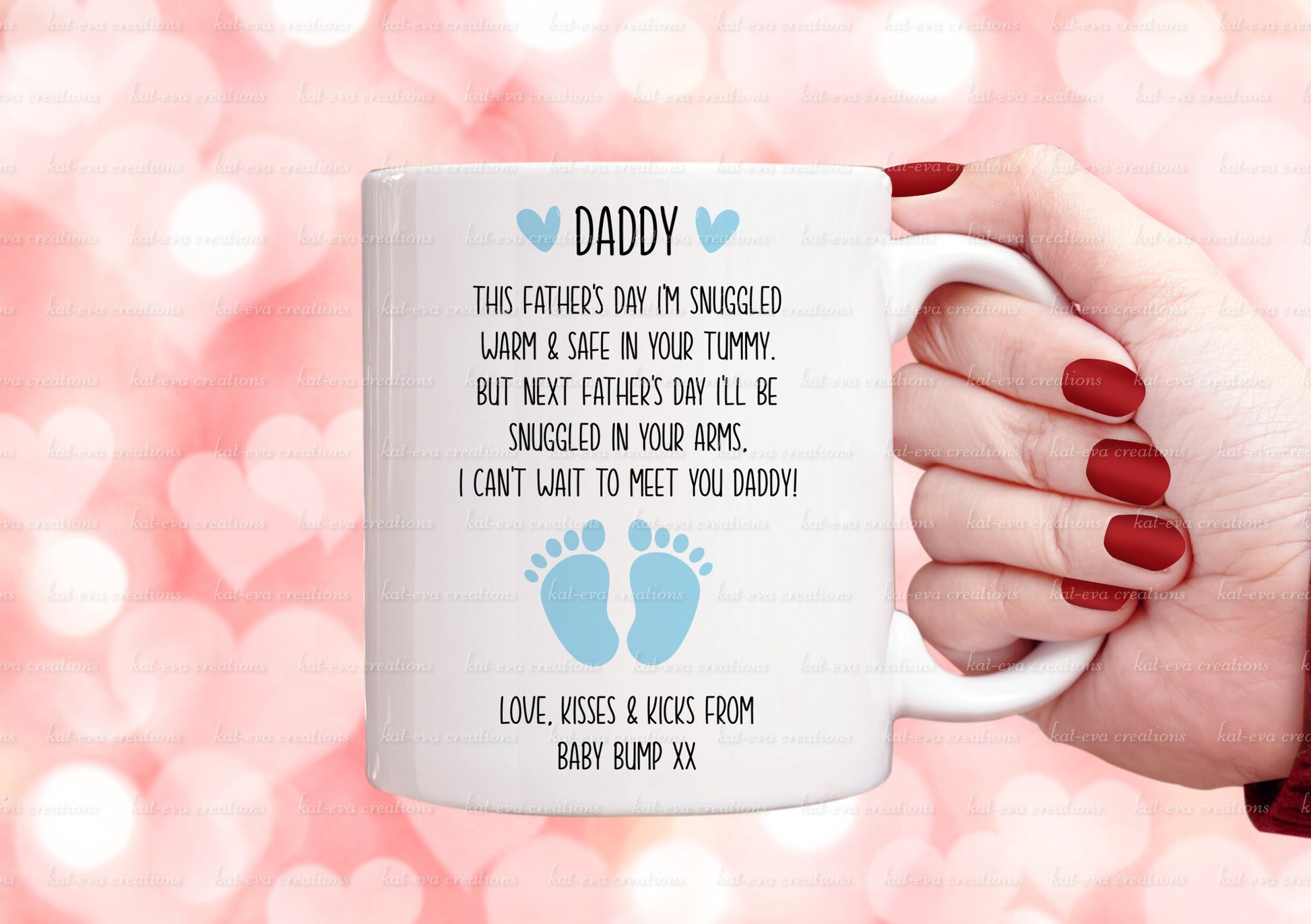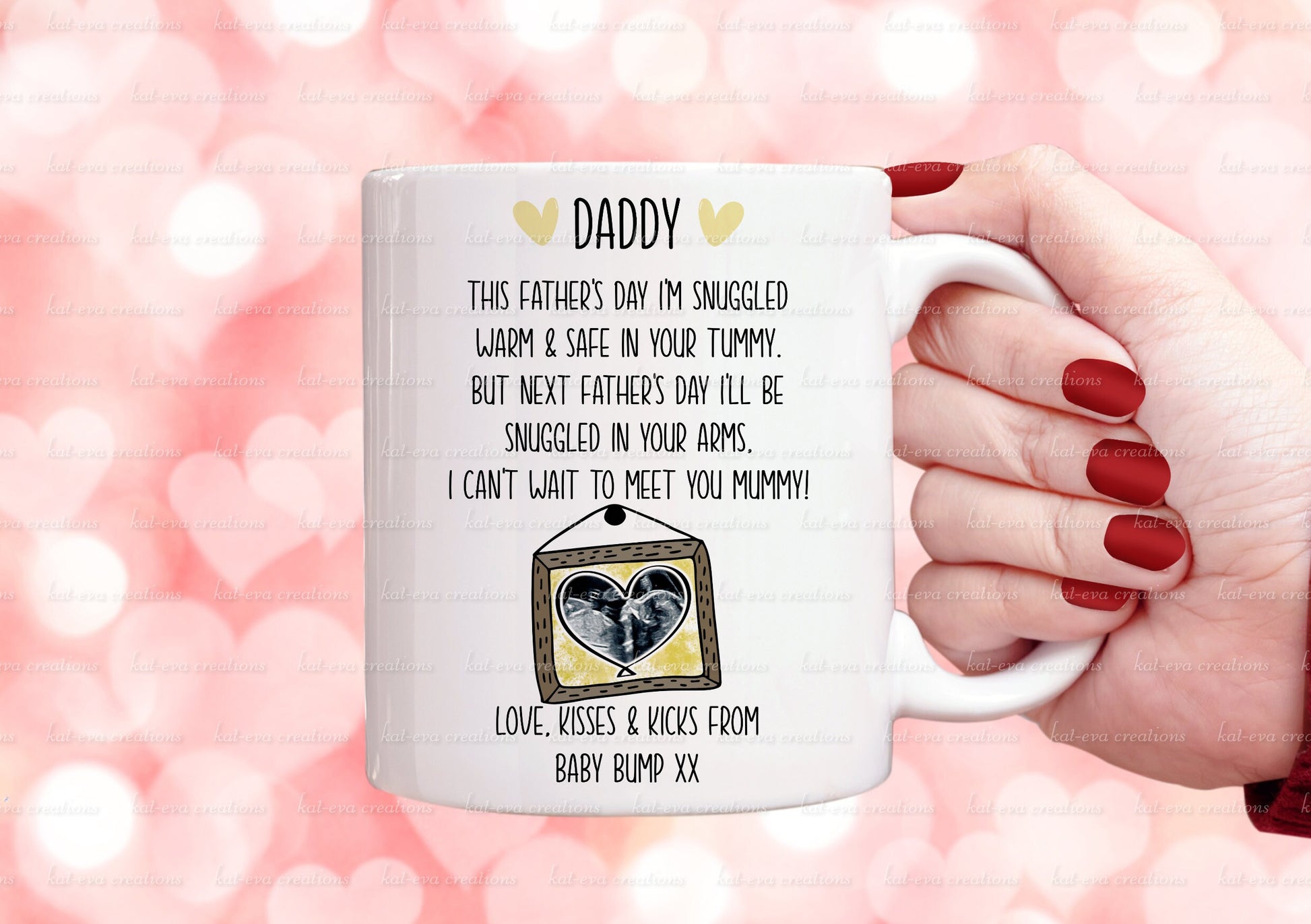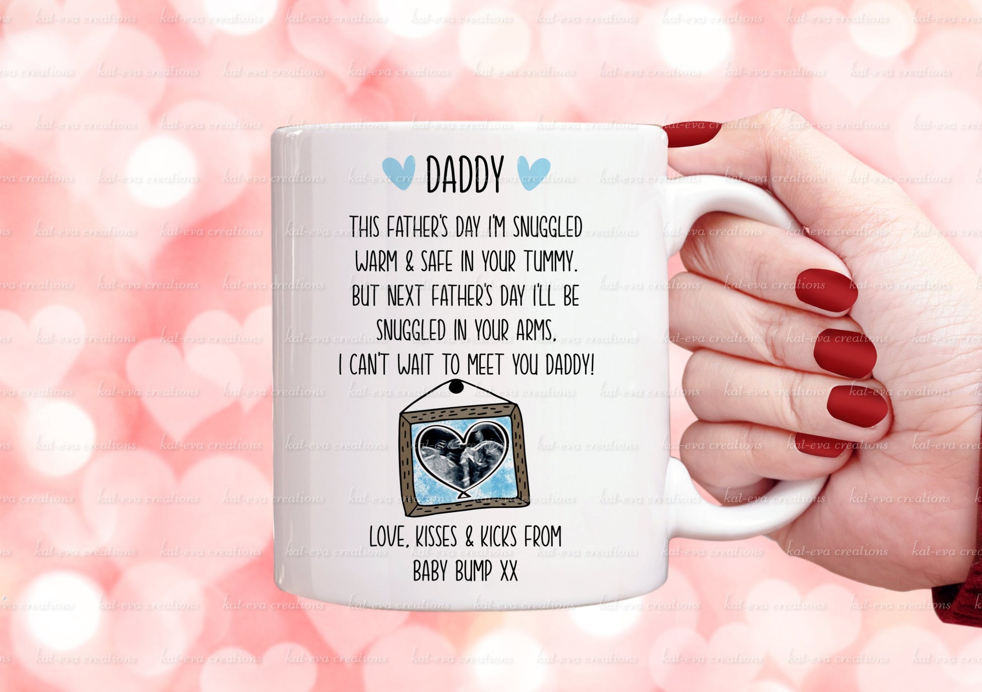 father's day pregnancy mug. Can be personalised with scan picture and names