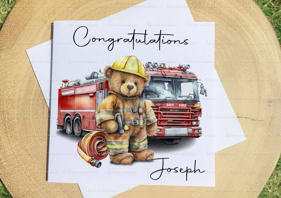 Fireman card, Personalised fireman, firewoman card. Congratulations, passing out parade card.