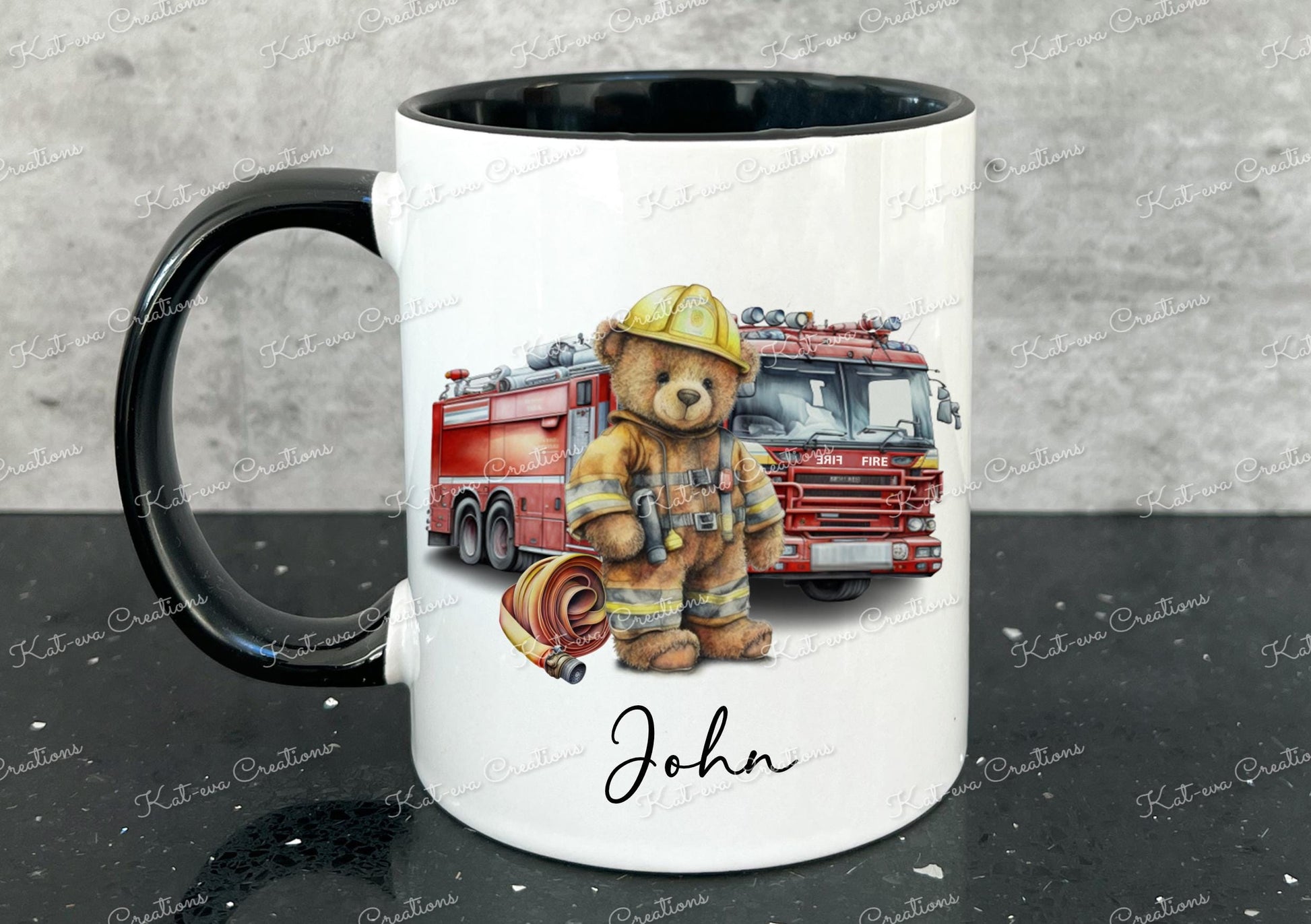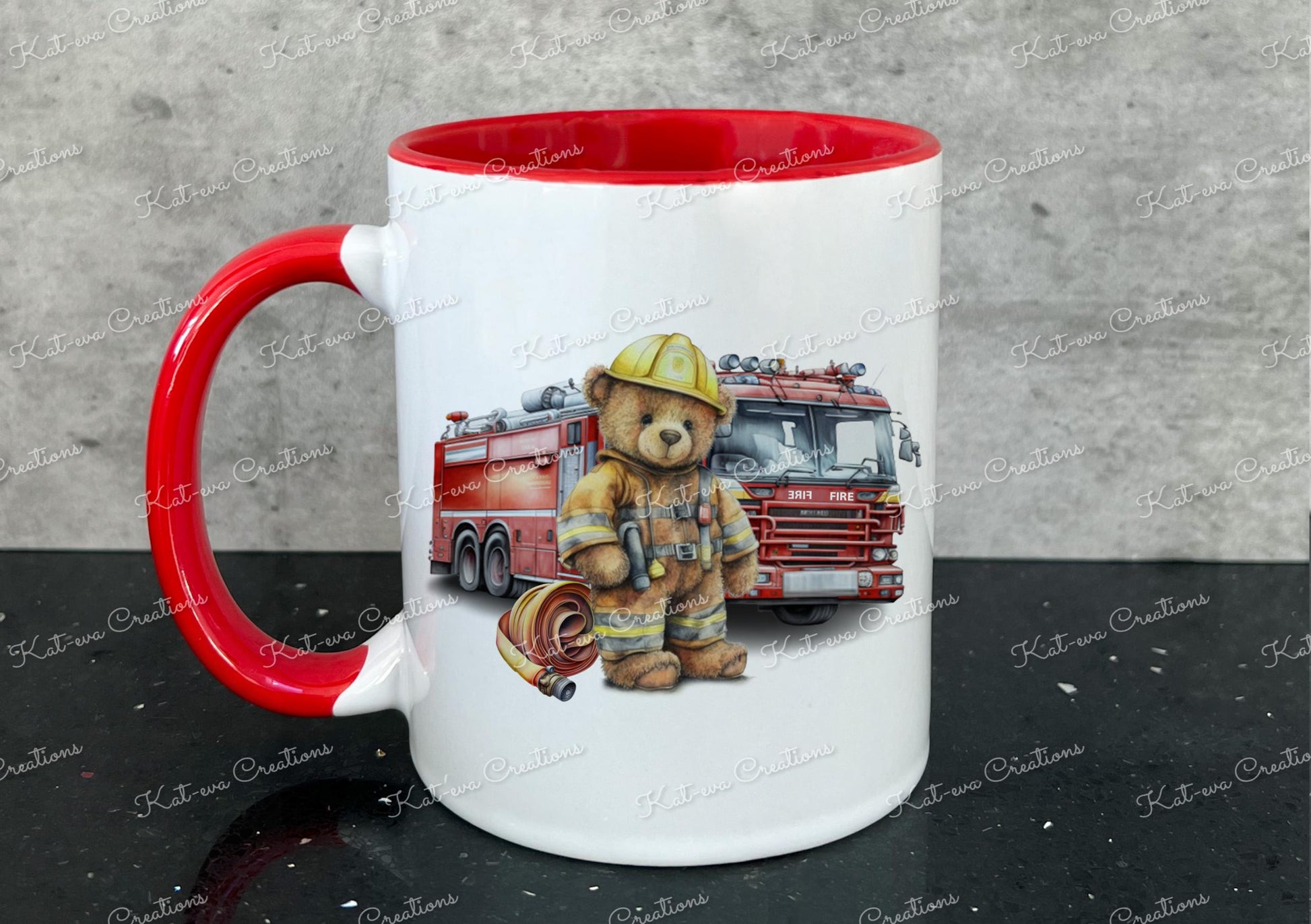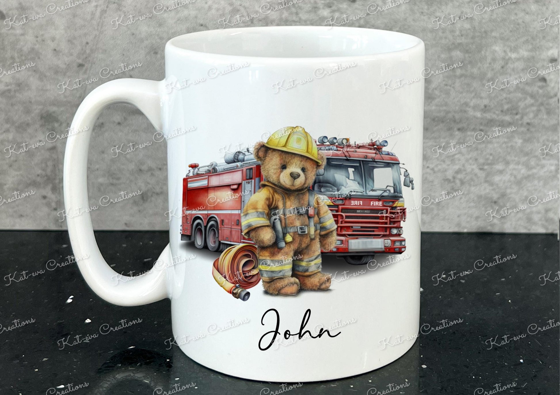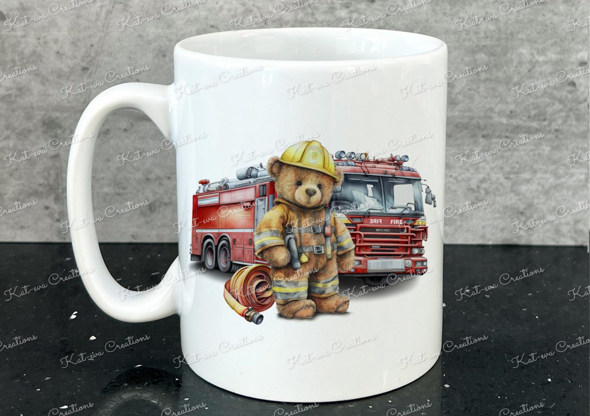 Fireman mug. Firewoman cup. Personalised teddy cup. Ideal passing out gift. birthday or christmas present. secret santa