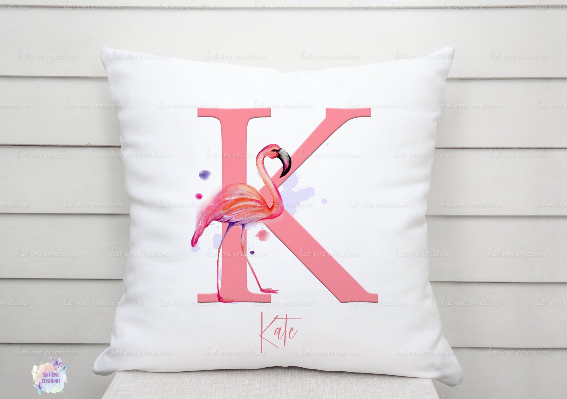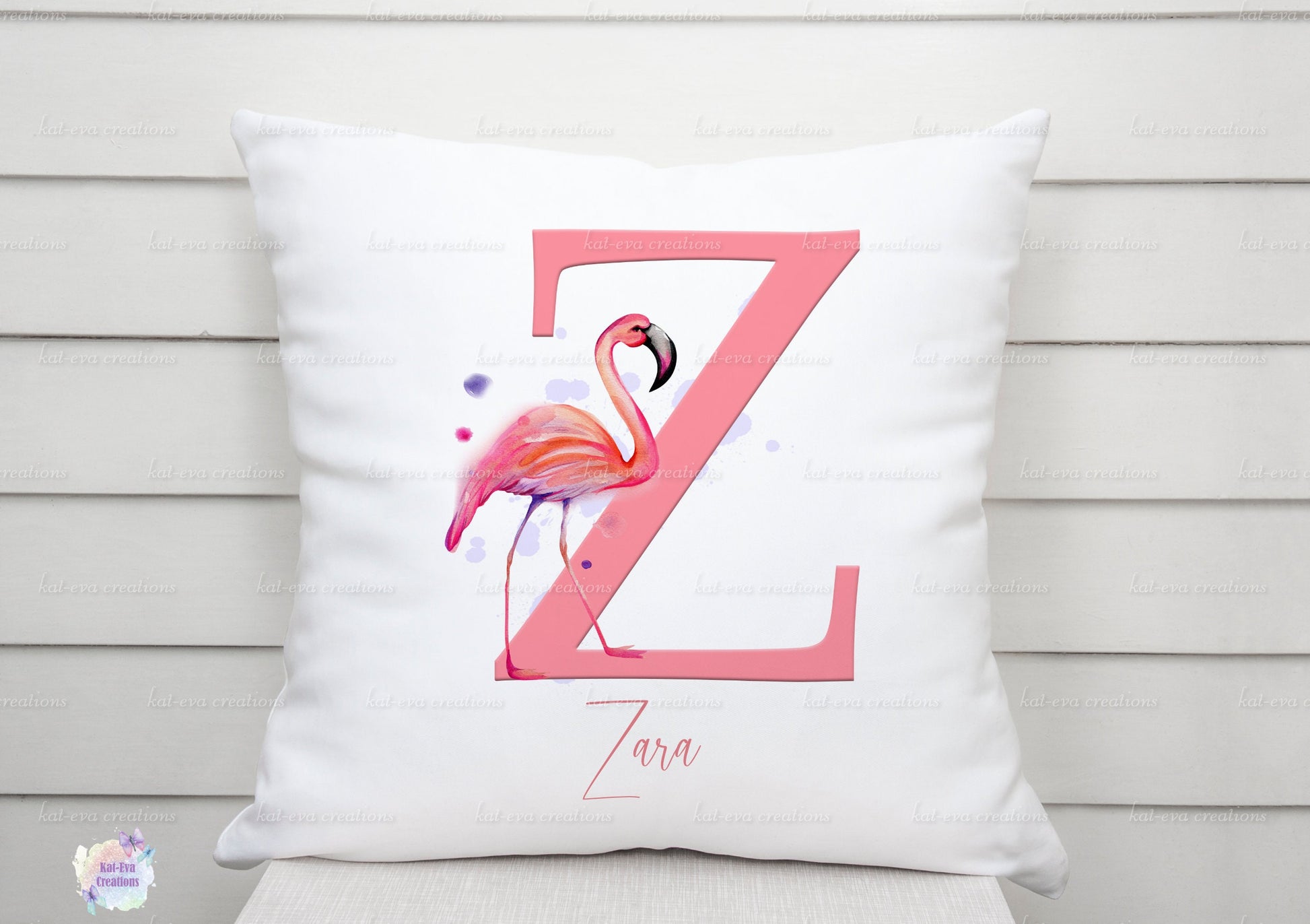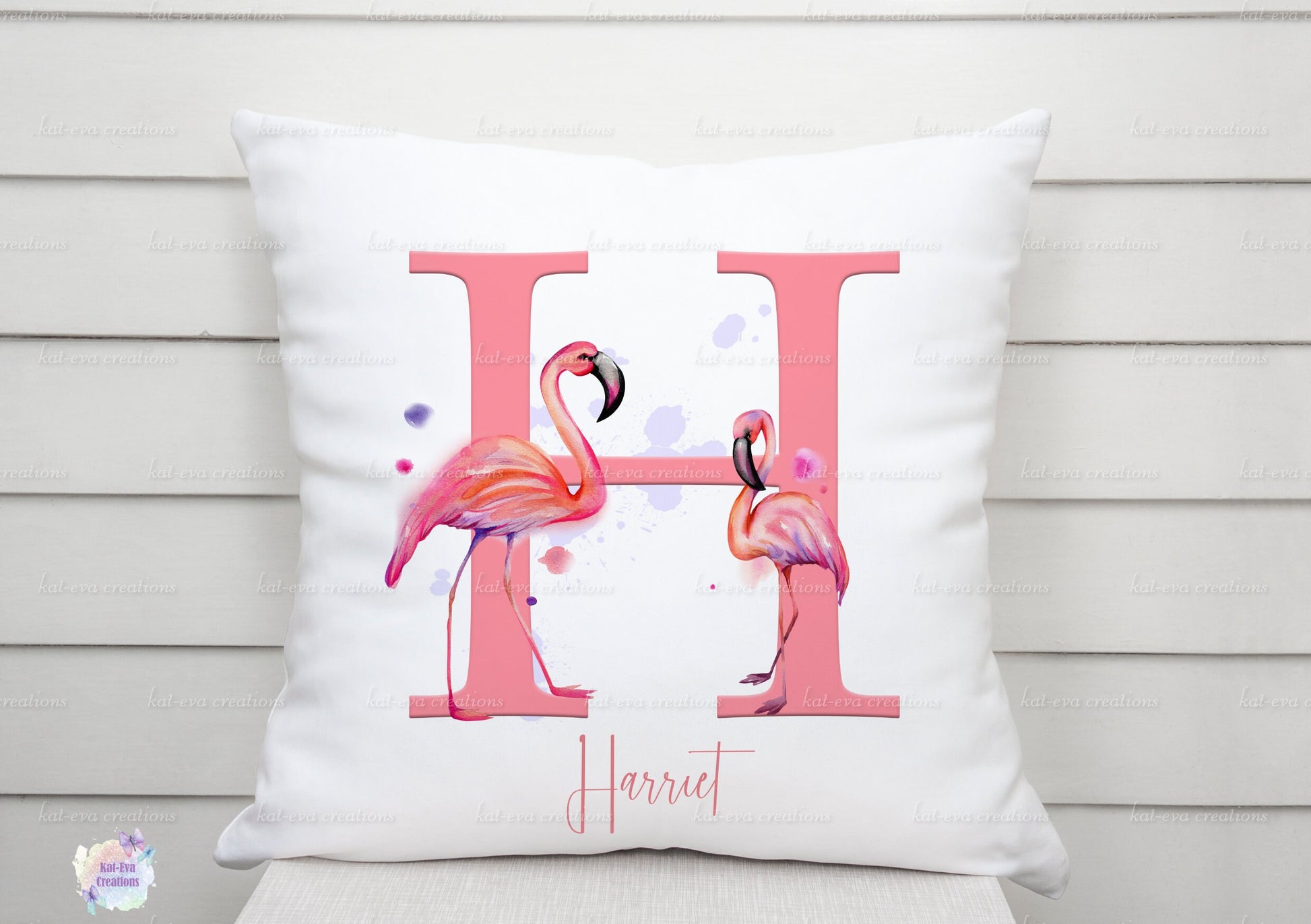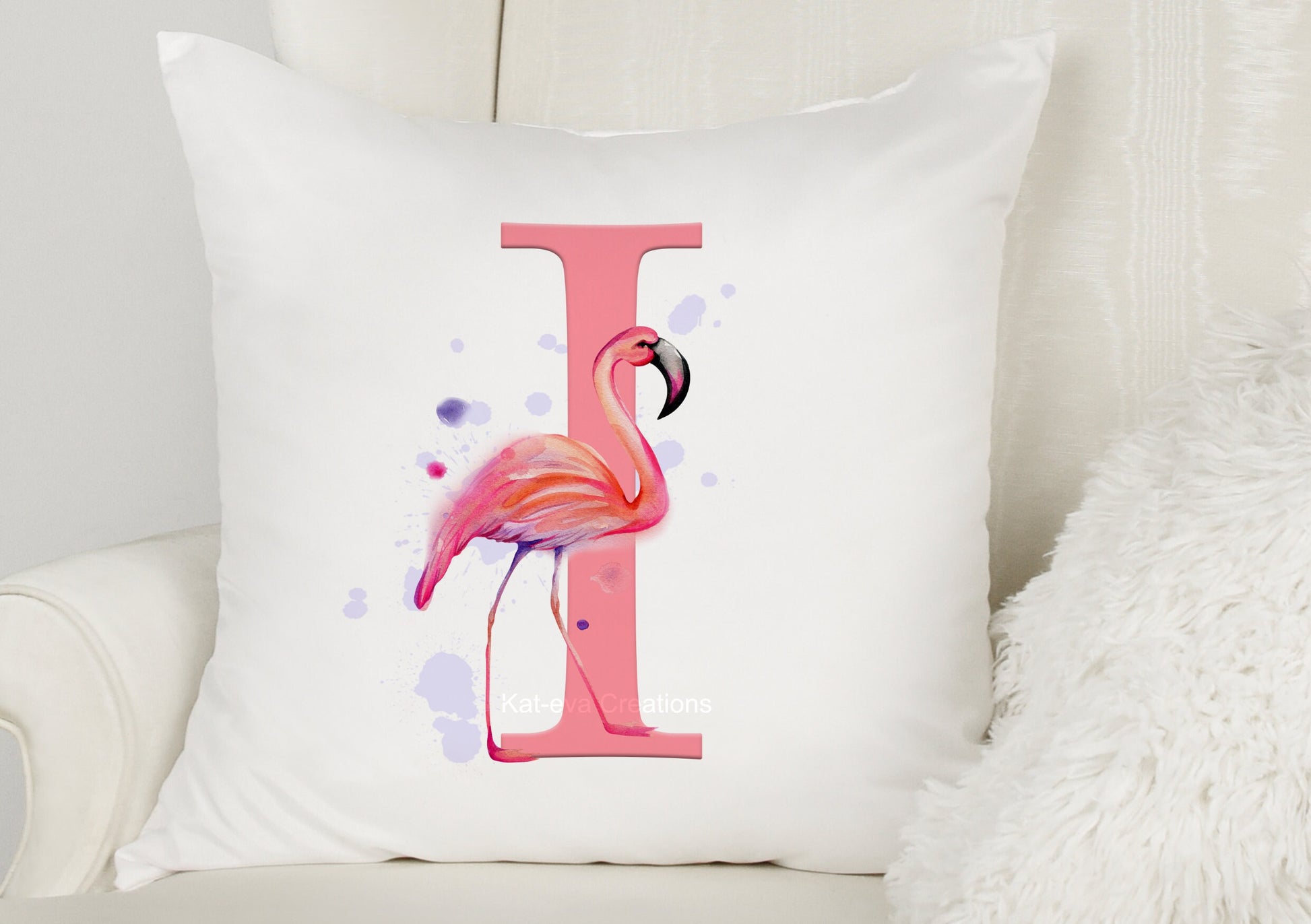 flamingo initial cushion can be personalised. ideal birthday or christmas gift