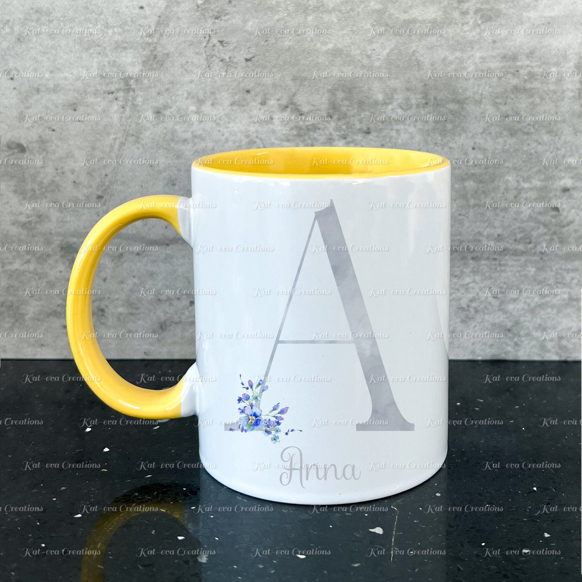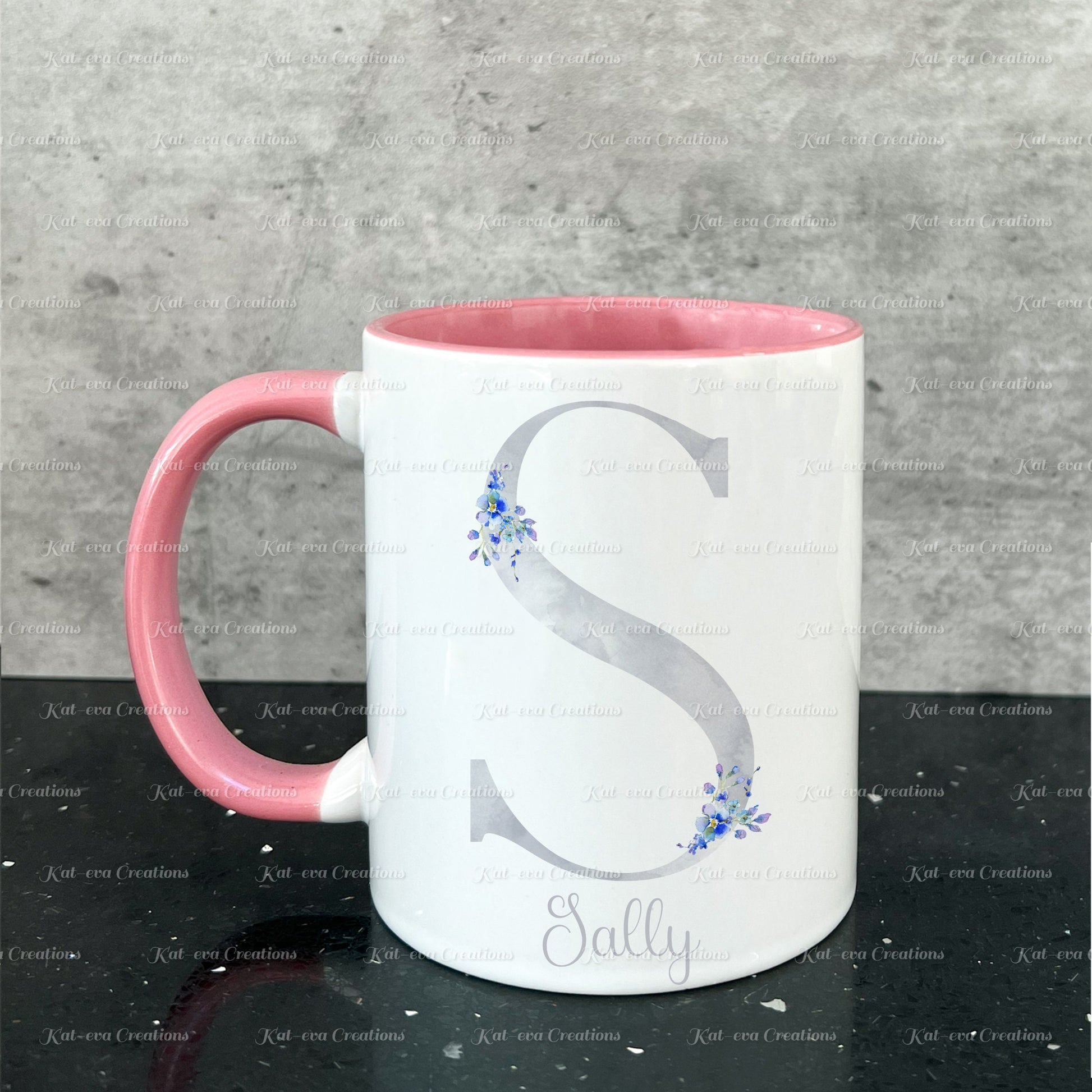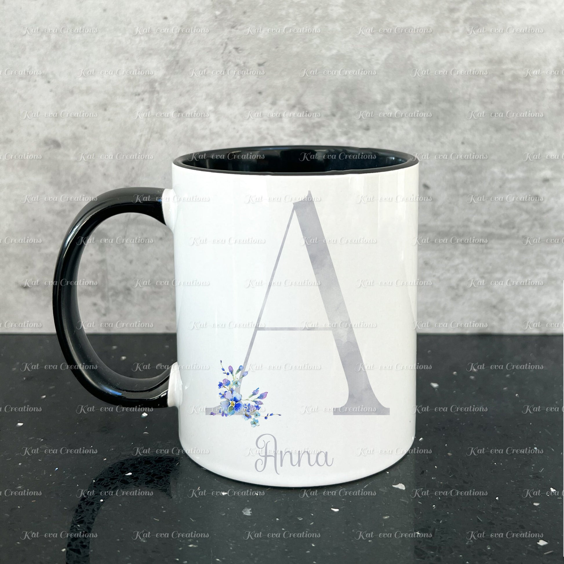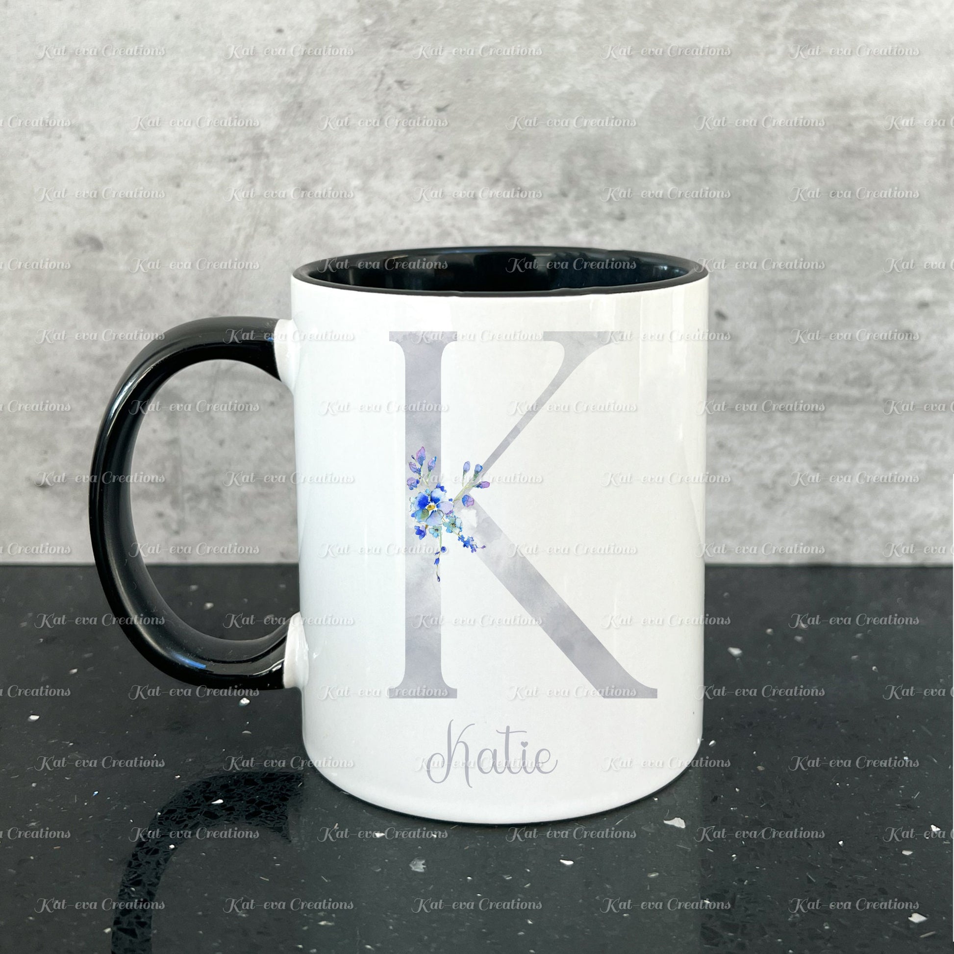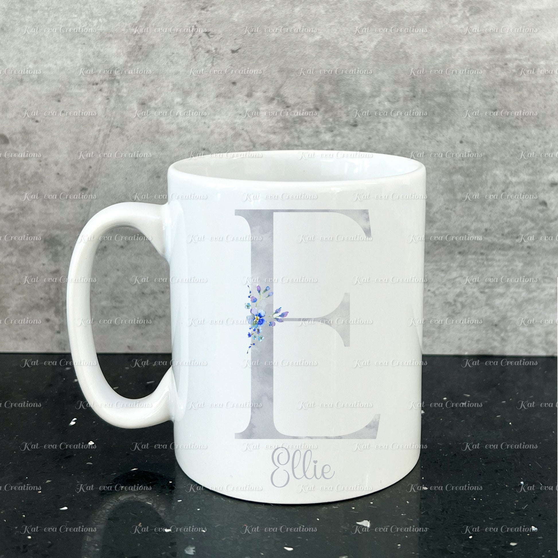 Forget me not mug. Personalised flower / floral alphabet cup. Ideal Birthday gift
