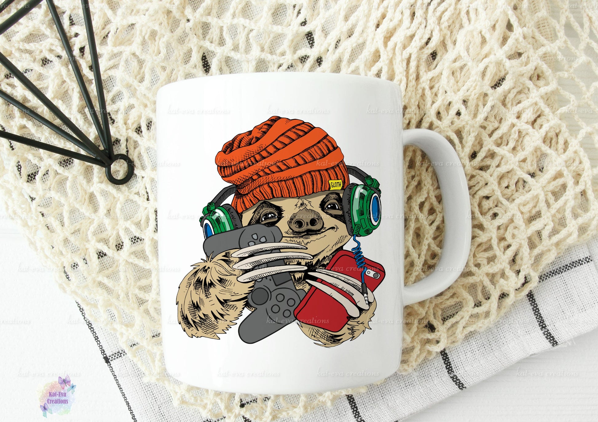 Gamer sloth mug. can be personalised.