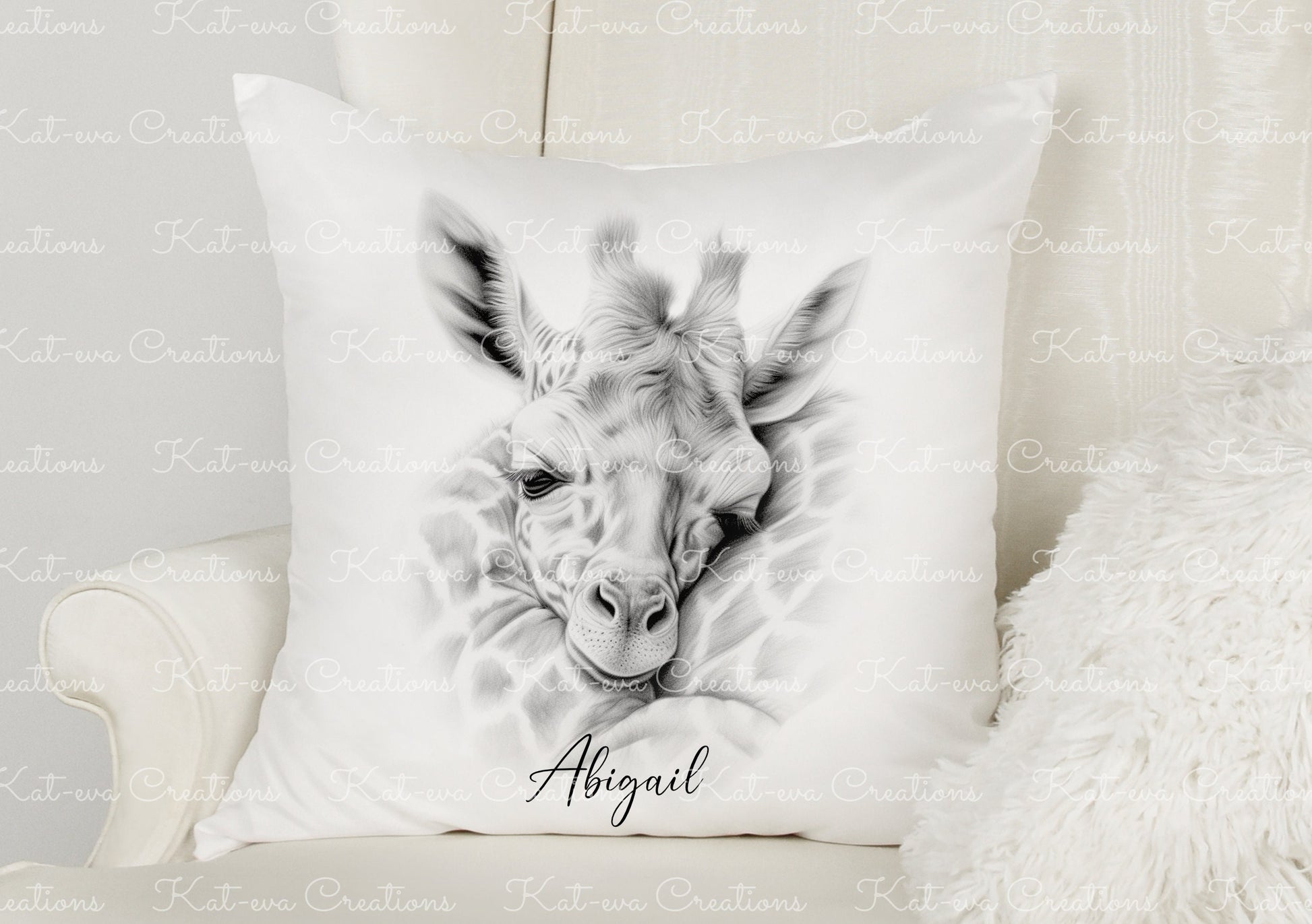 giraffe cushion. personalised sleeping giraffe pillow. ideal christmas, secret santa, stocking filler, or birthday gift