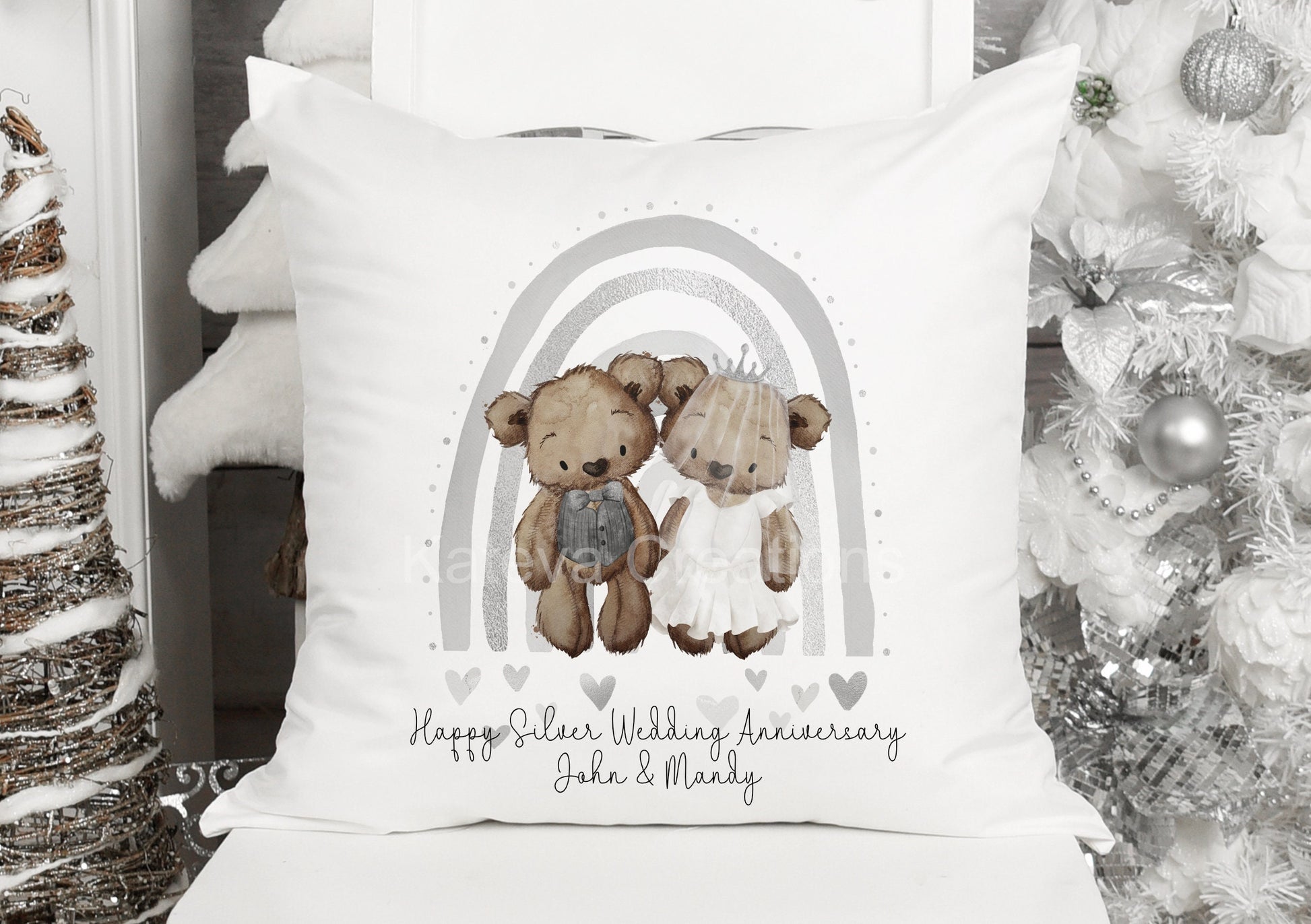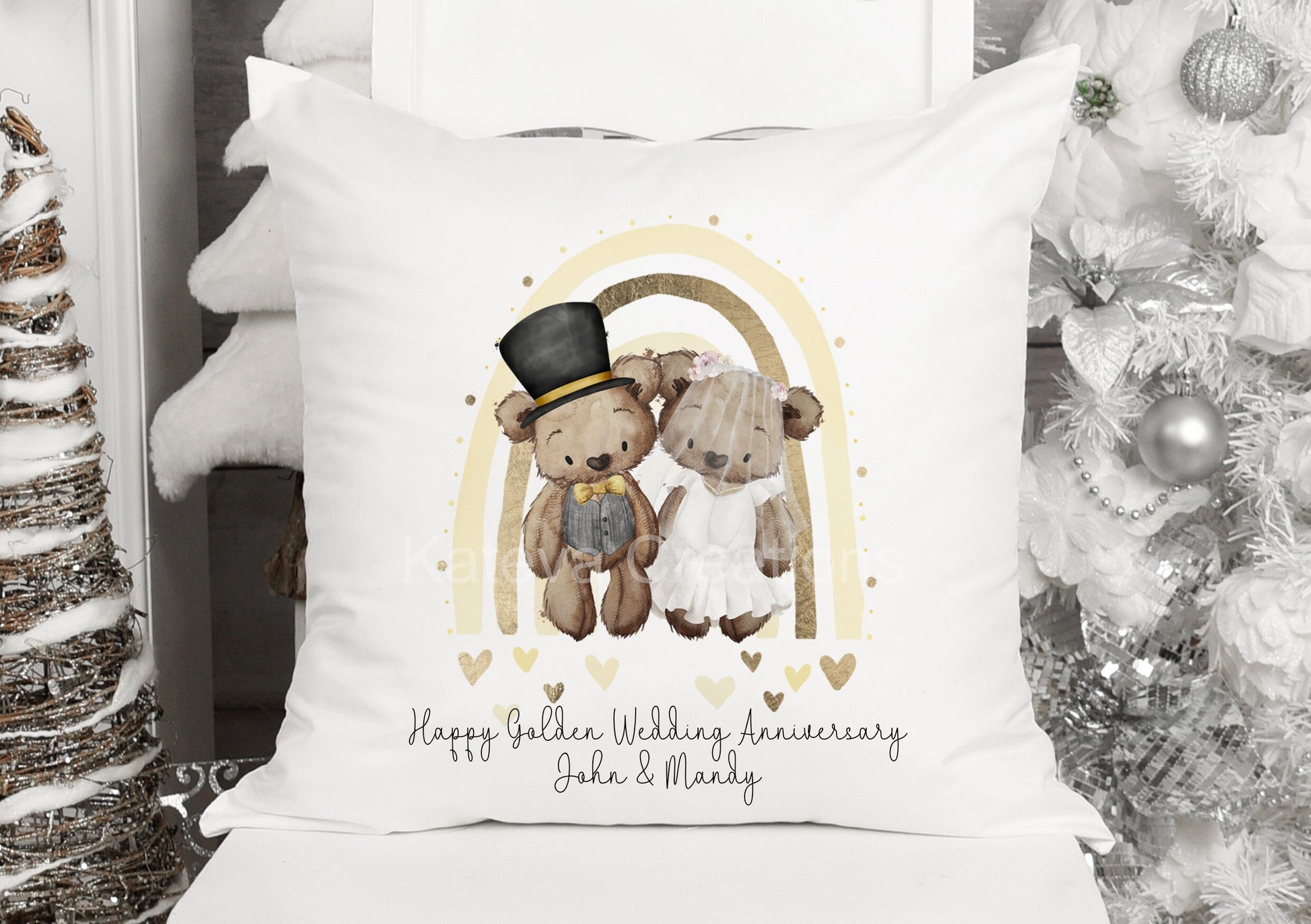 Gold or silver wedding anniversary cushion. Personalised anniversary gift