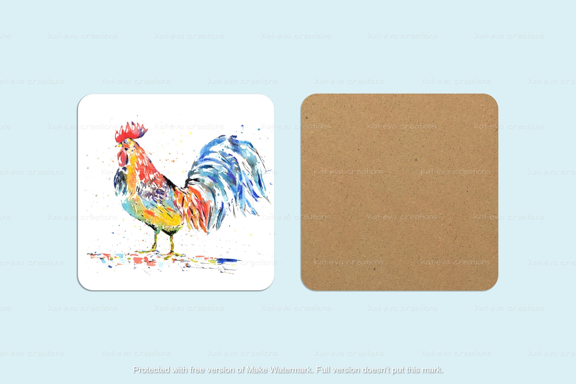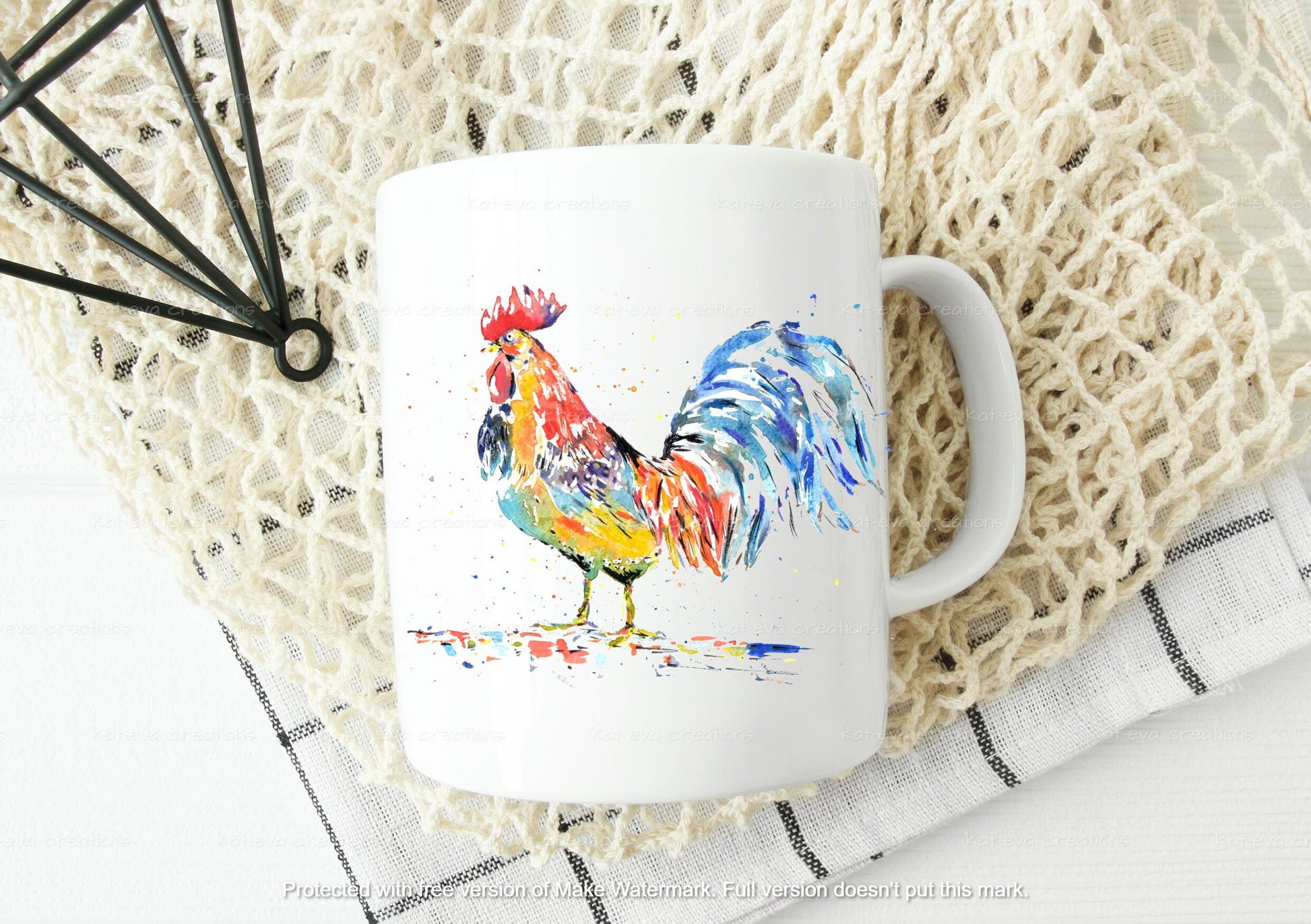gorgeous watercolour chicken / hen / rooster/ cockerel mug or mug and coaster set. can be personalised