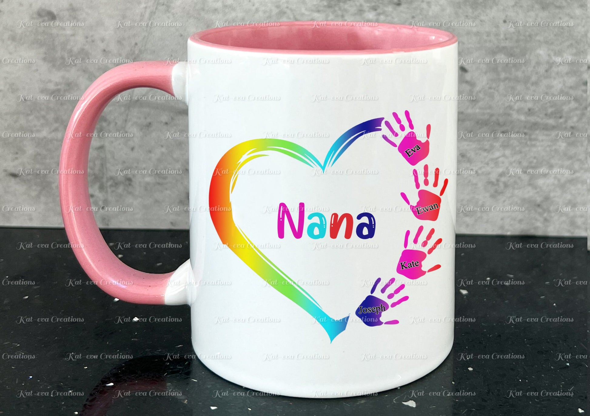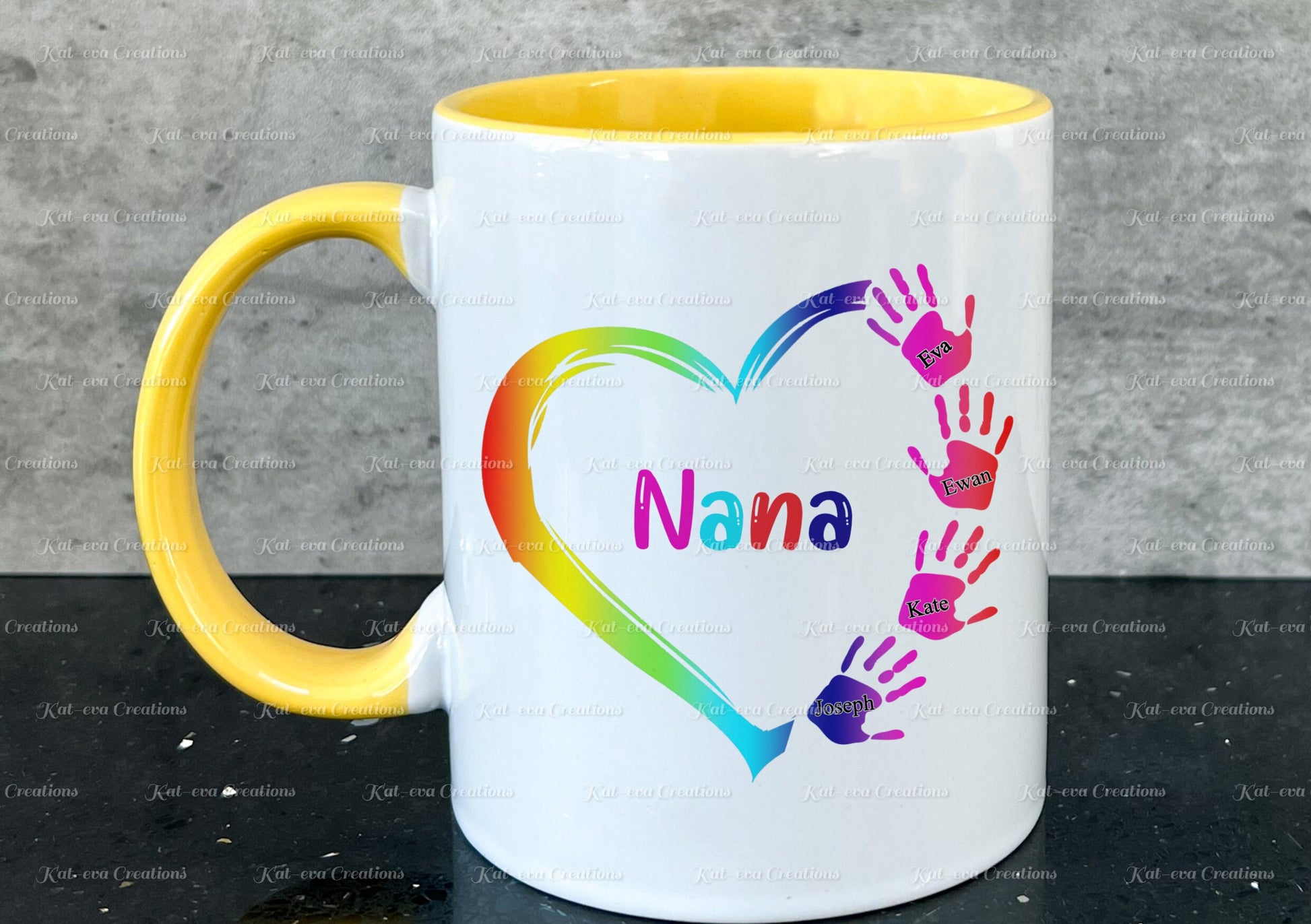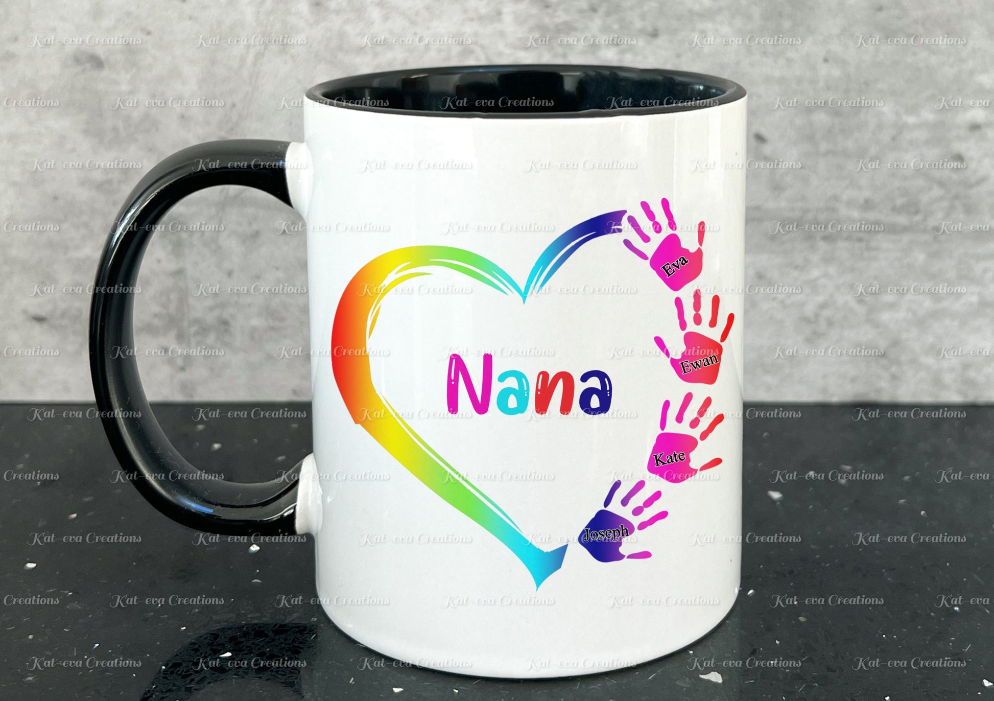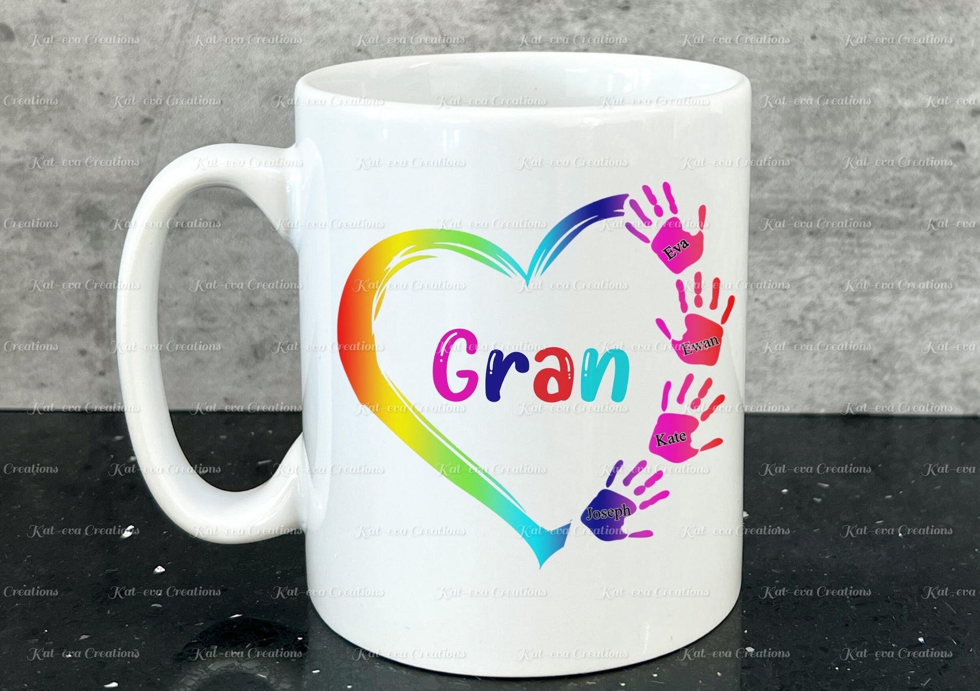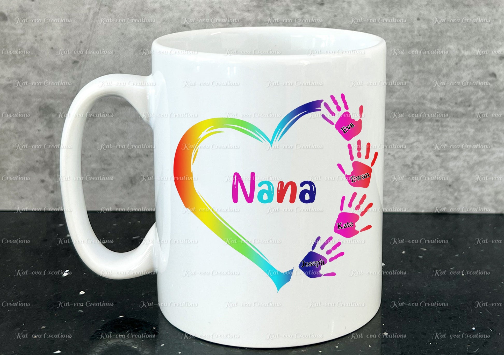 handprint heart mug, Personalised mug for Mum, gran, nana, grandma, mam. ideal christmas gift, birthday or mothers day present