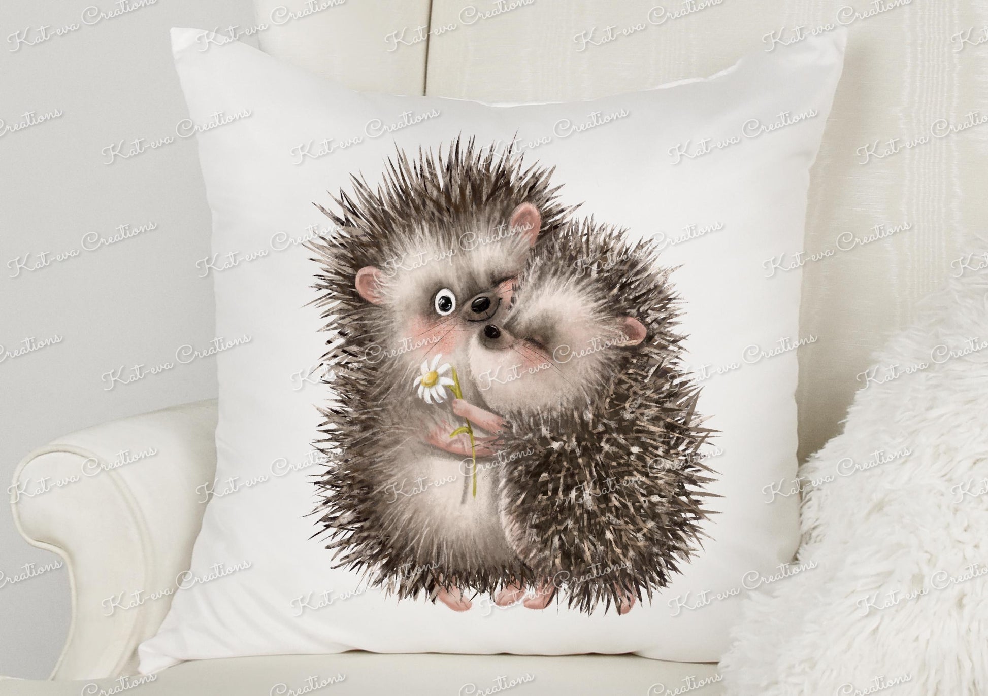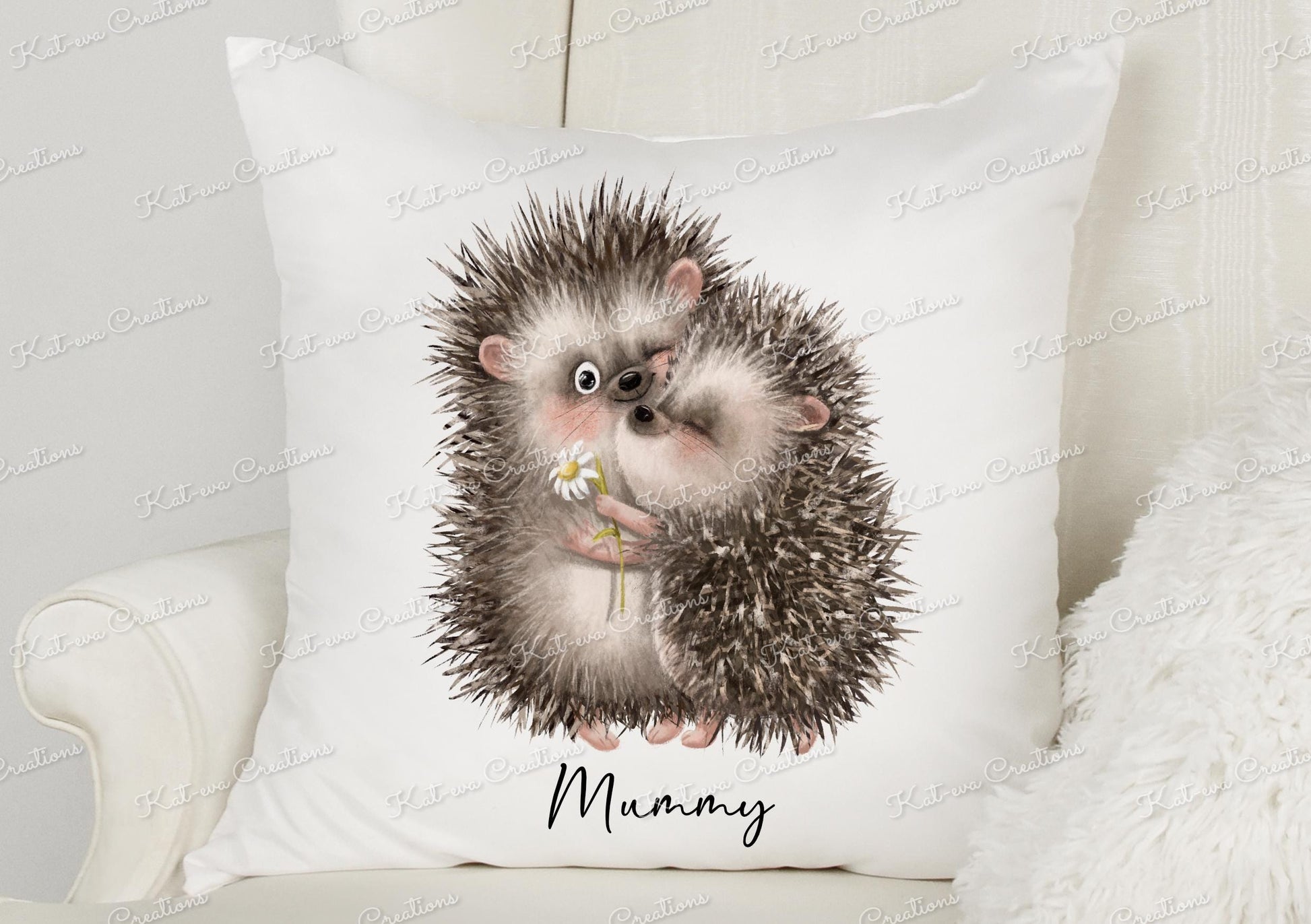 hedgehog mum and child cushion. personalised pillow. Christmas or birthday gift. secret santa present or new mum or mothers day present