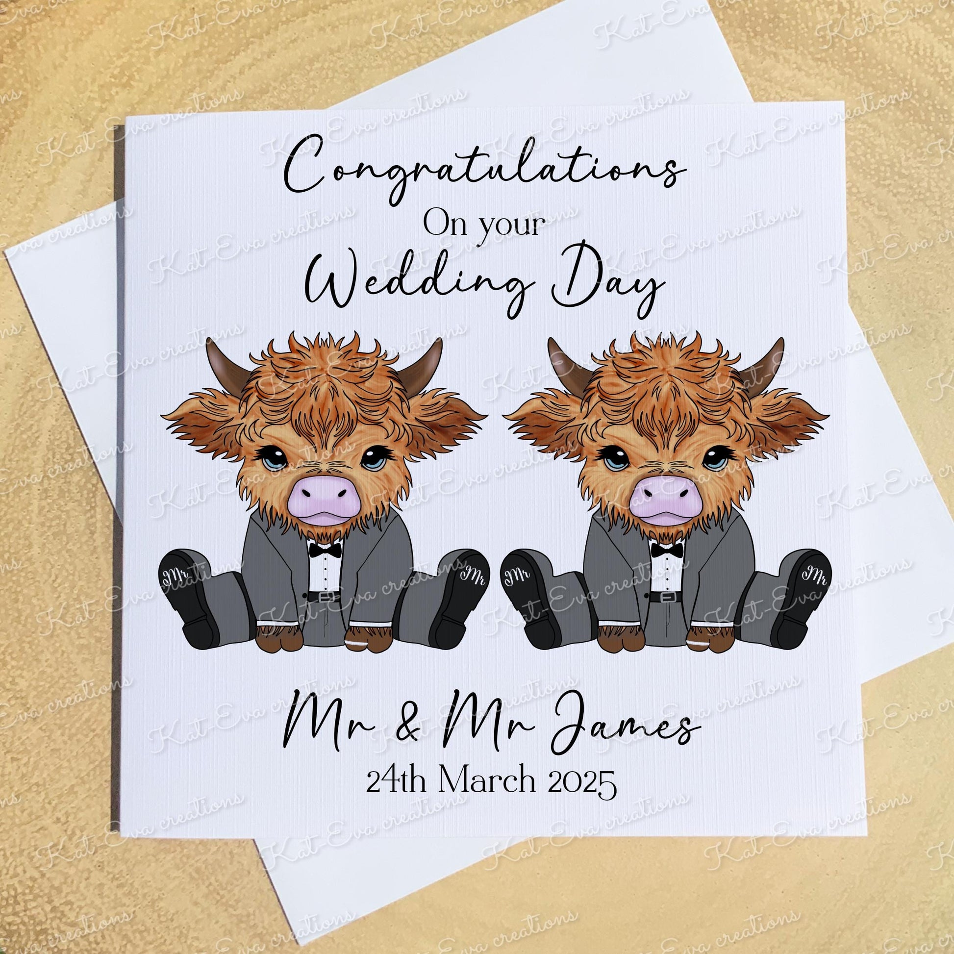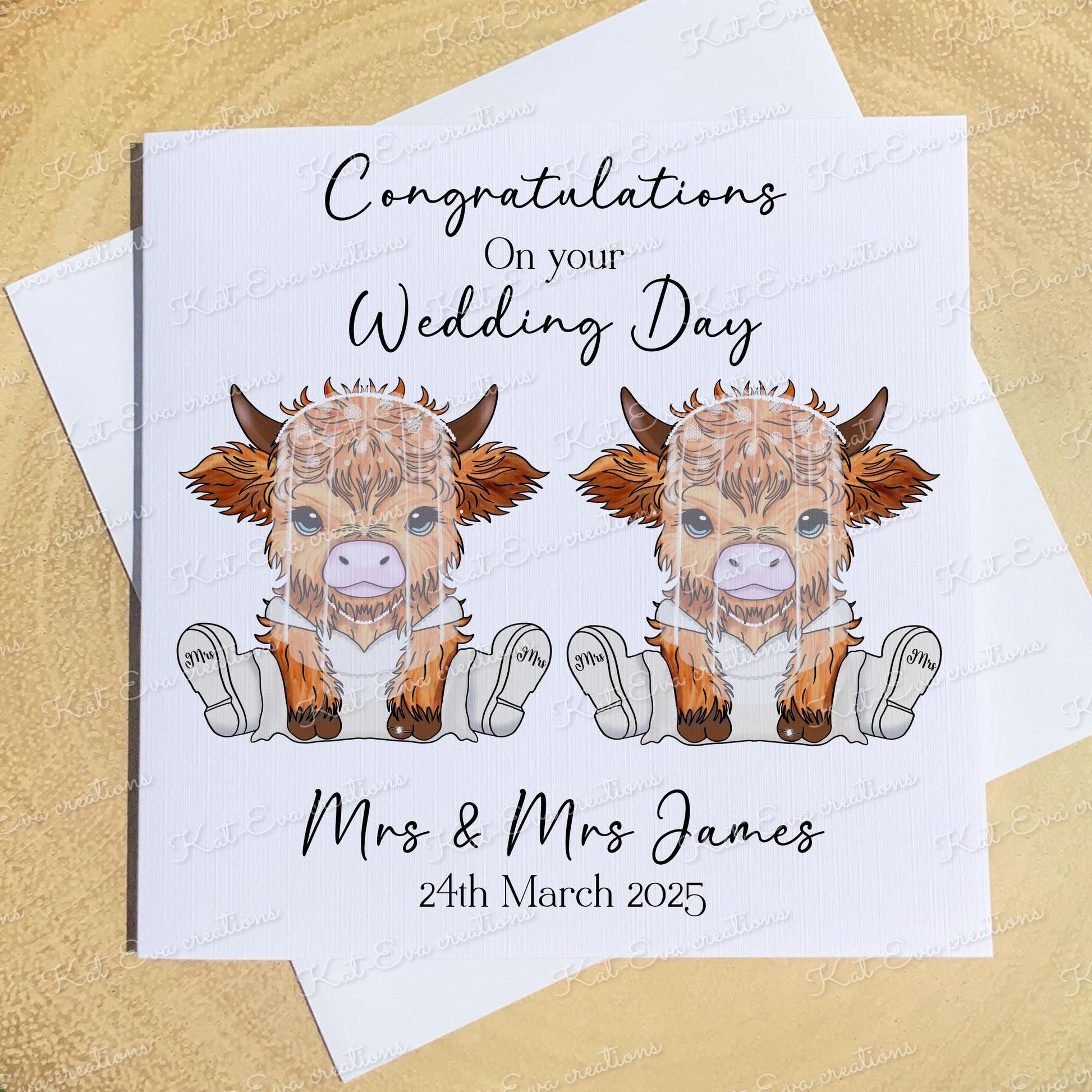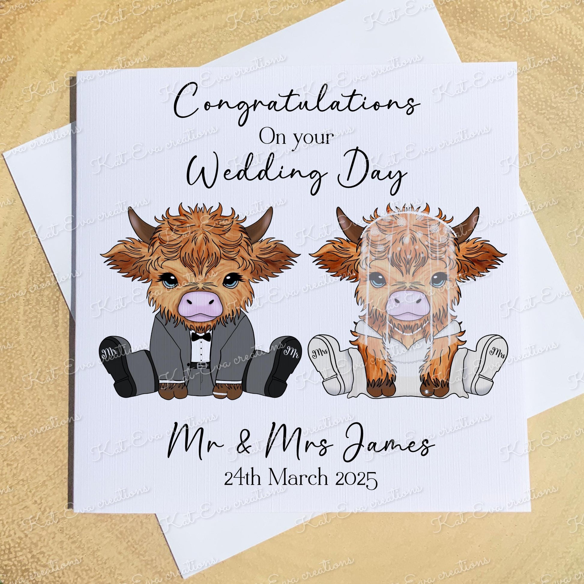 Highland cow Wedding card. Personalised card. Engagement, wedding or anniversary card. Highland cow congratulations