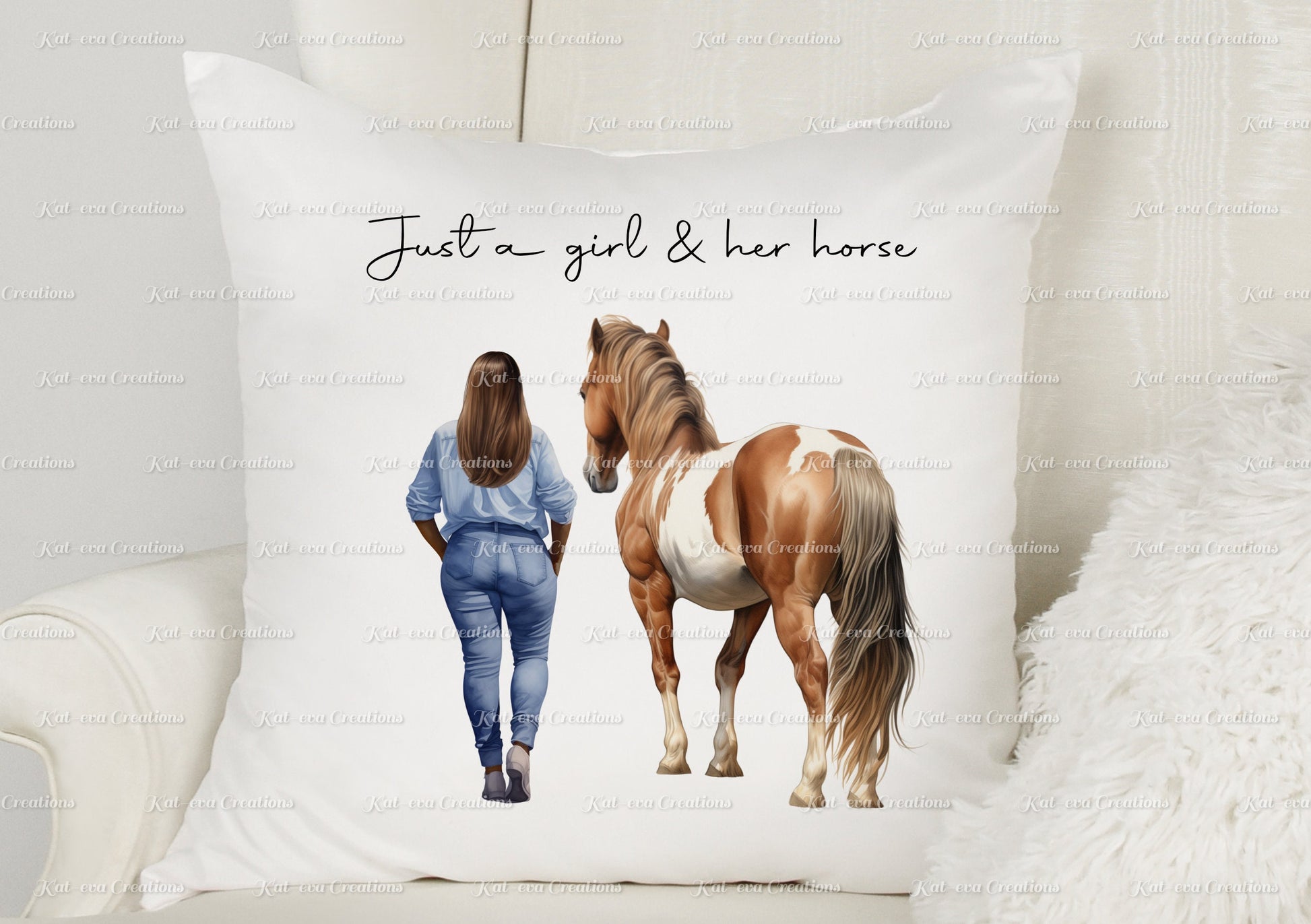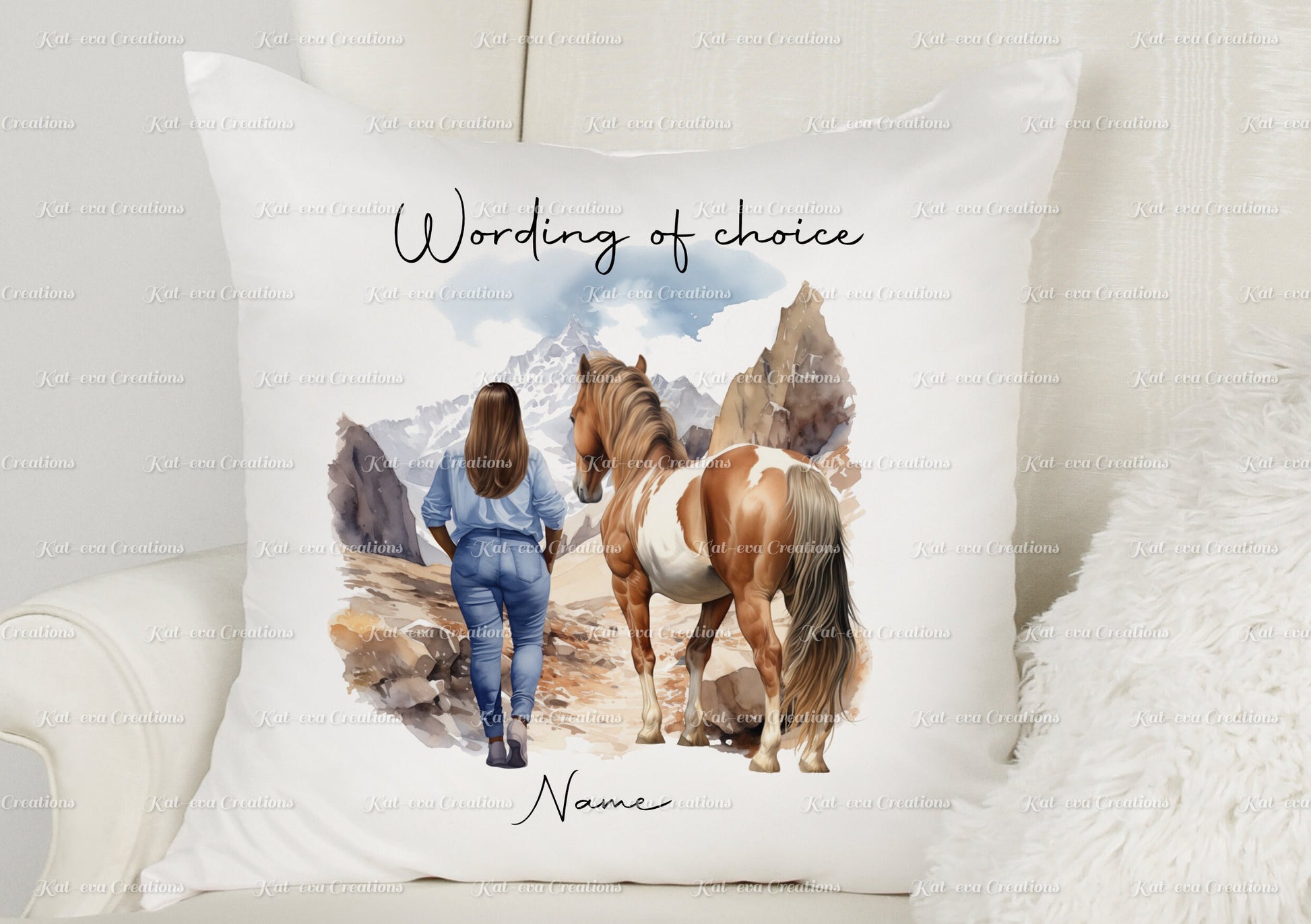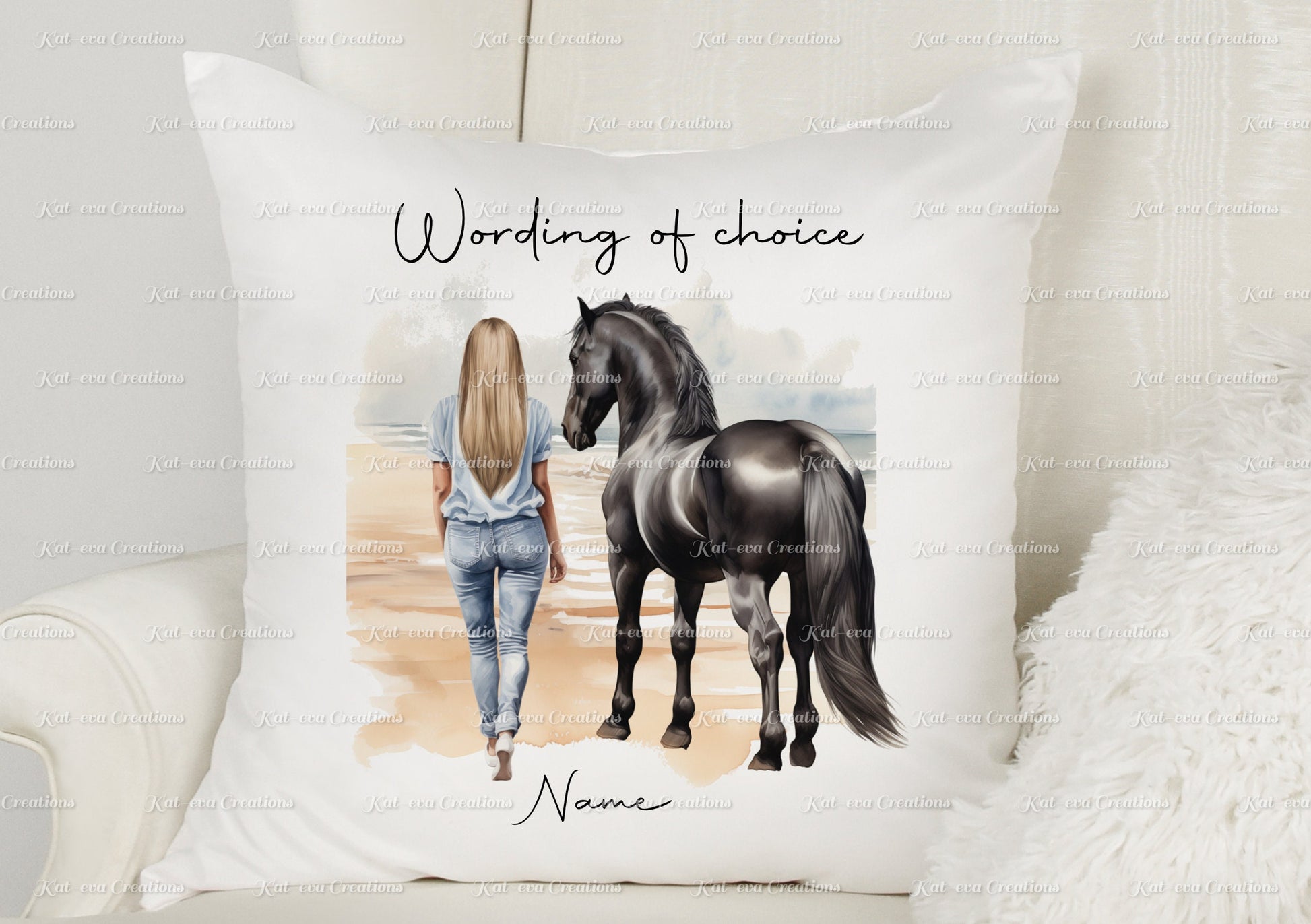 Horse cushion. personalised horse pillow. Lots of different girls and horses available