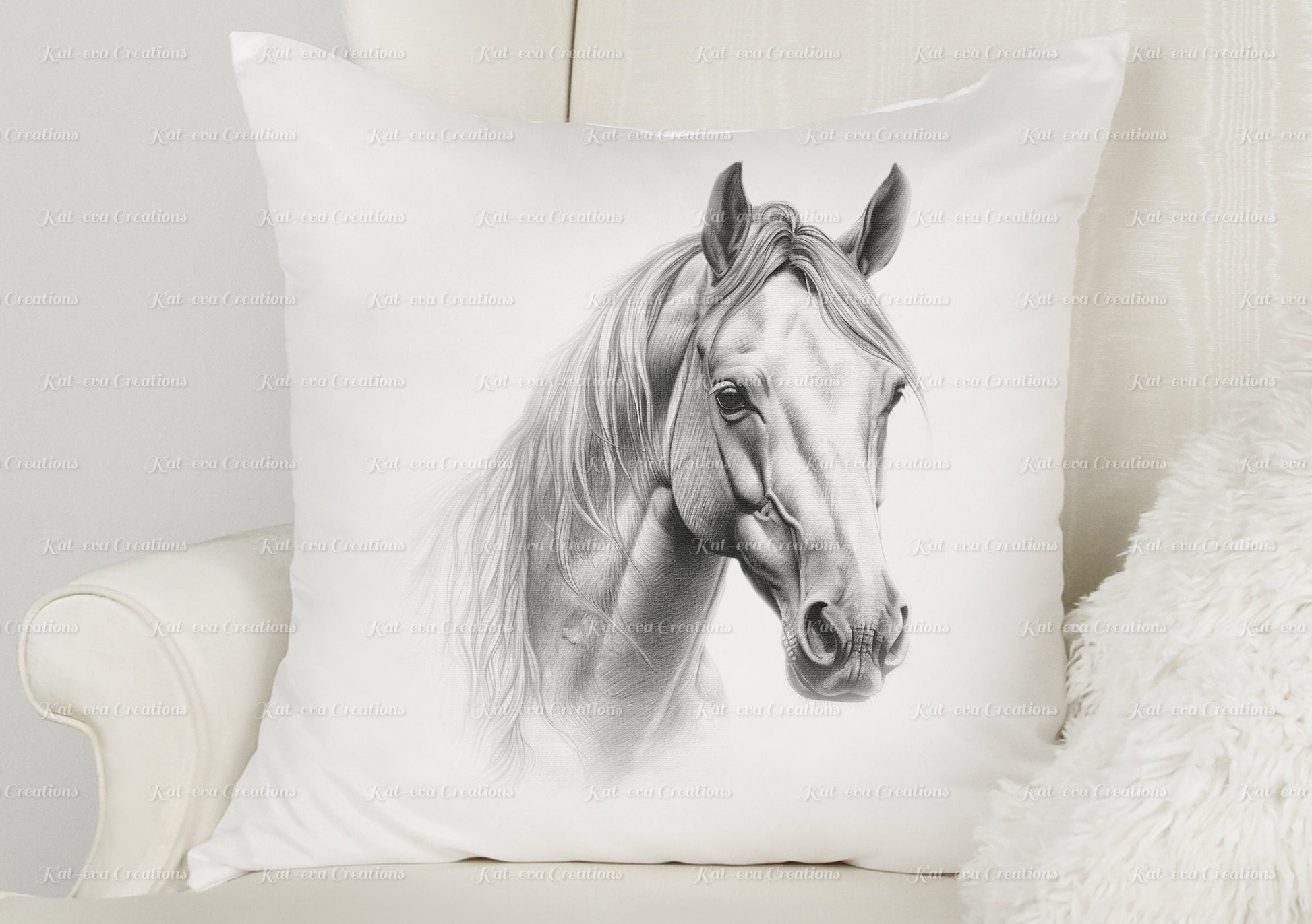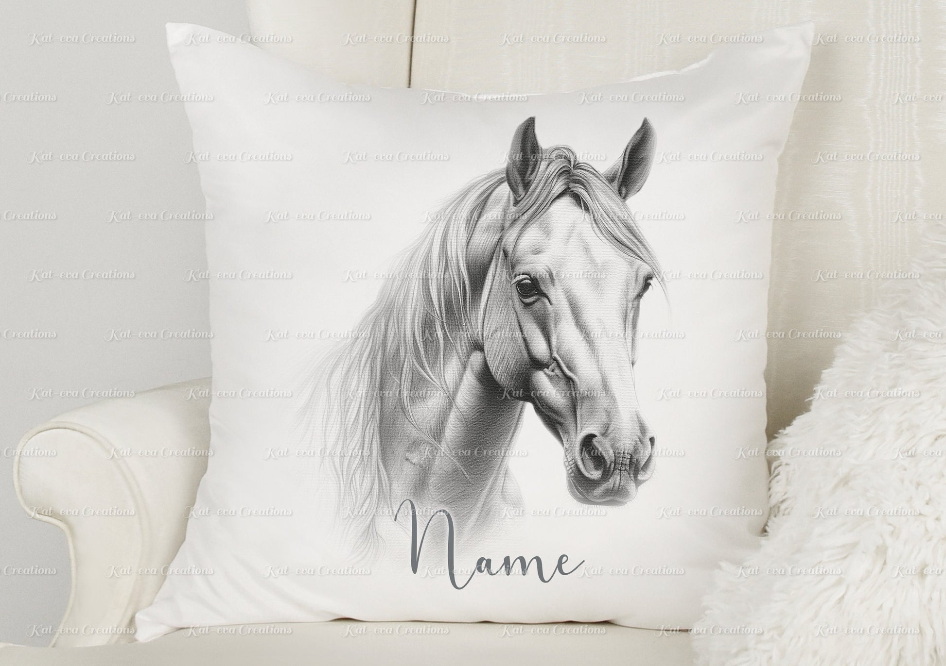 horse cushion. personalised sketch horse pillow. ideal christmas, secret santa, stocking filler, or birthday gift