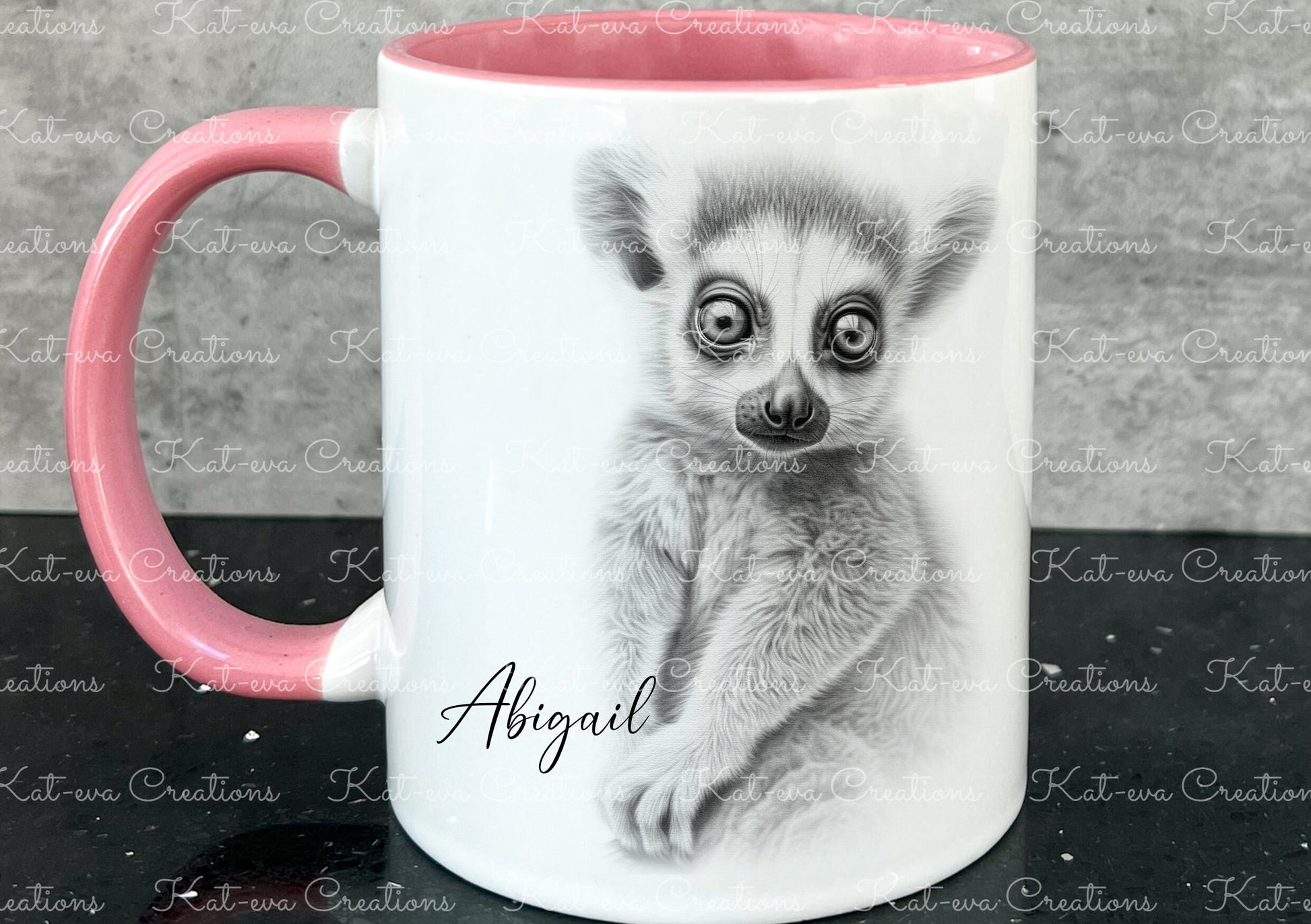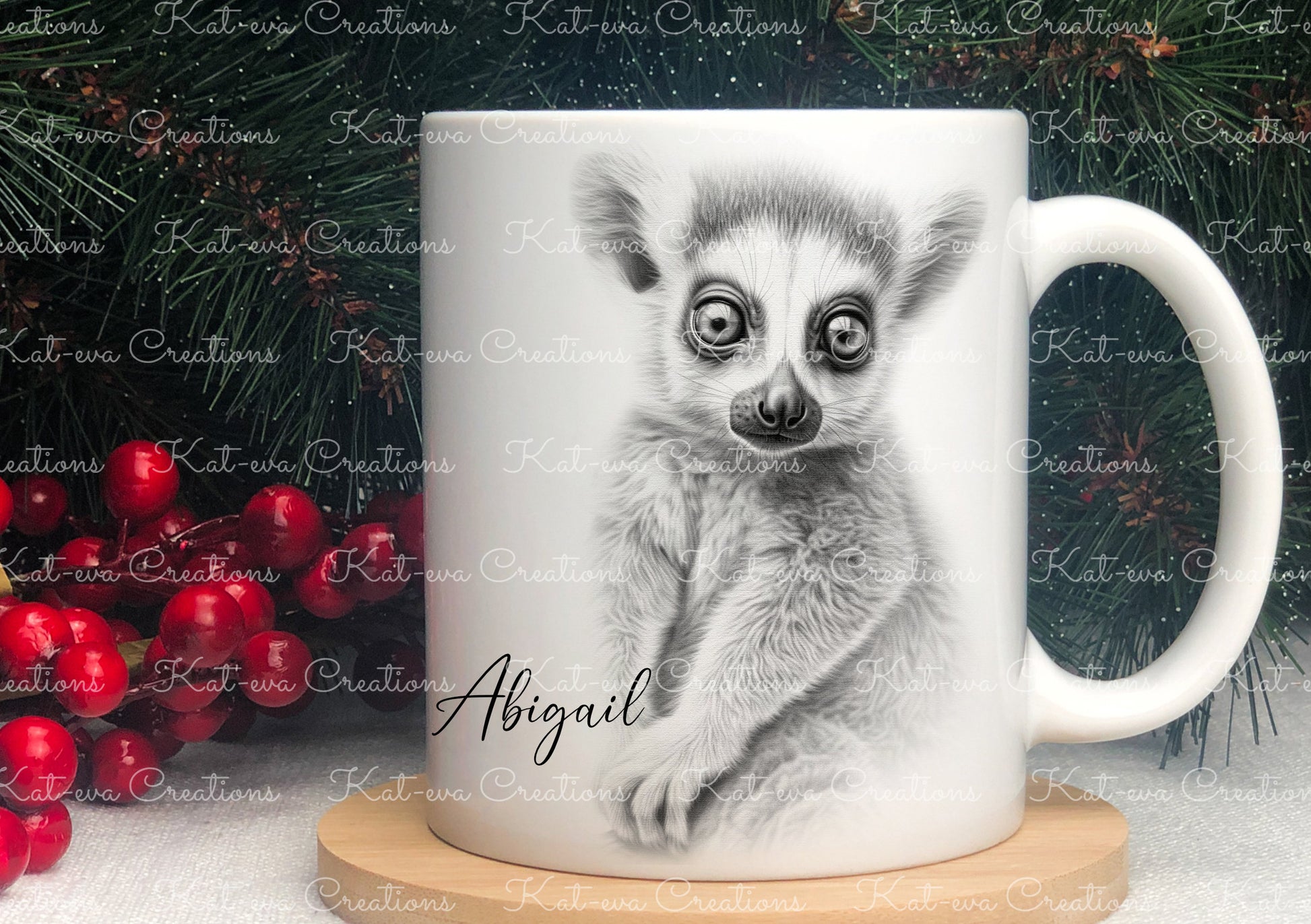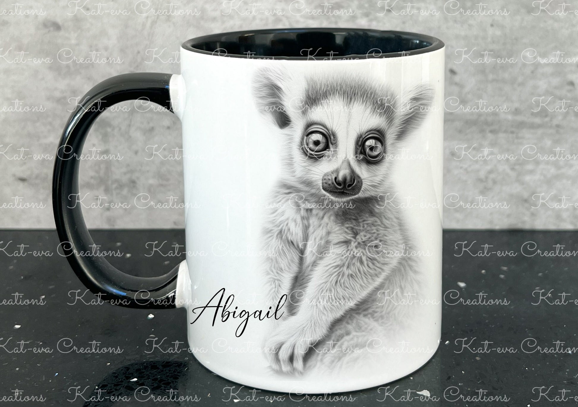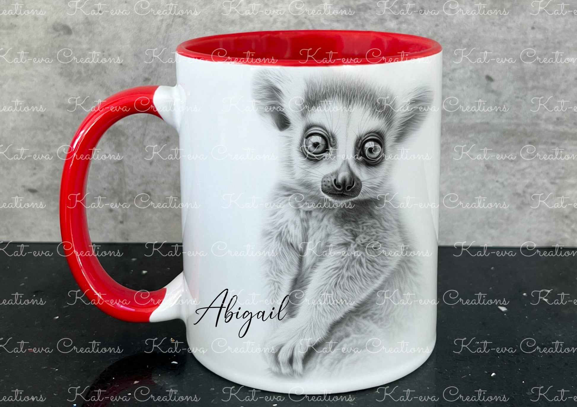 lemur mug. Personalised lemur cup. Ideal gift for Christmas. Birthday, secret santa or stocking filler