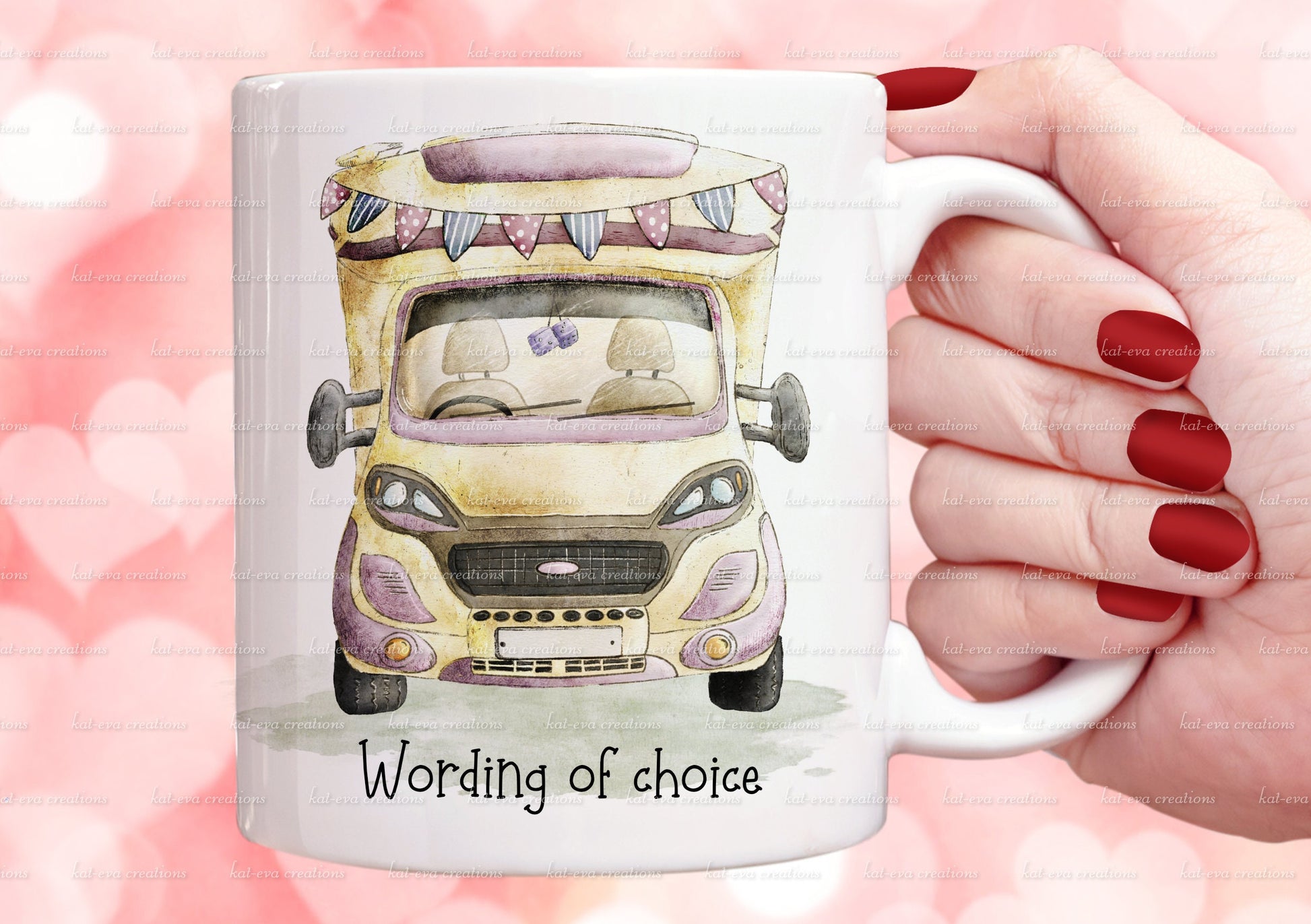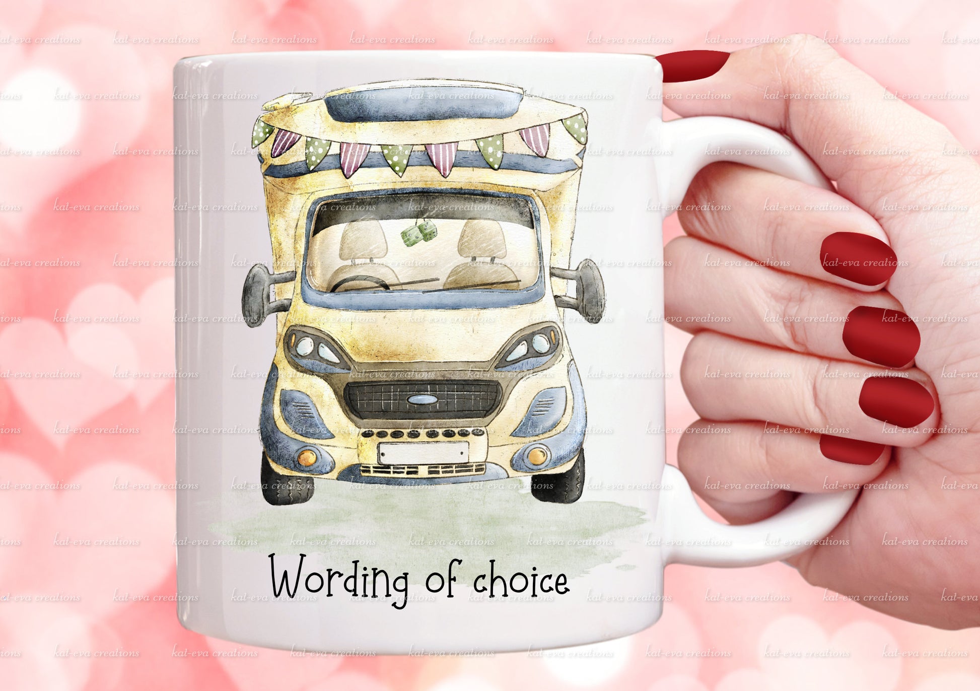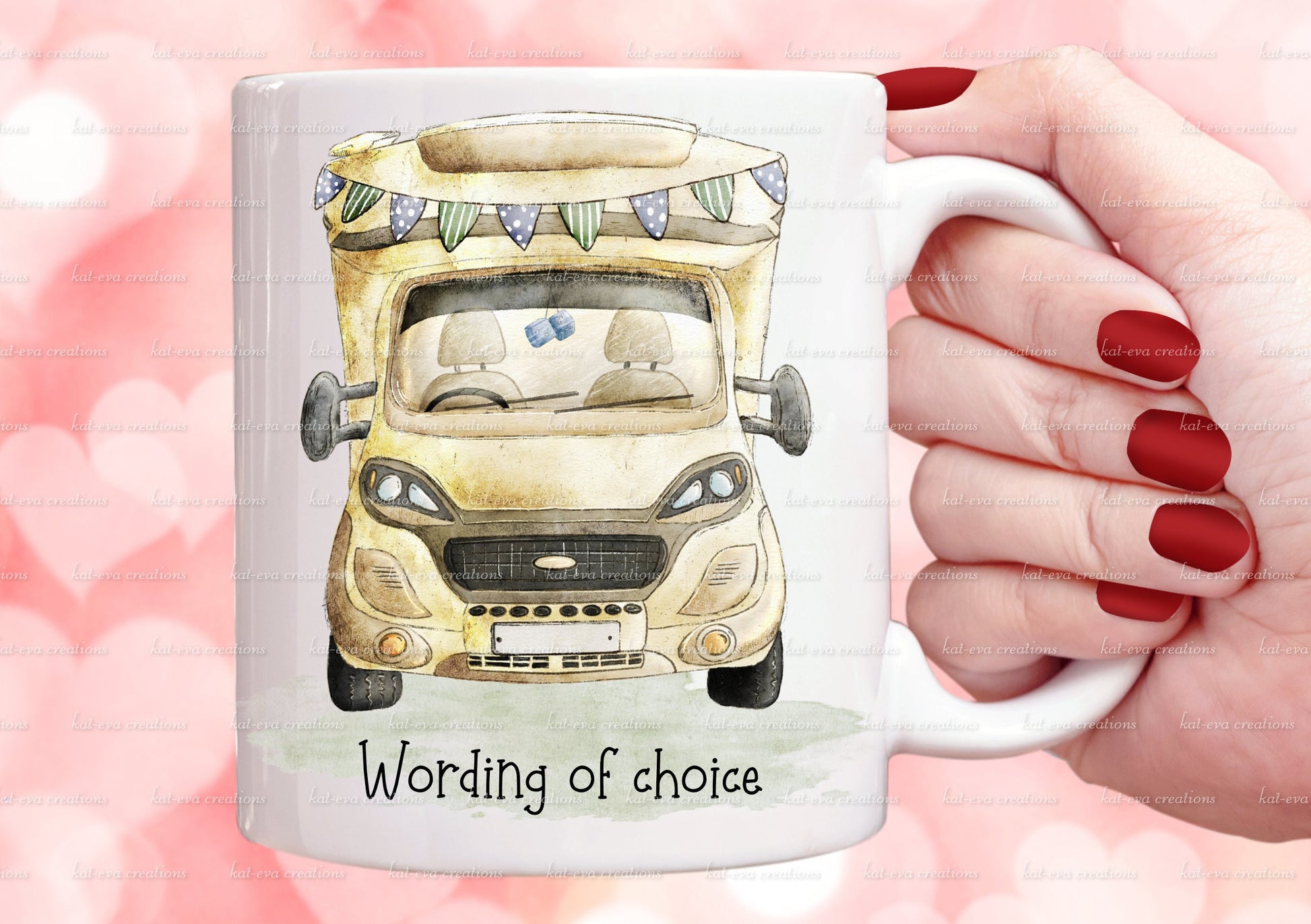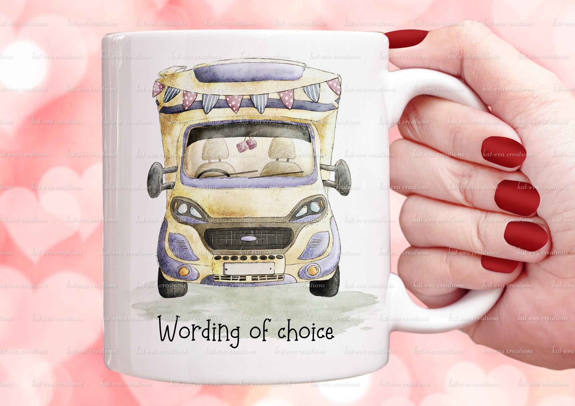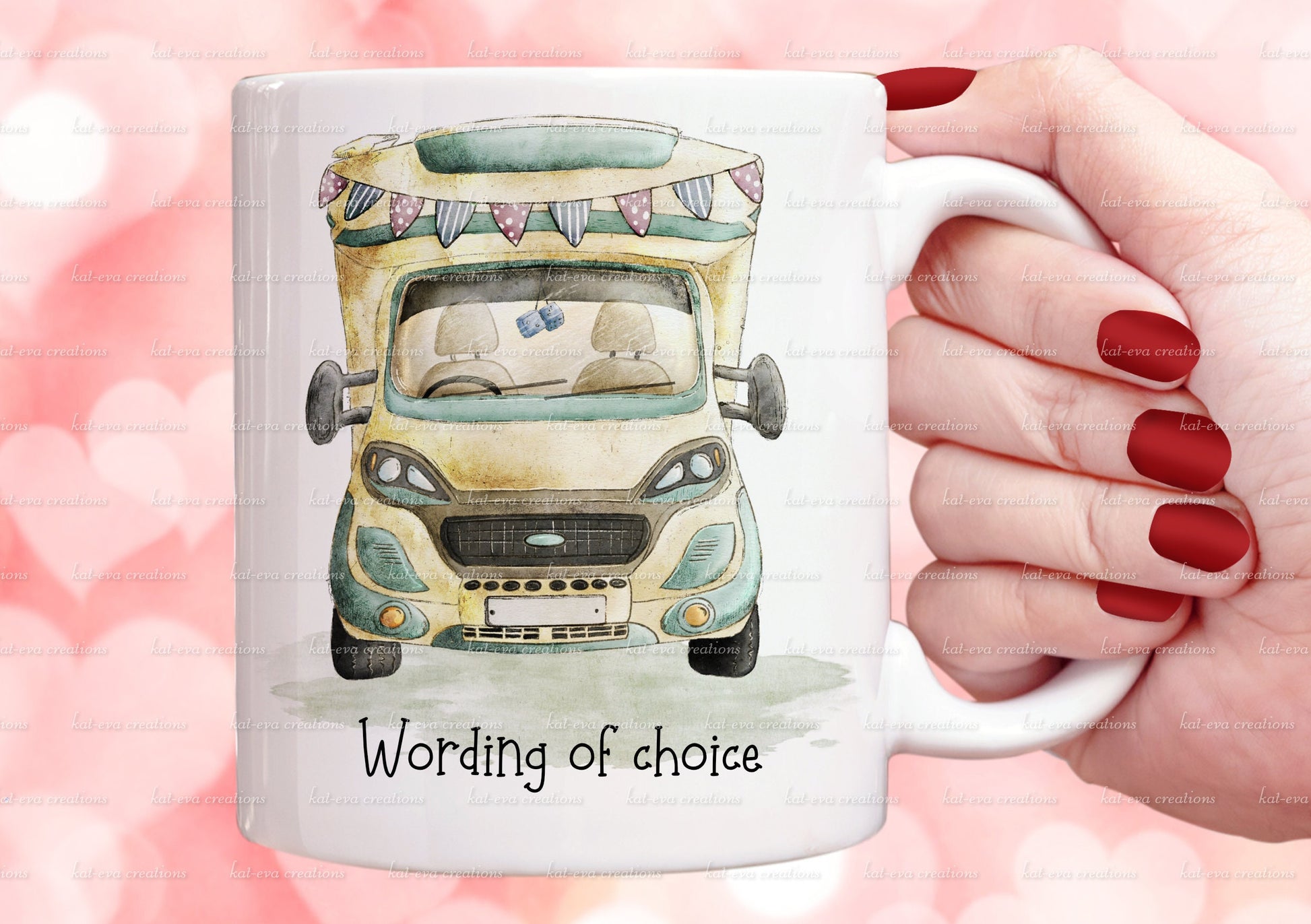 motorhome mug. personalised vintage motorhome cup. Campervan mug. choice of colours