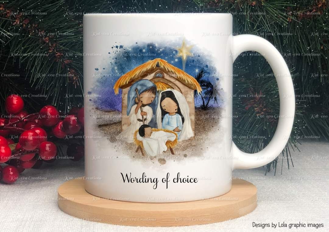 Nativity mug, personalised Christmas Nativity cup. Ideal Christmas, Secret Santa or stocking filler gift