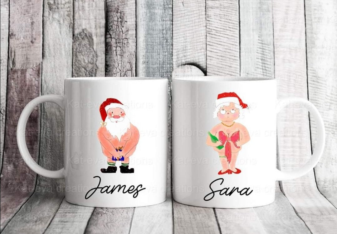 Naughty santa or mrs claus personalised mug. Ideal secret santa or joke present