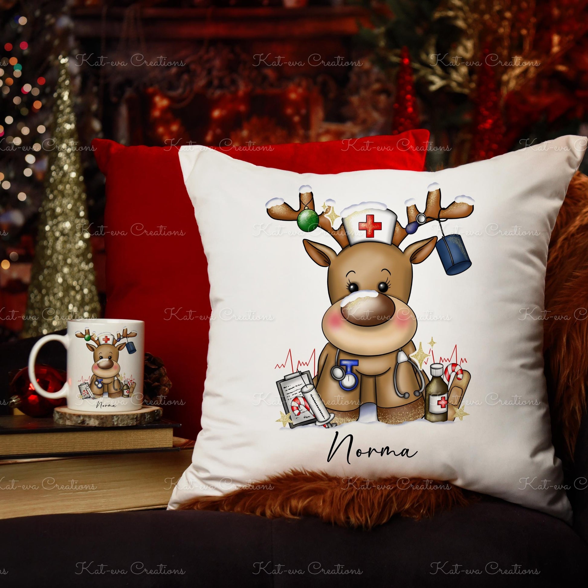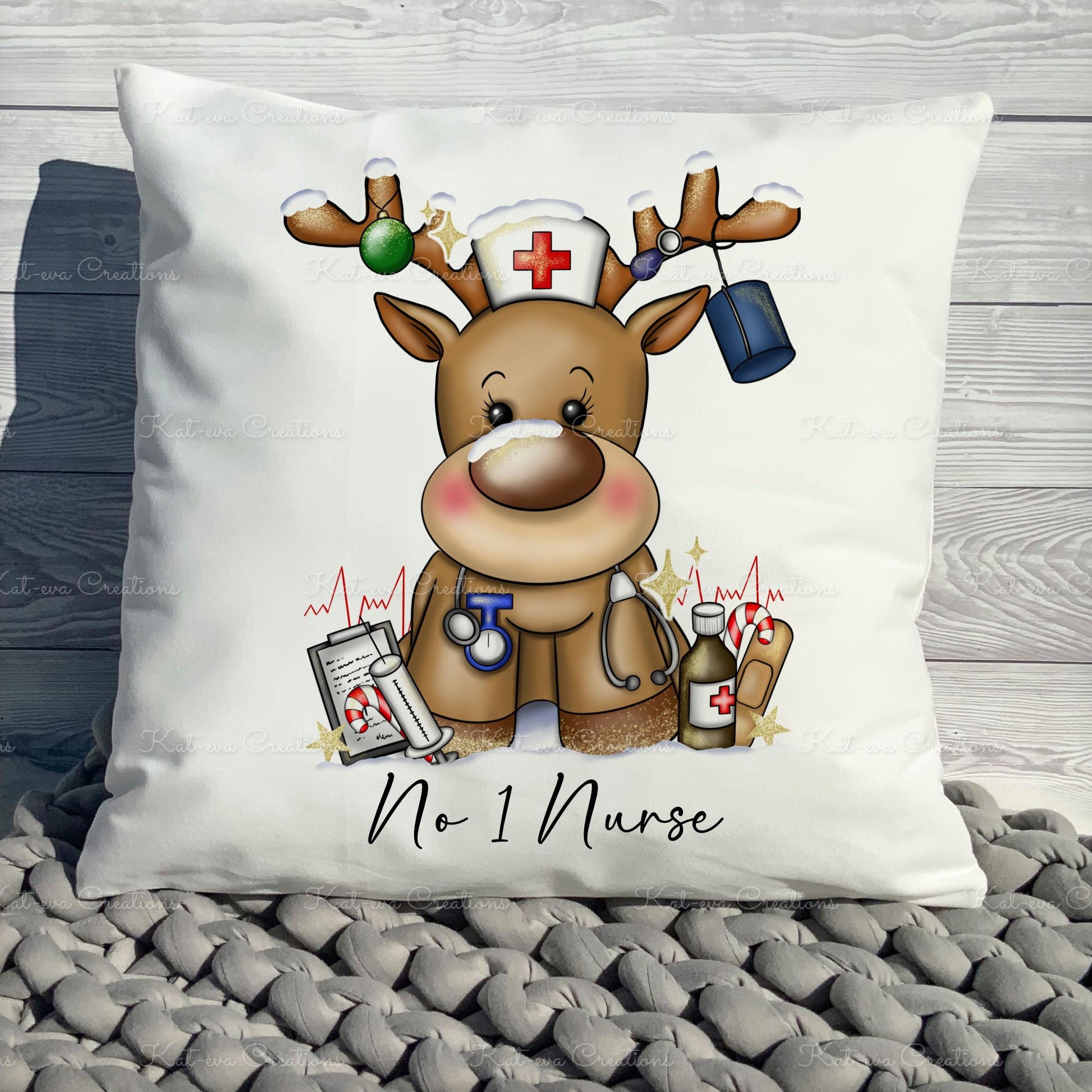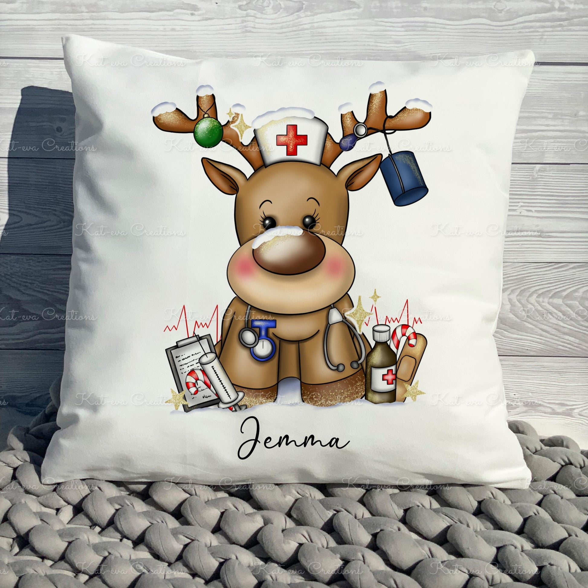 Nurse reindeer cushion. personalised nurse cushion. ideal christmas or secret santa gift or as a thank you present