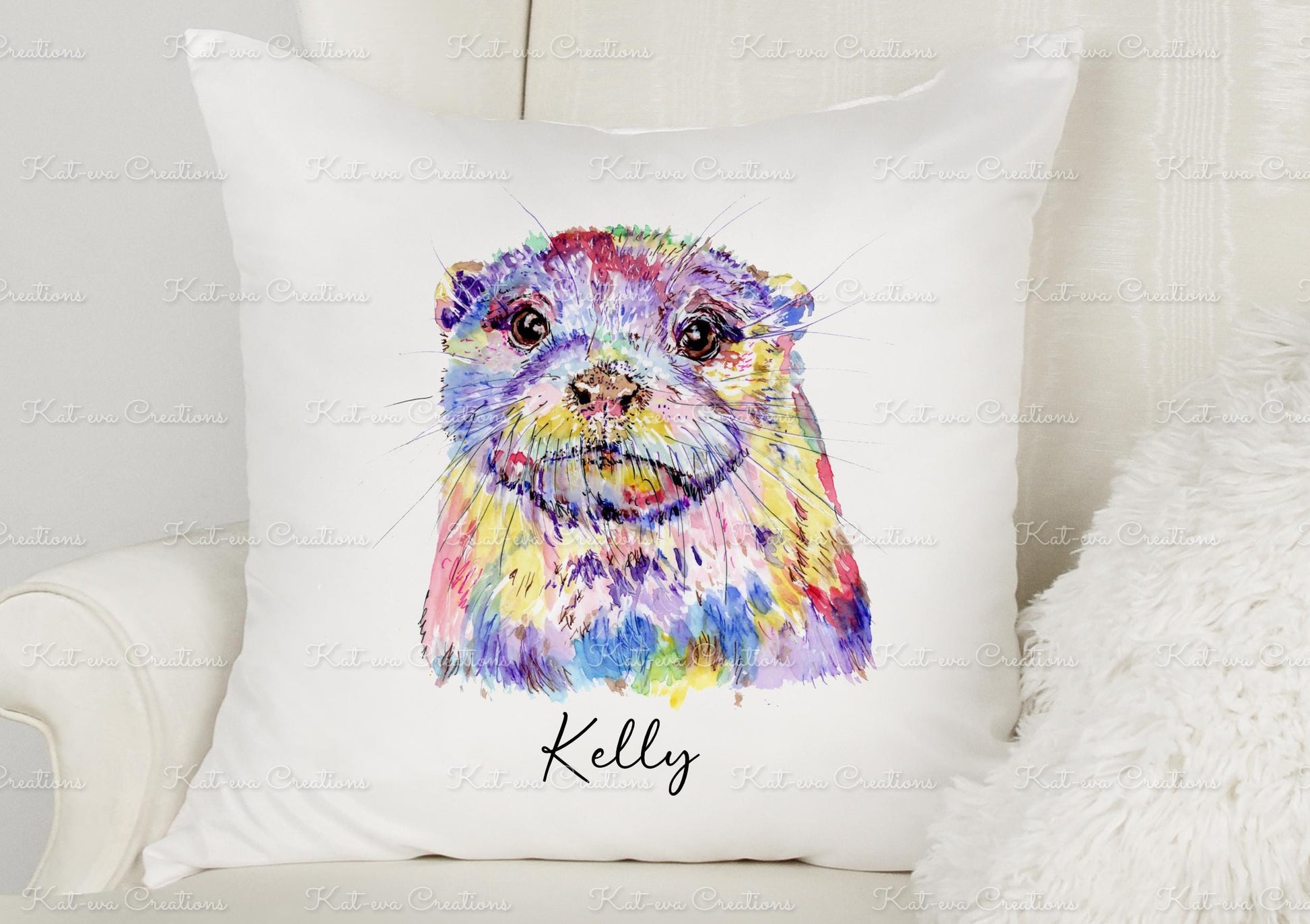 Otter cushion. can be personalised. ideal easter or birthday gift. Mothers day or fathers day present. Valentines day