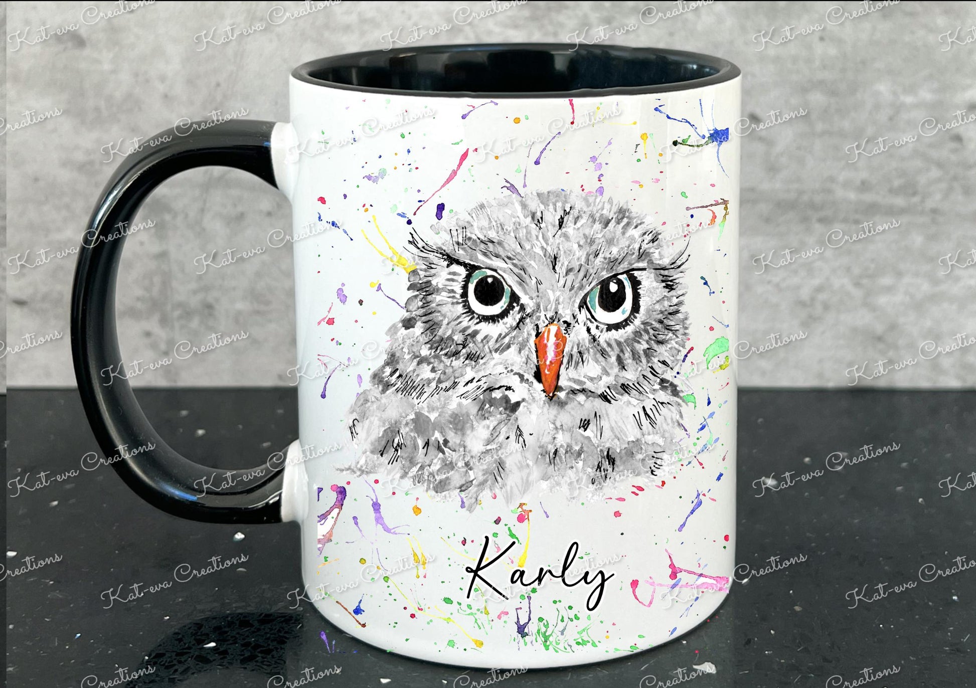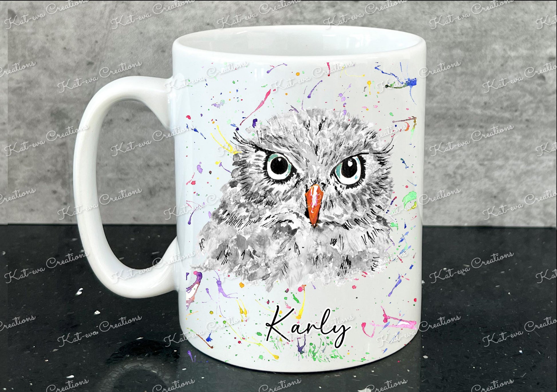 owl mug. personalised owl cup. Ideal for birthday or christmas gift. Secret santa present or stocking filler