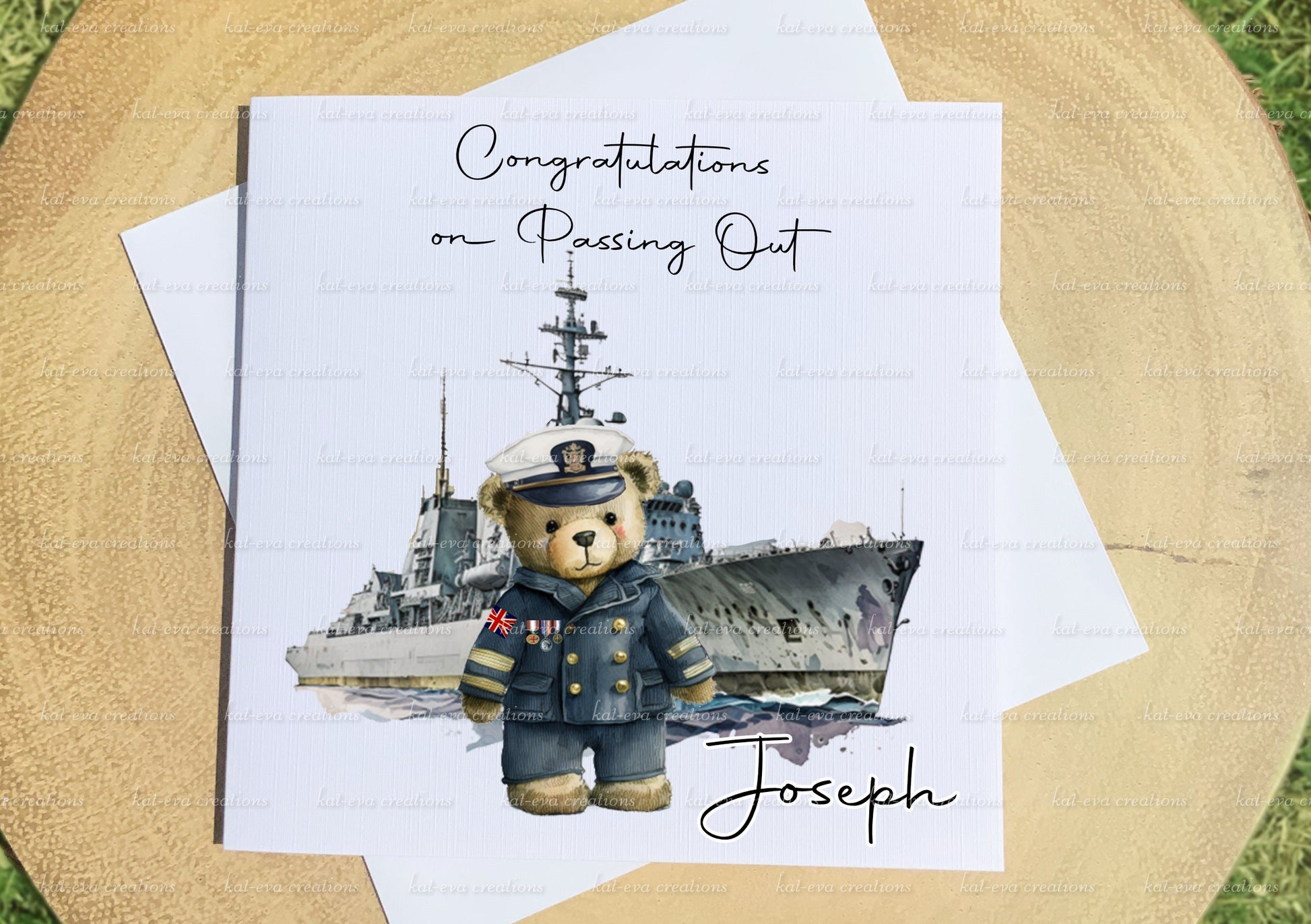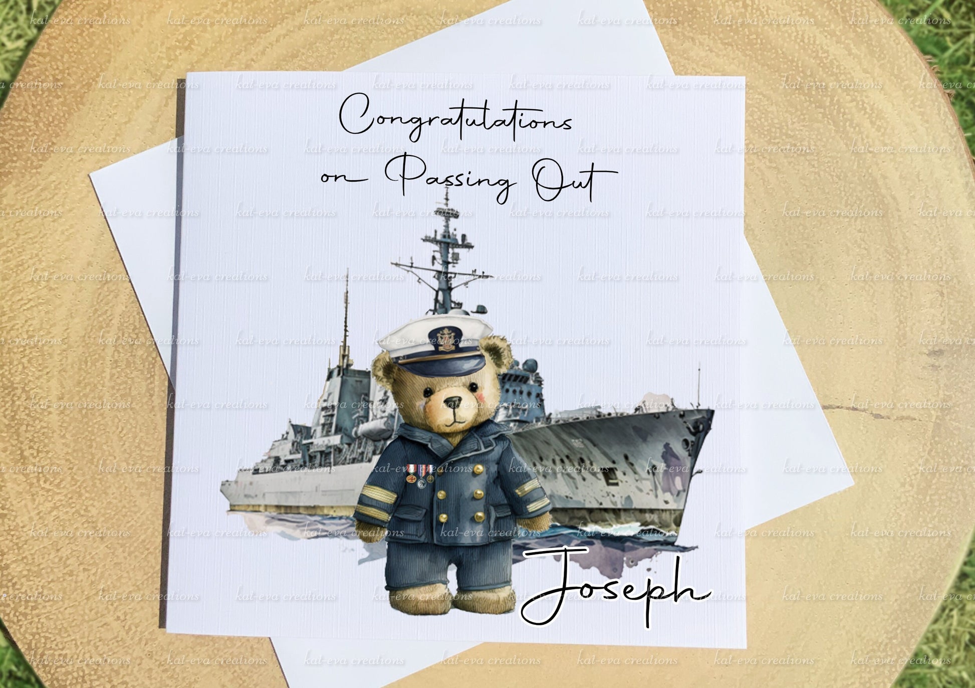 Passing out card, Personalised navy card. Congratulations Royal navy passing out parade card