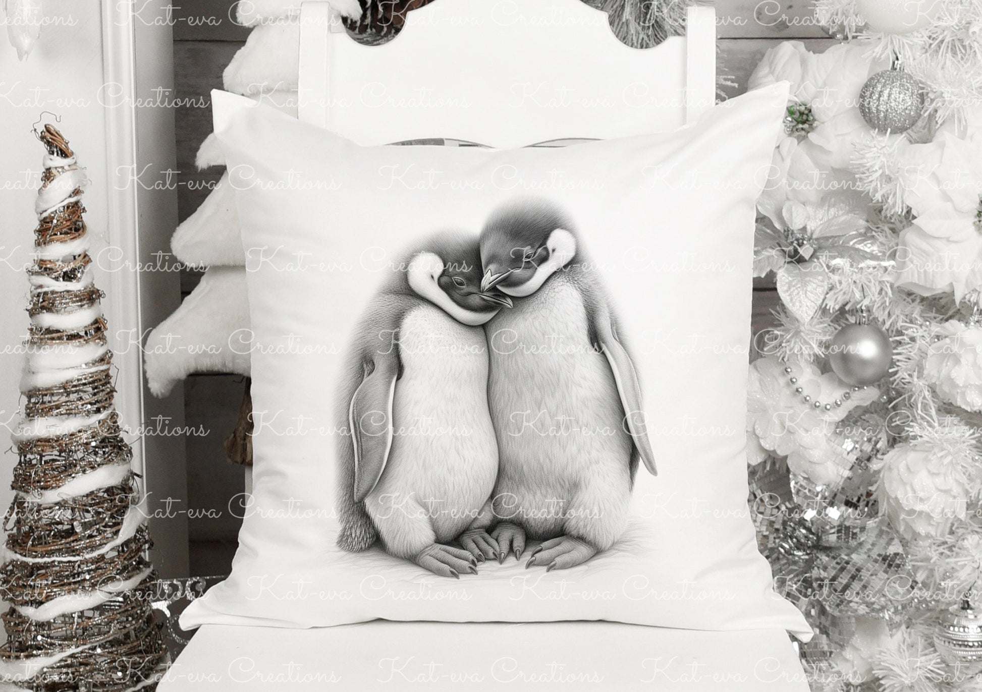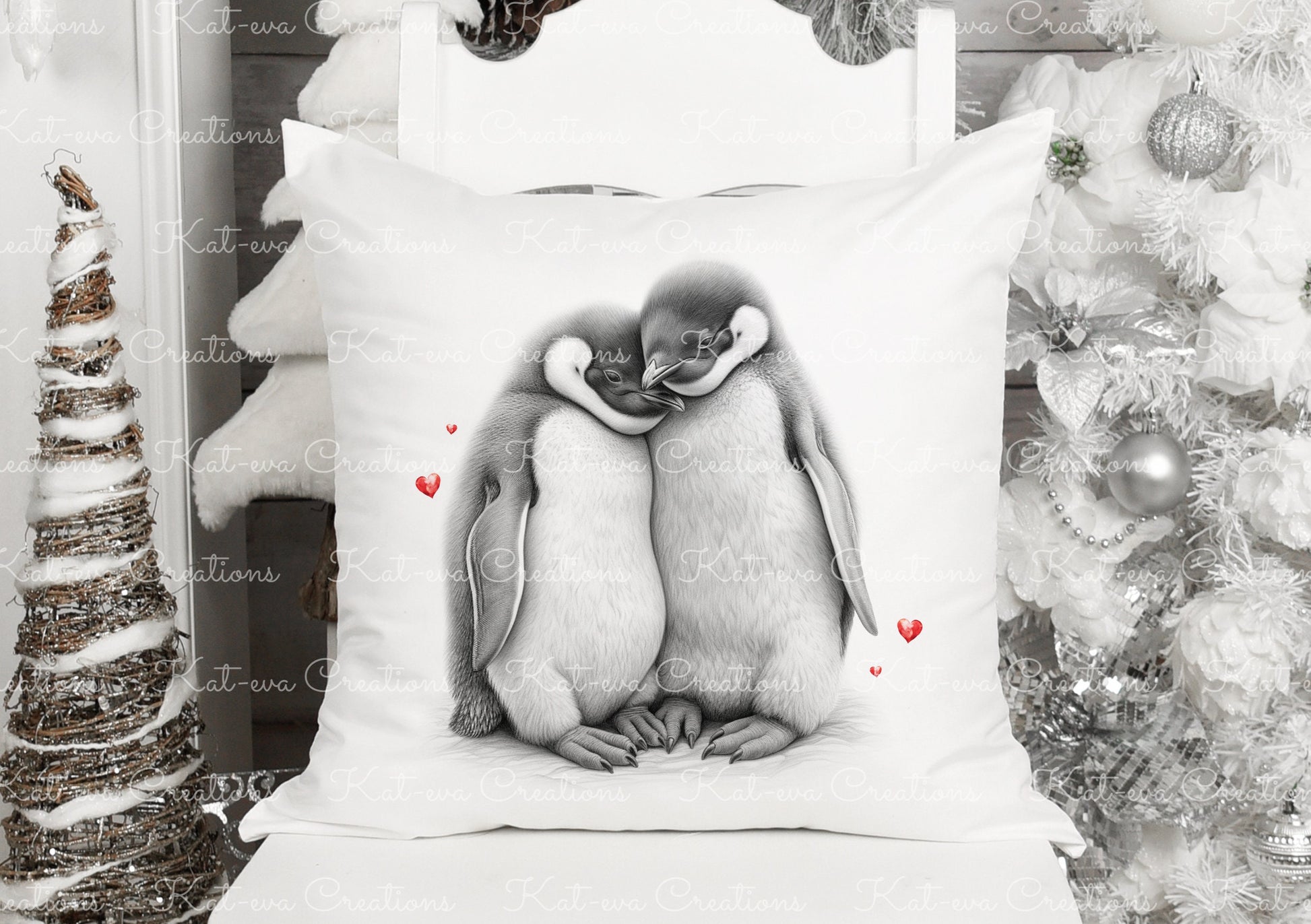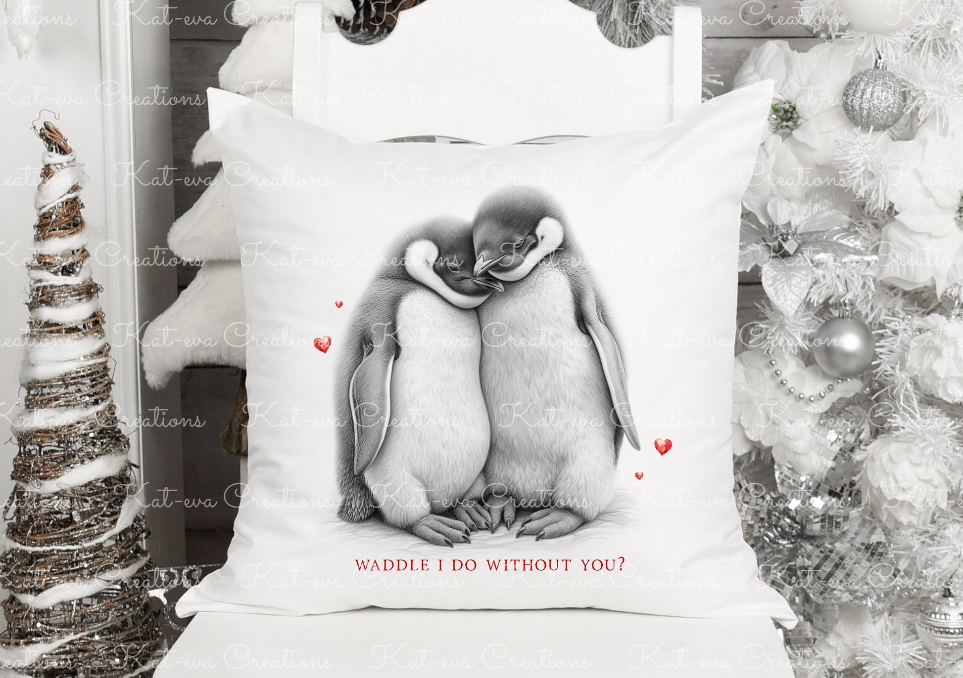 Penguin cushion. personalised penguin couple pillow. ideal christmas, secret santa, stocking filler, birthday or wedding gift