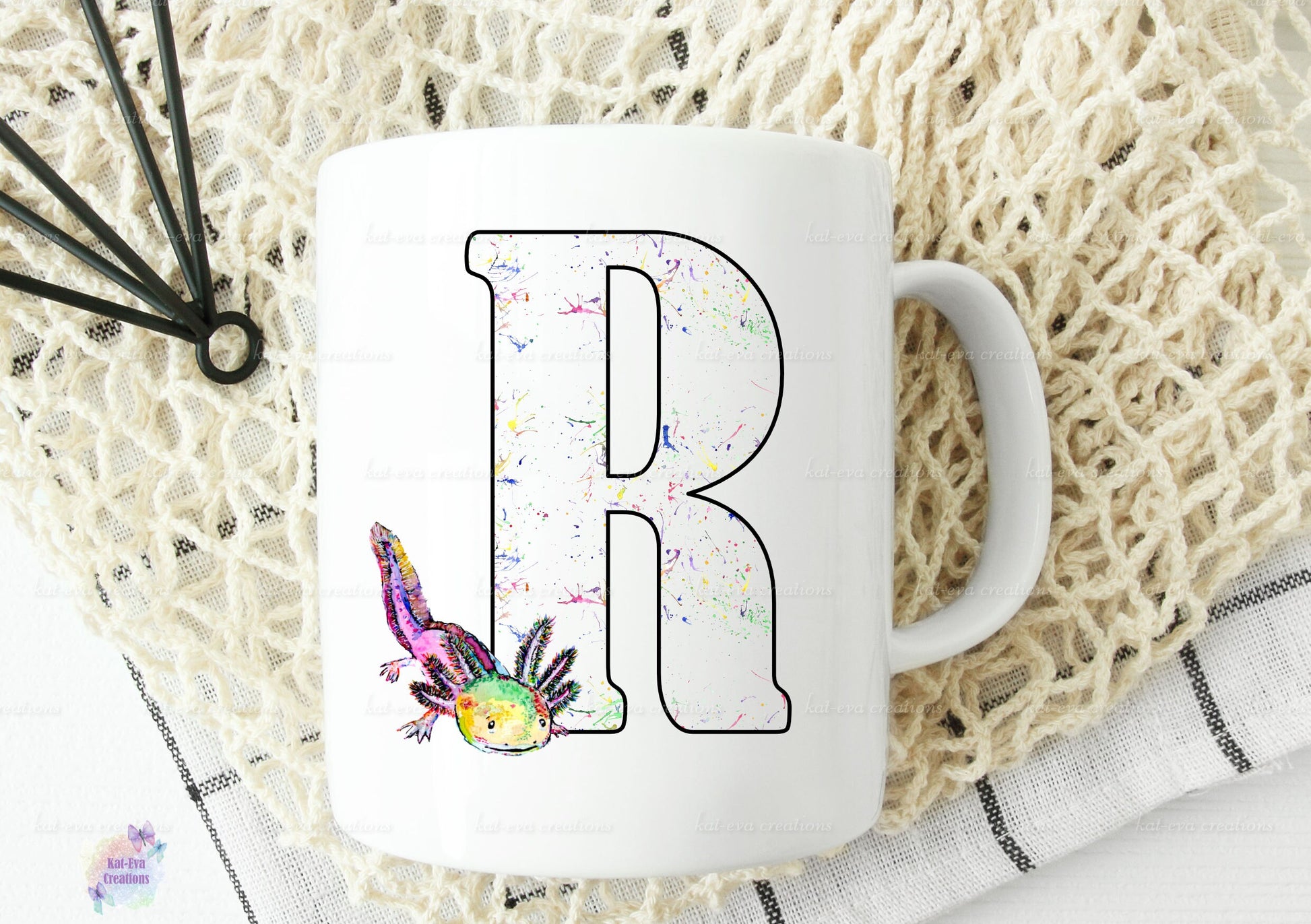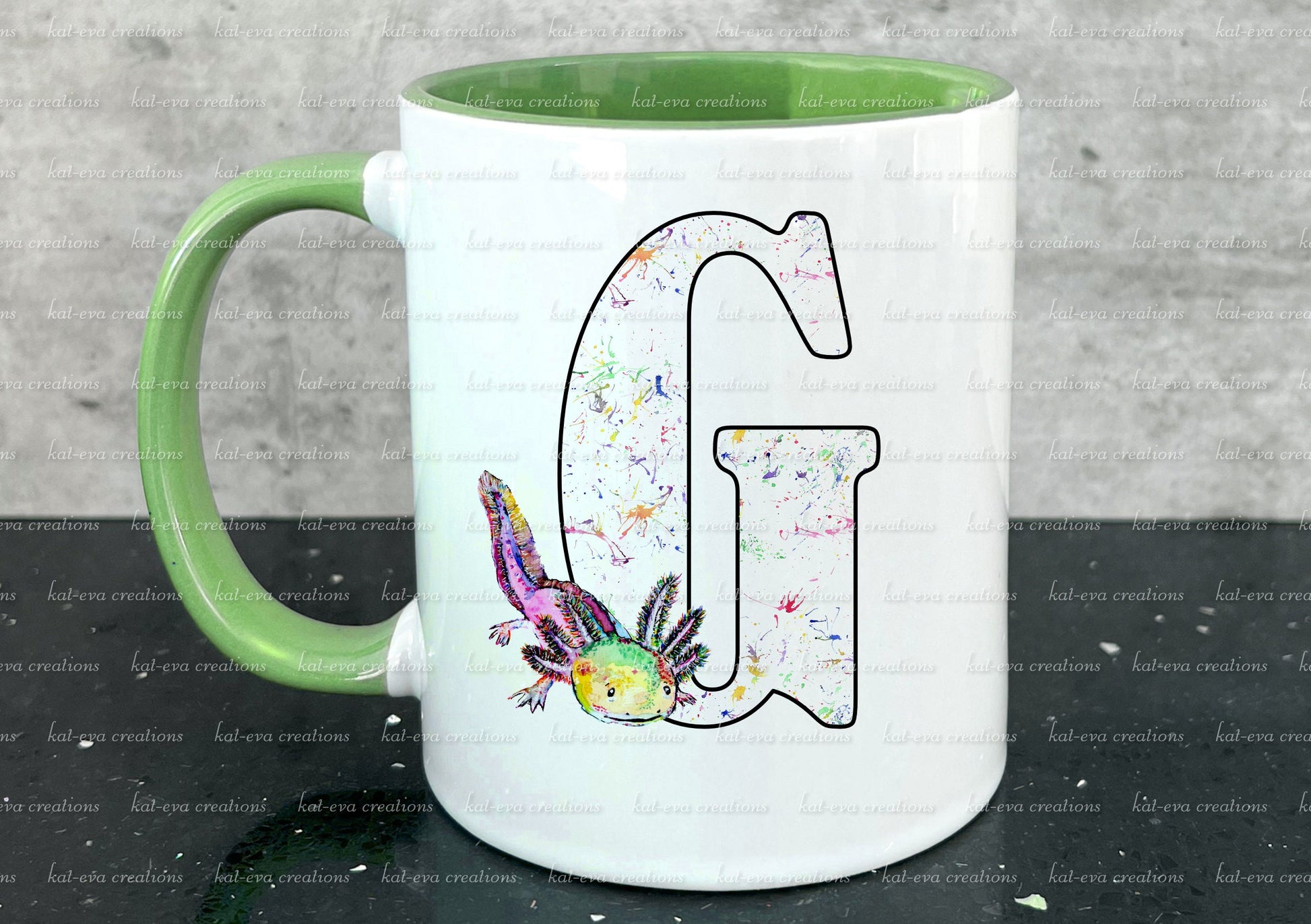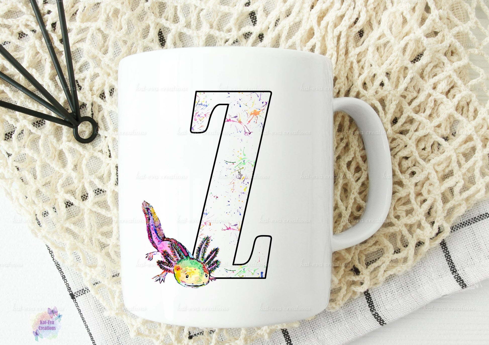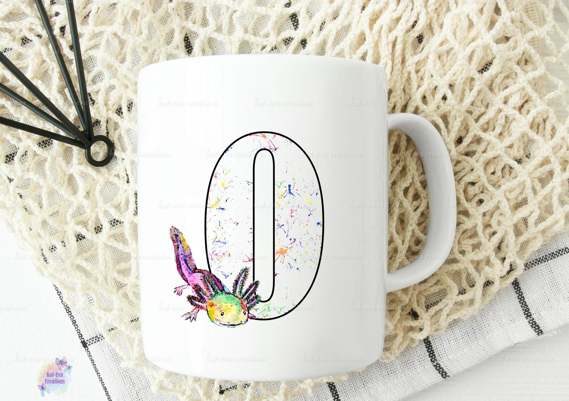 watercolour axolotl initial mug,