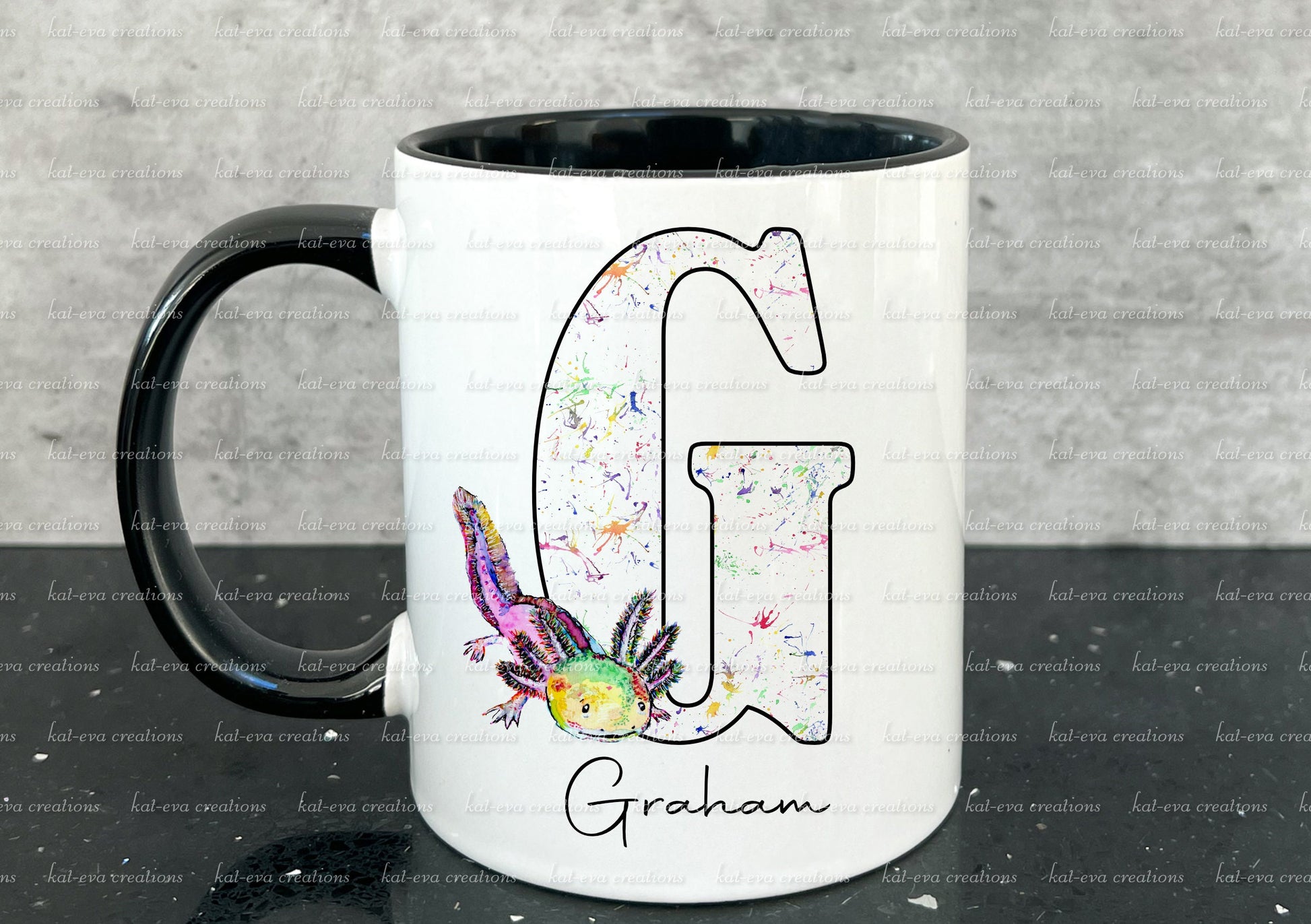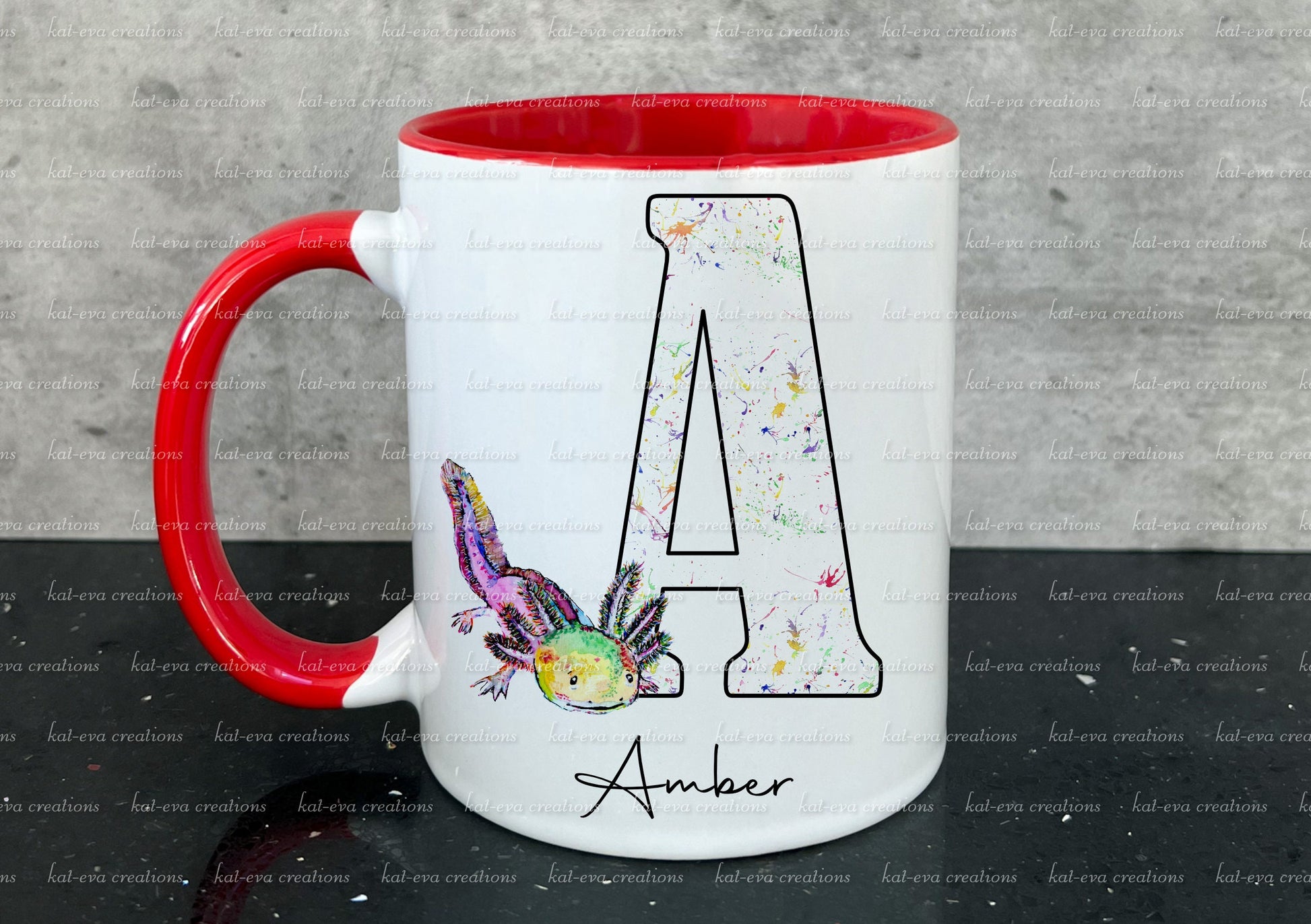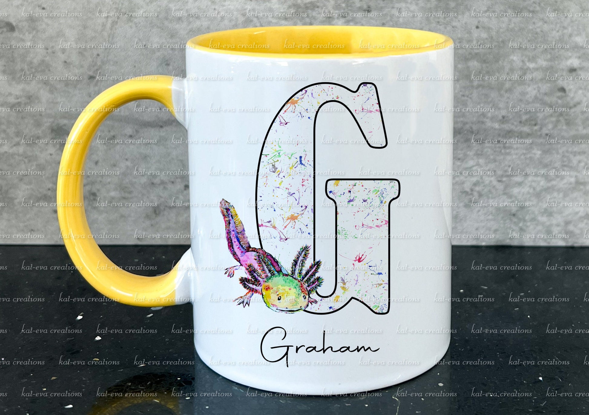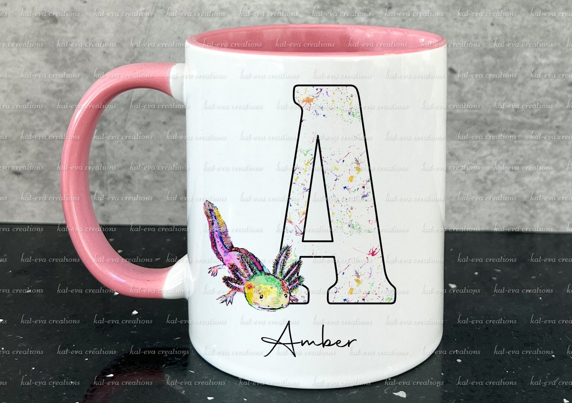 watercolour axolotl initial mug,